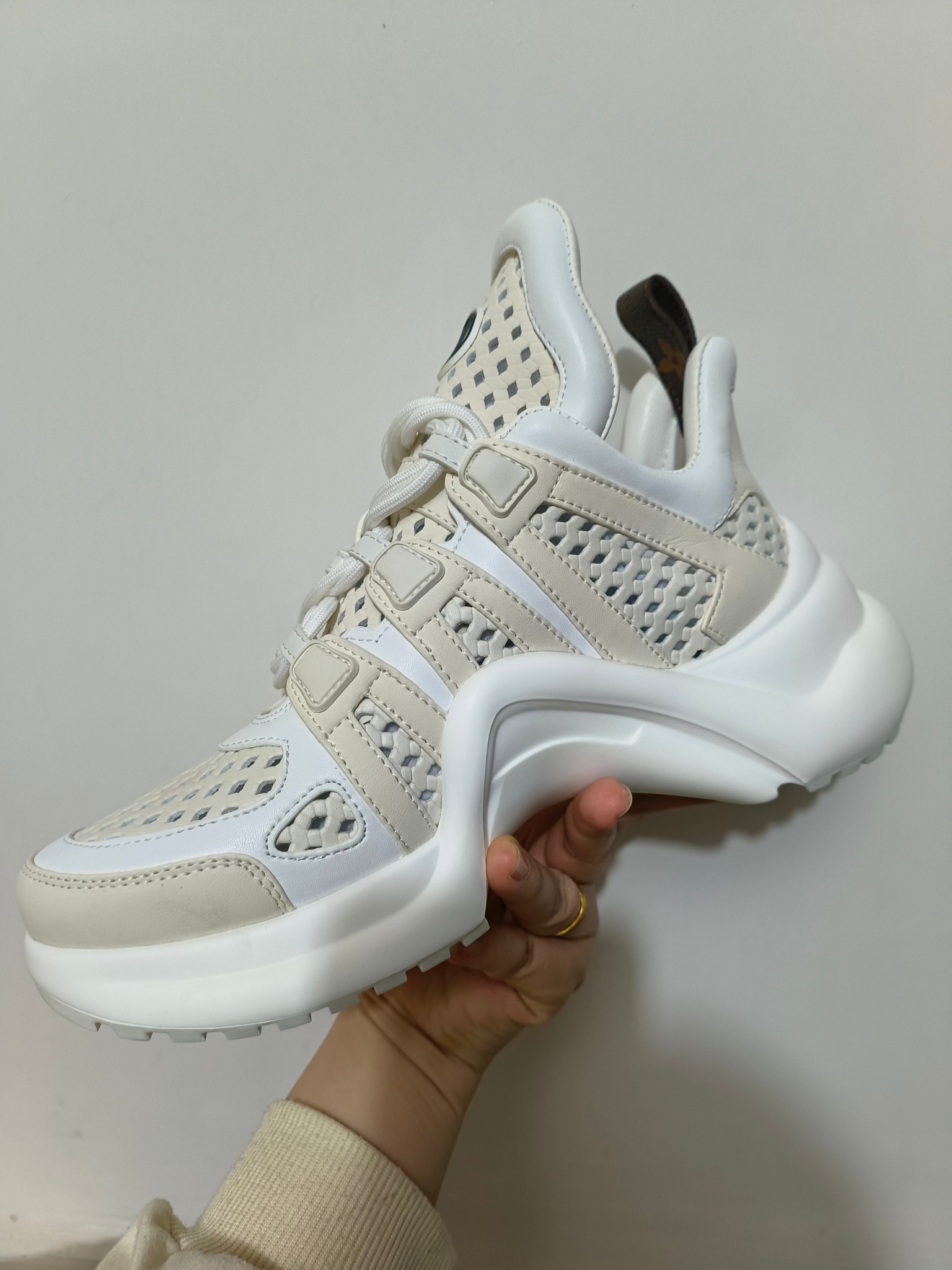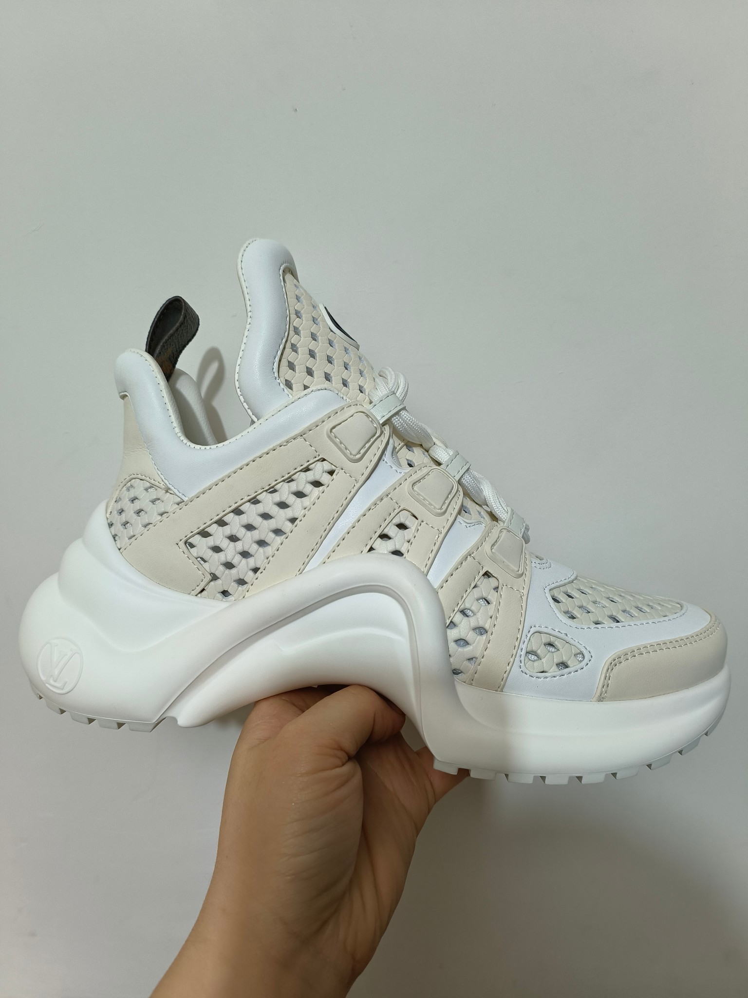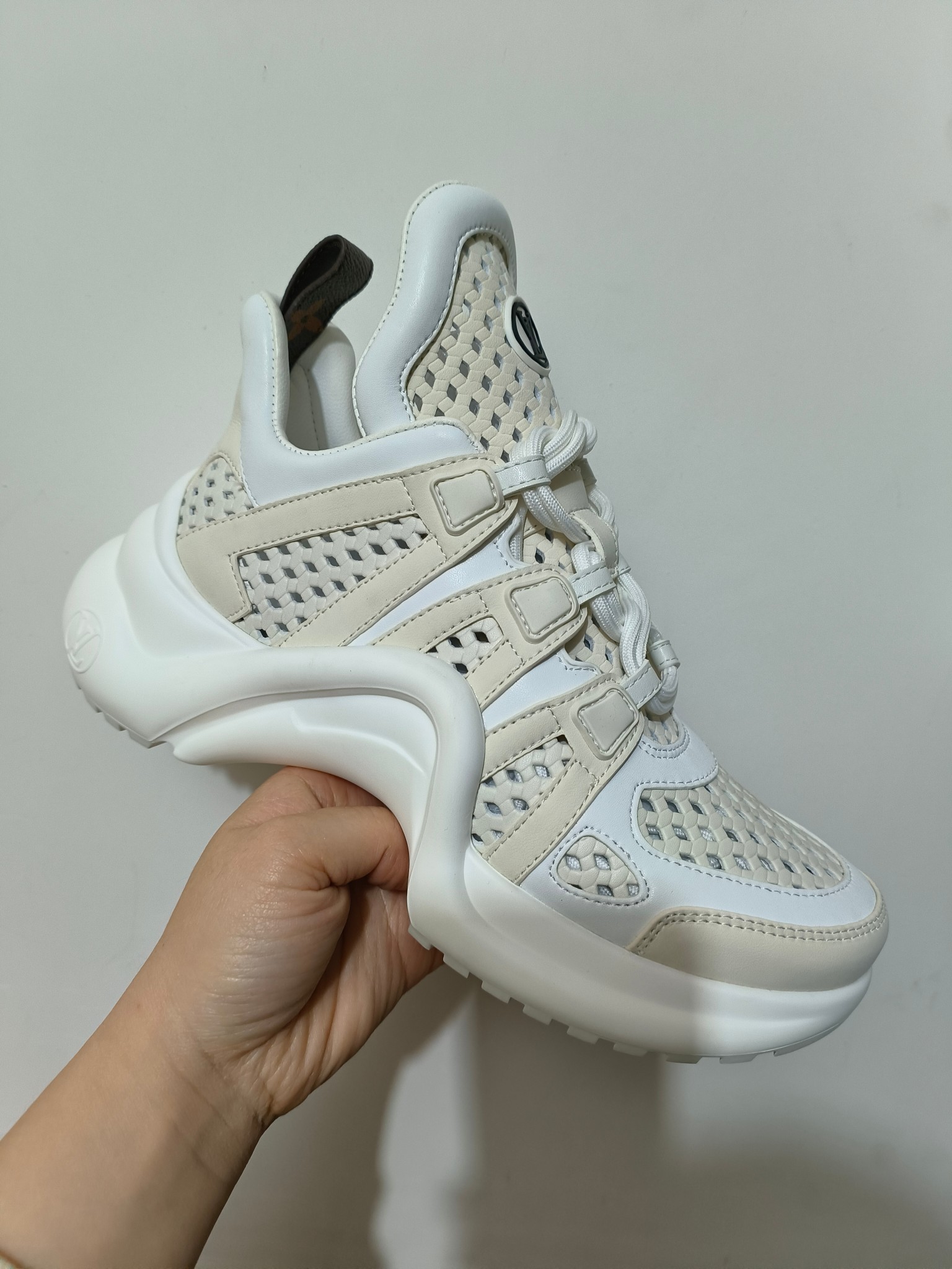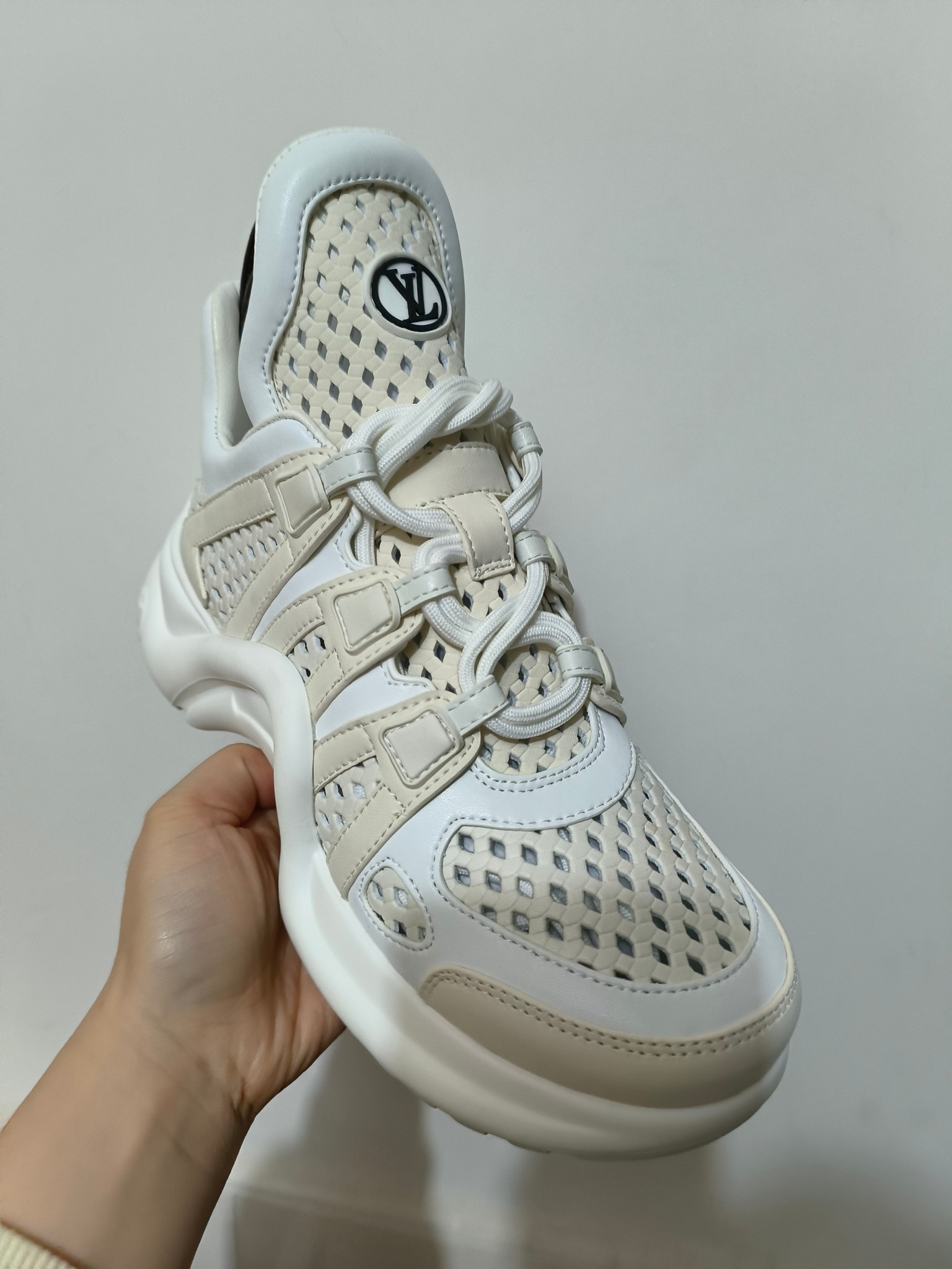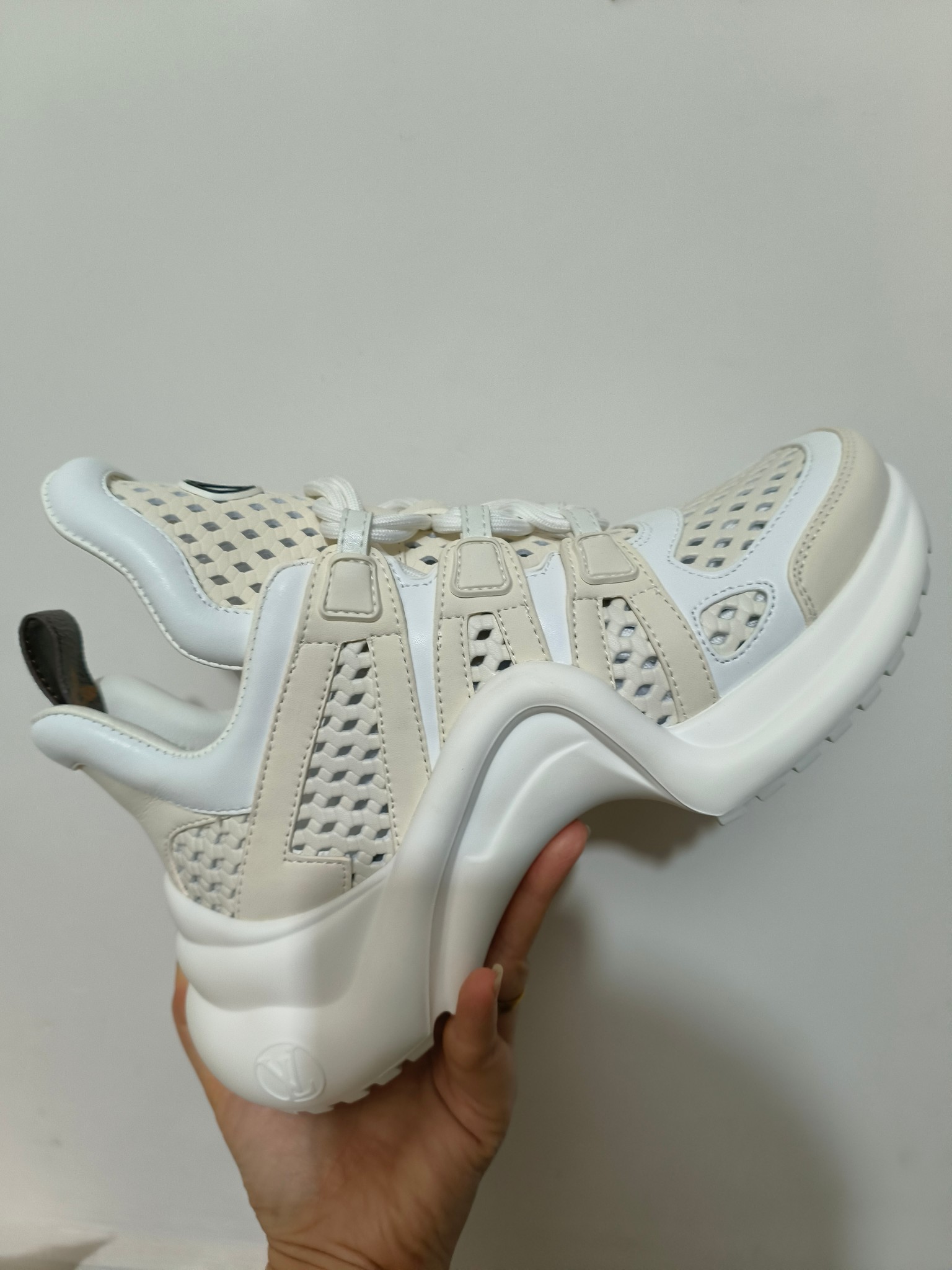 这款鞋子是AAAAA 1:1 质量 (非常棒). 使用了和原版一模一样的材料. 商标部分也保持了和路易威登/Louis Vuitton一样. 图片拍摄是实物鞋子拍摄, 您所收到的实物保证和我们图片一模一样.