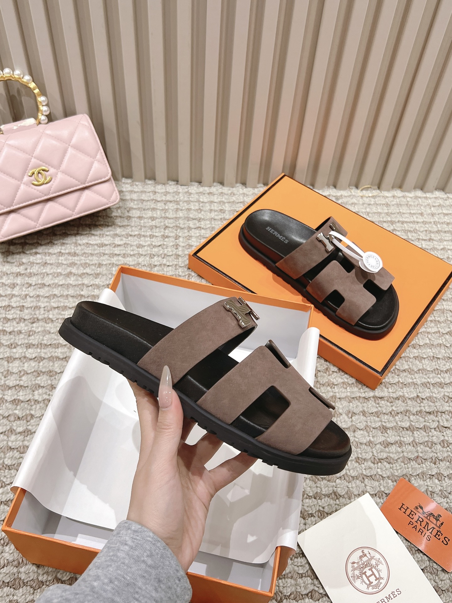 这款鞋子是AAAAA 1:1 质量 (非常棒). 使用了和原版一模一样的材料. 商标部分也保持了和爱马仕/Hermes一样. 图片拍摄是实物鞋子拍摄, 您所收到的实物保证和我们图片一模一样.
