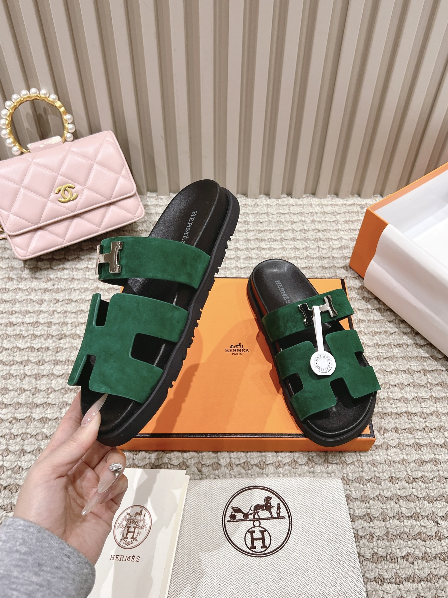 这款鞋子是AAAAA 1:1 质量 (非常棒). 使用了和原版一模一样的材料. 商标部分也保持了和爱马仕/Hermes一样. 图片拍摄是实物鞋子拍摄, 您所收到的实物保证和我们图片一模一样.