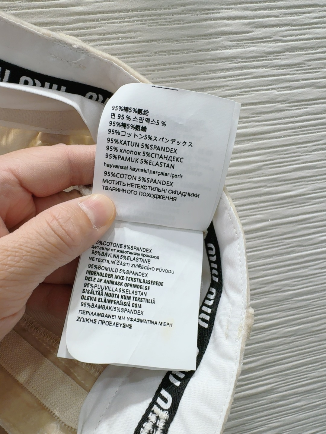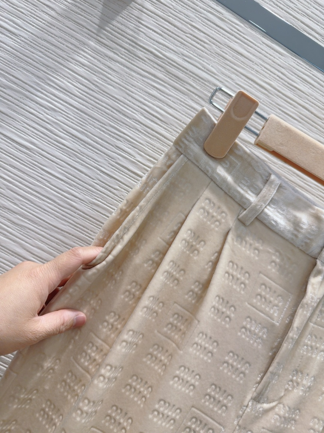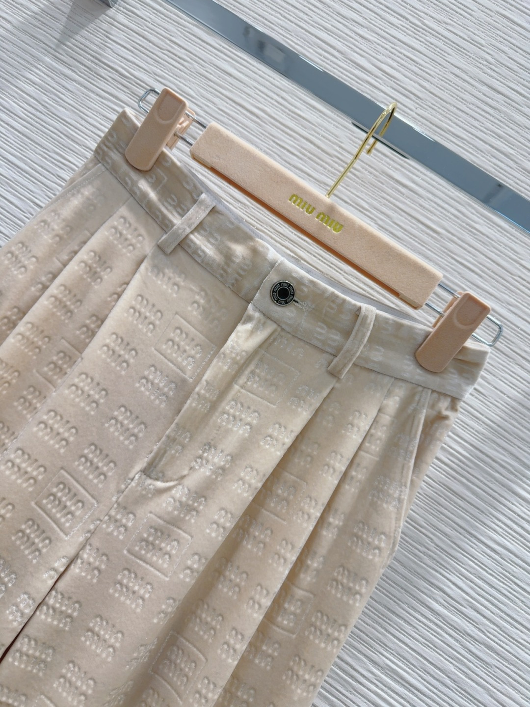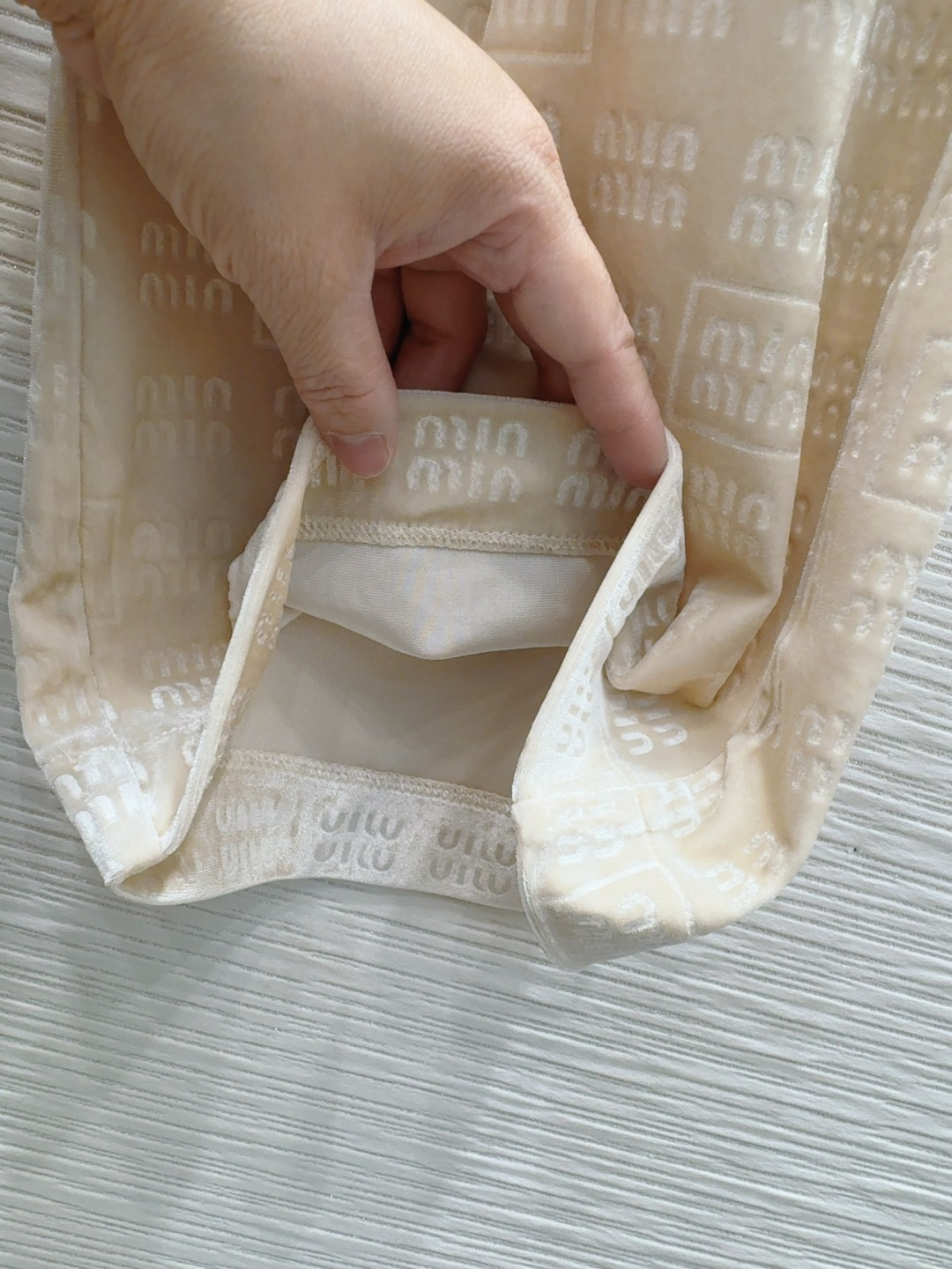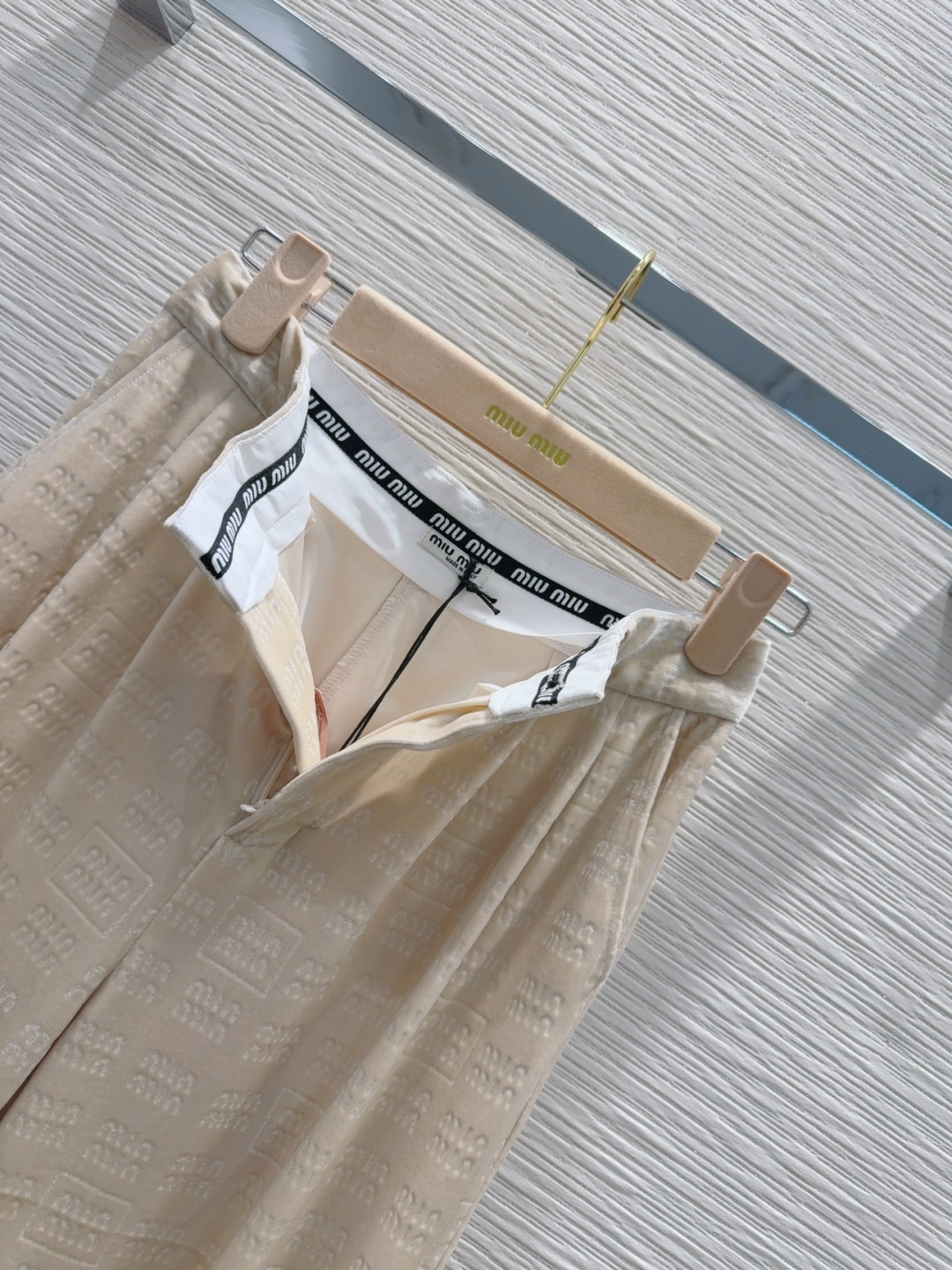 这款衣服是AAAAA 1:1 质量 (非常棒). 使用了和原版一模一样的材料. 商标部分也保持了和缪缪/Miu Miu一样. 图片拍摄是实物衣服拍摄, 您所收到的实物保证和我们图片一模一样.