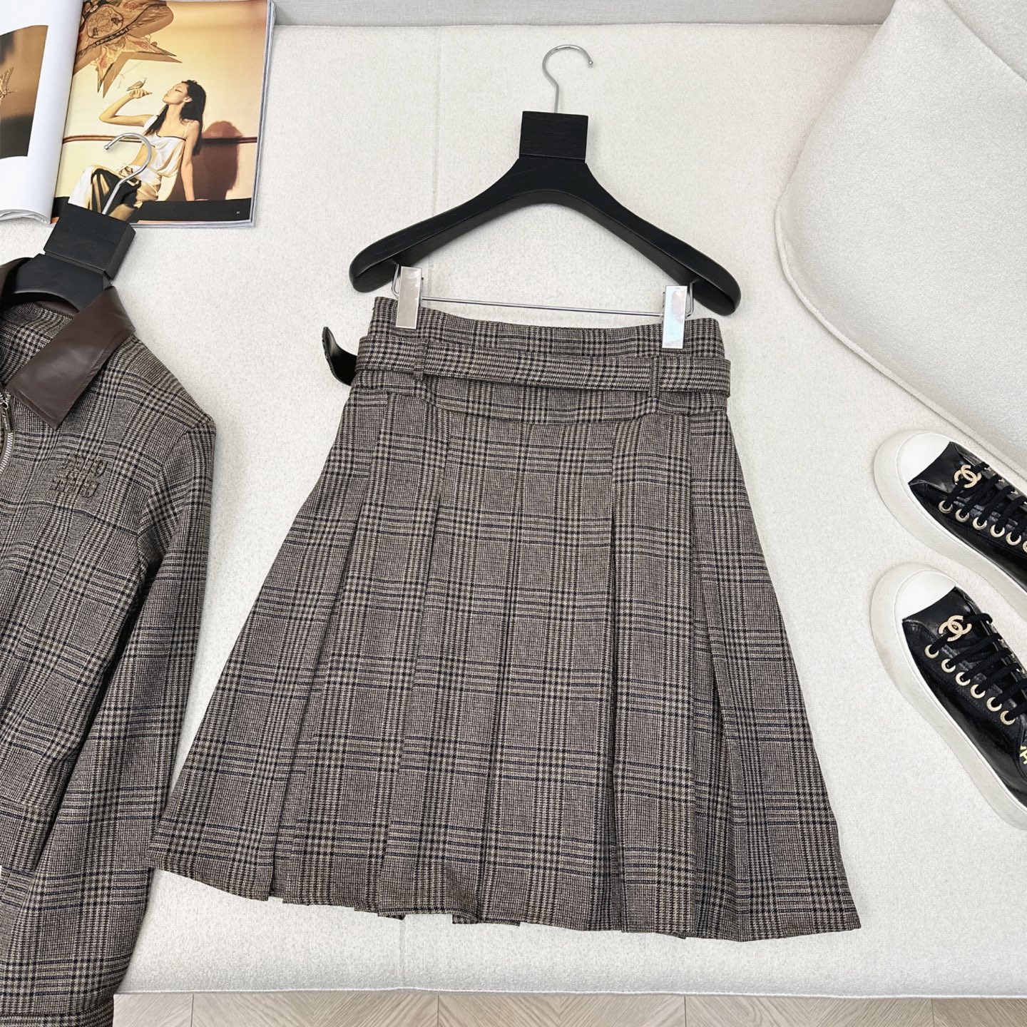 这款衣服是AAAAA 1:1 质量 (非常棒). 使用了和原版一模一样的材料. 商标部分也保持了和缪缪/Miu Miu一样. 图片拍摄是实物衣服拍摄, 您所收到的实物保证和我们图片一模一样.