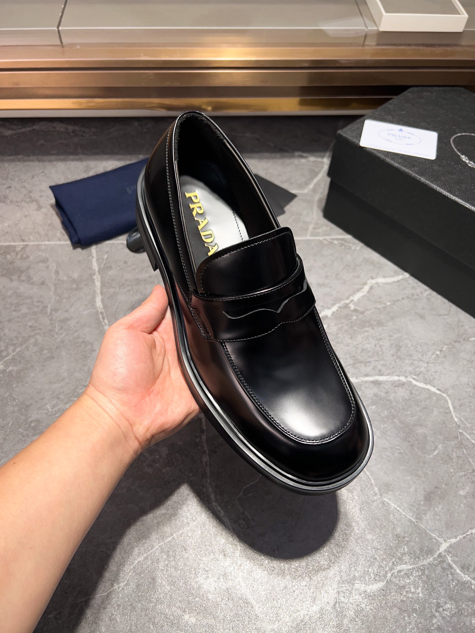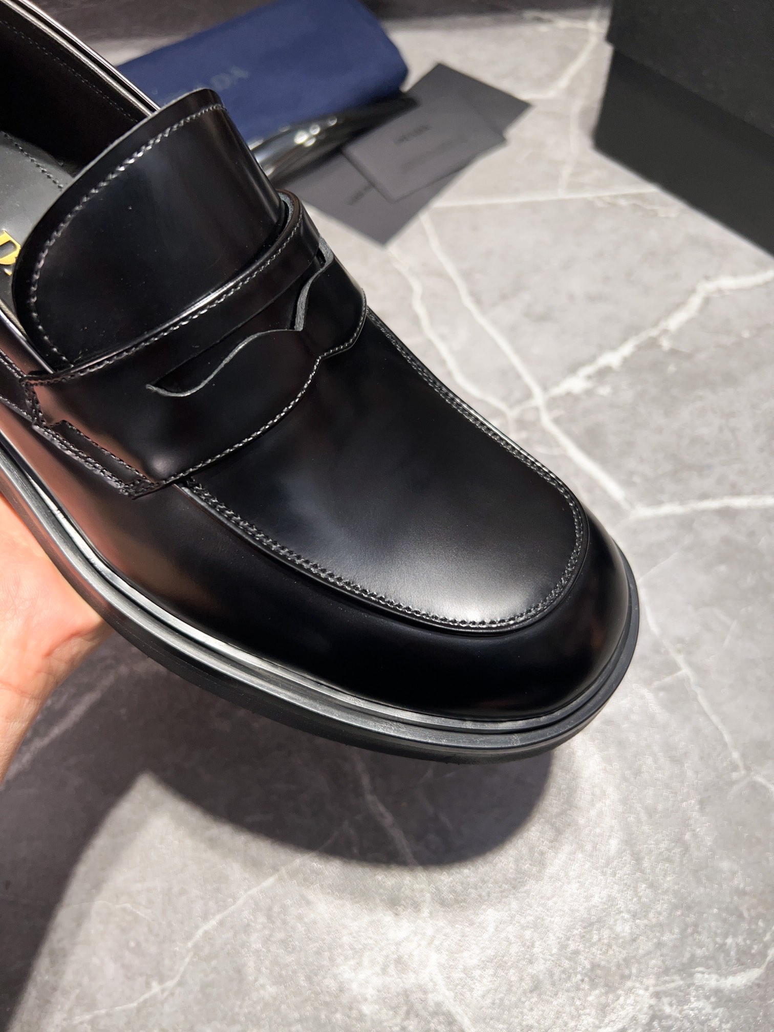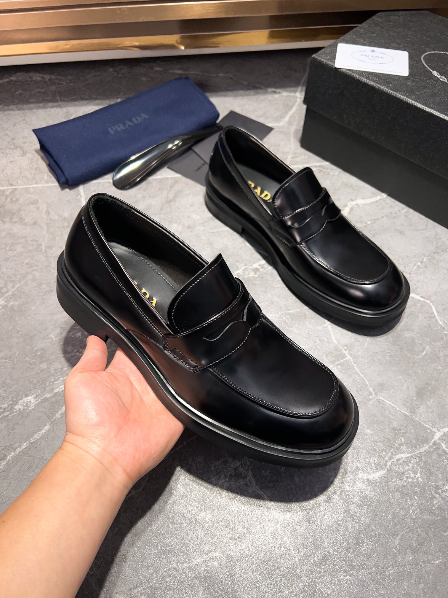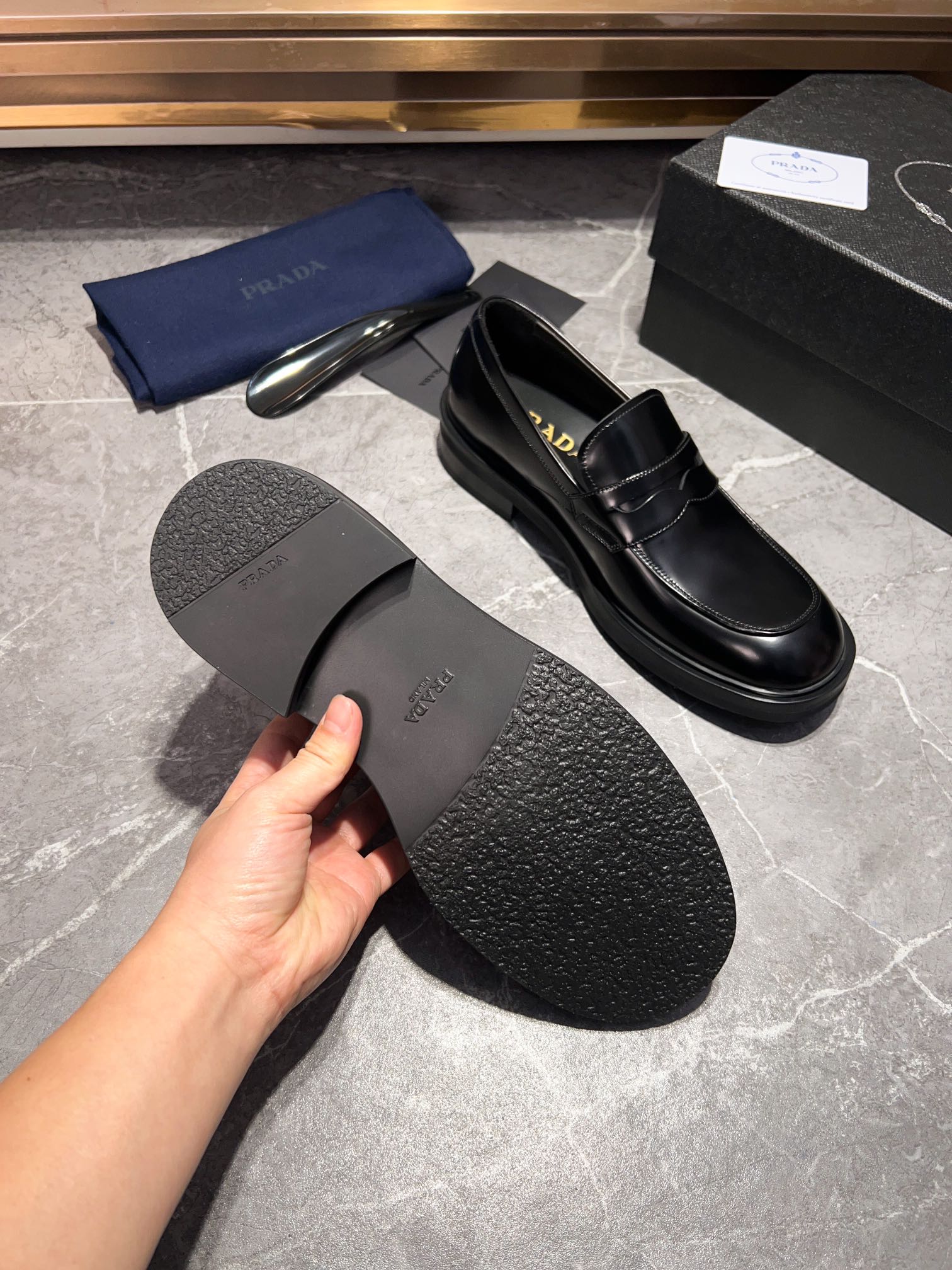 这款鞋子是AAAAA 1:1 质量 (非常棒). 使用了和原版一模一样的材料. 商标部分也保持了和普拉达/Prada一样. 图片拍摄是实物鞋子拍摄, 您所收到的实物保证和我们图片一模一样.
