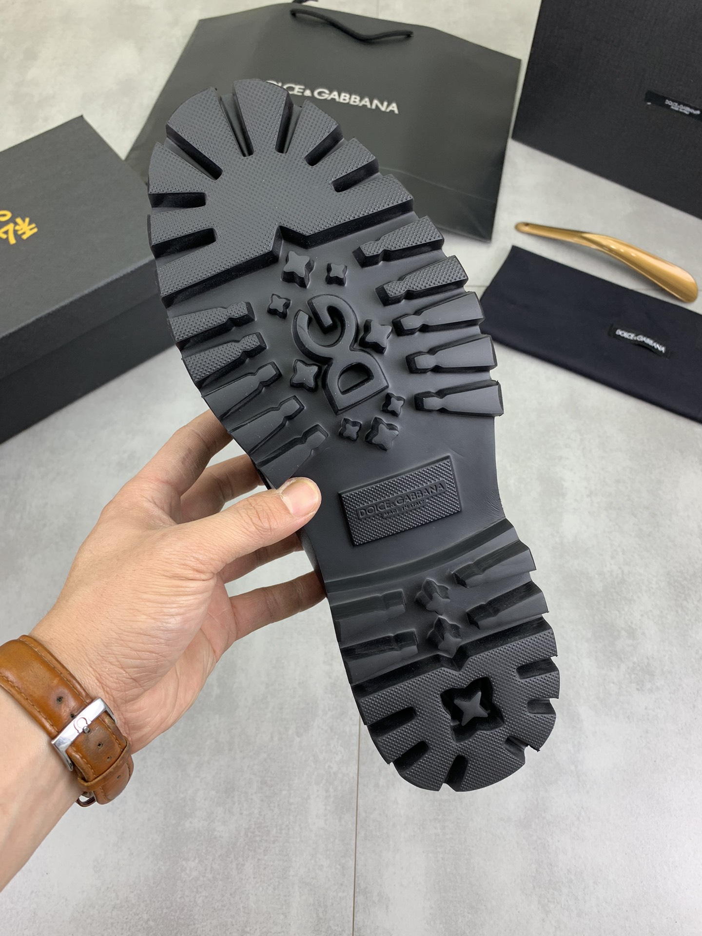 这款鞋子是AAAAA 1:1 质量 (非常棒). 使用了和原版一模一样的材料. 商标部分也保持了和杜嘉班纳/Dolce&Gabbana一样. 图片拍摄是实物鞋子拍摄, 您所收到的实物保证和我们图片一模一样.