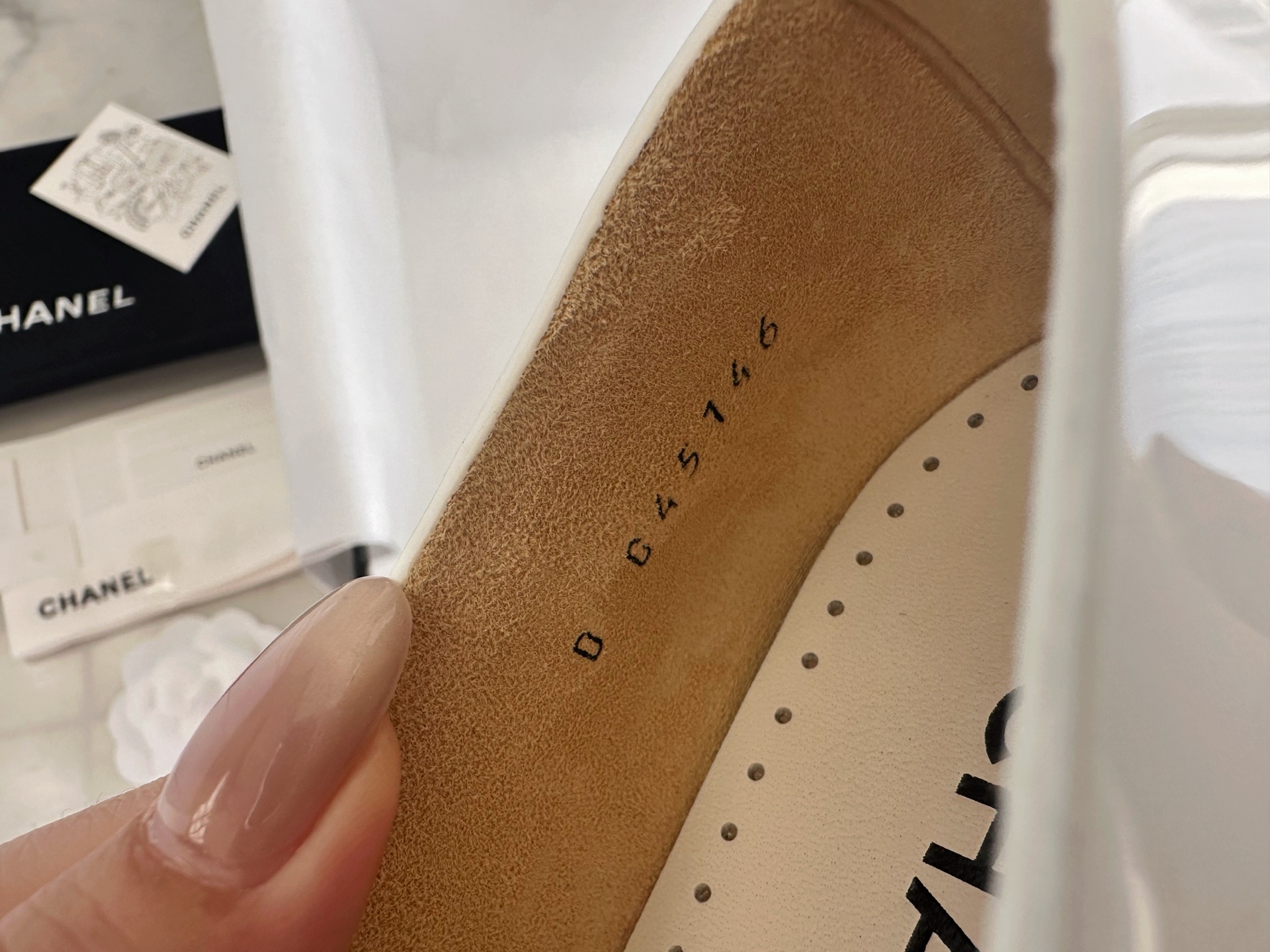 这款鞋子是AAAAA 1:1 质量 (非常棒). 使用了和原版一模一样的材料. 商标部分也保持了和香奈儿/Chanel一样. 图片拍摄是实物鞋子拍摄, 您所收到的实物保证和我们图片一模一样.