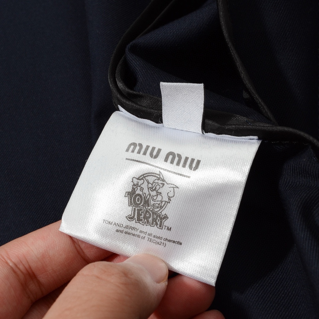 这款衣服是AAAAA 1:1 质量 (非常棒). 使用了和原版一模一样的材料. 商标部分也保持了和缪缪/Miu Miu一样. 图片拍摄是实物衣服拍摄, 您所收到的实物保证和我们图片一模一样.