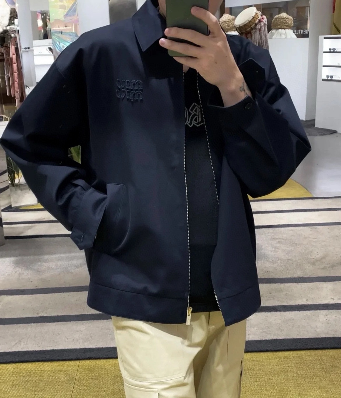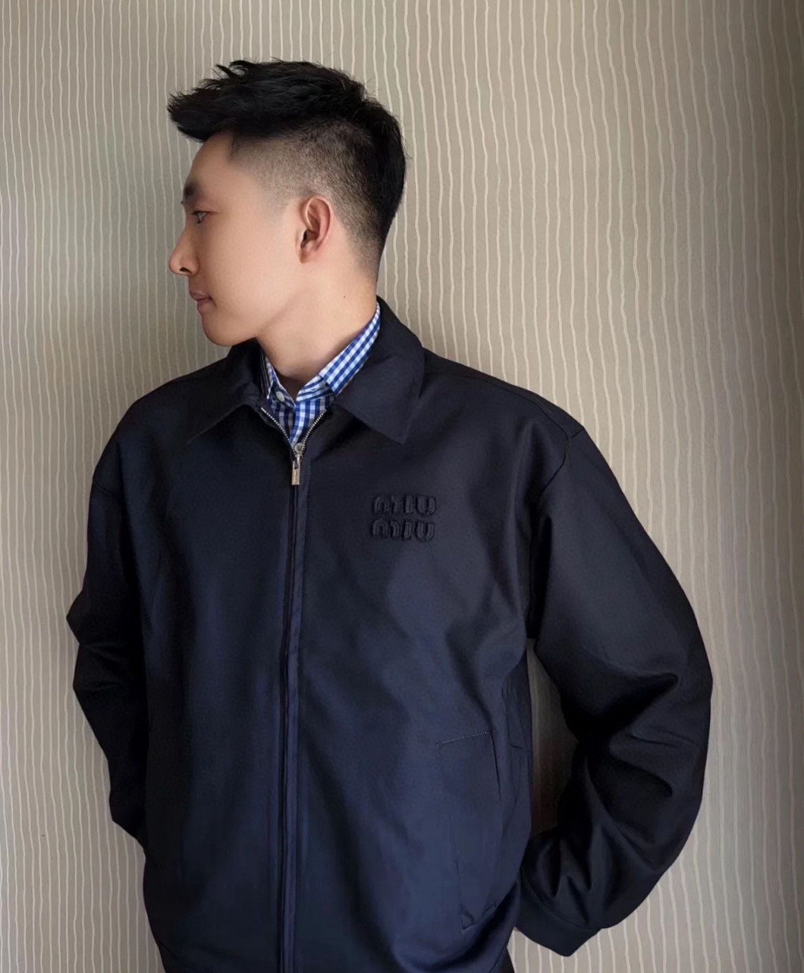 这款衣服是AAAAA 1:1 质量 (非常棒). 使用了和原版一模一样的材料. 商标部分也保持了和缪缪/Miu Miu一样. 图片拍摄是实物衣服拍摄, 您所收到的实物保证和我们图片一模一样.