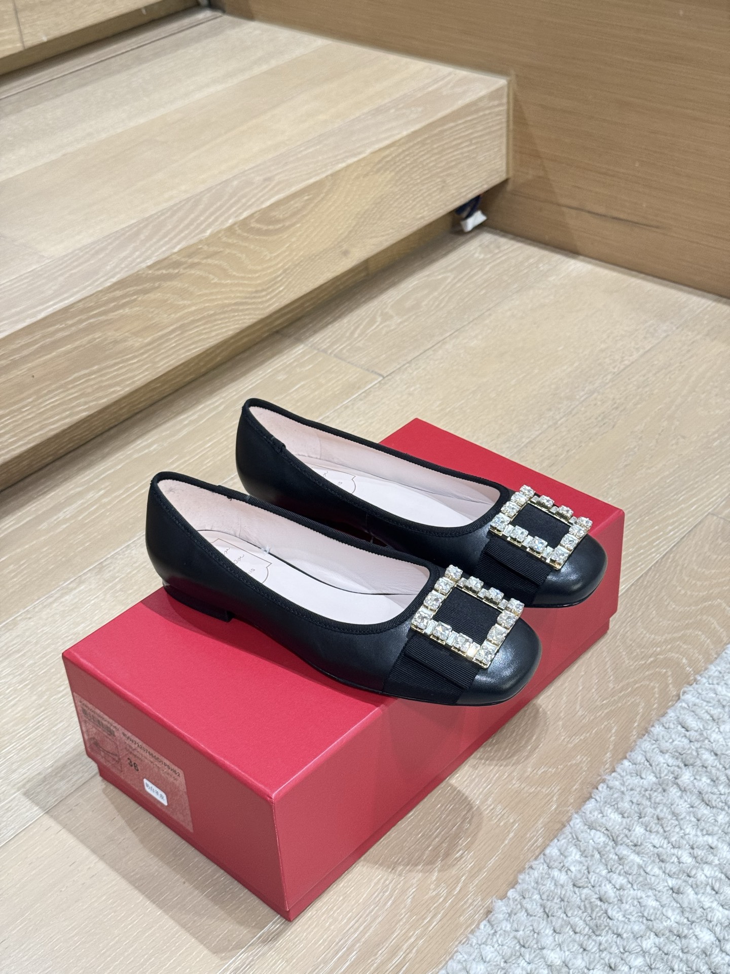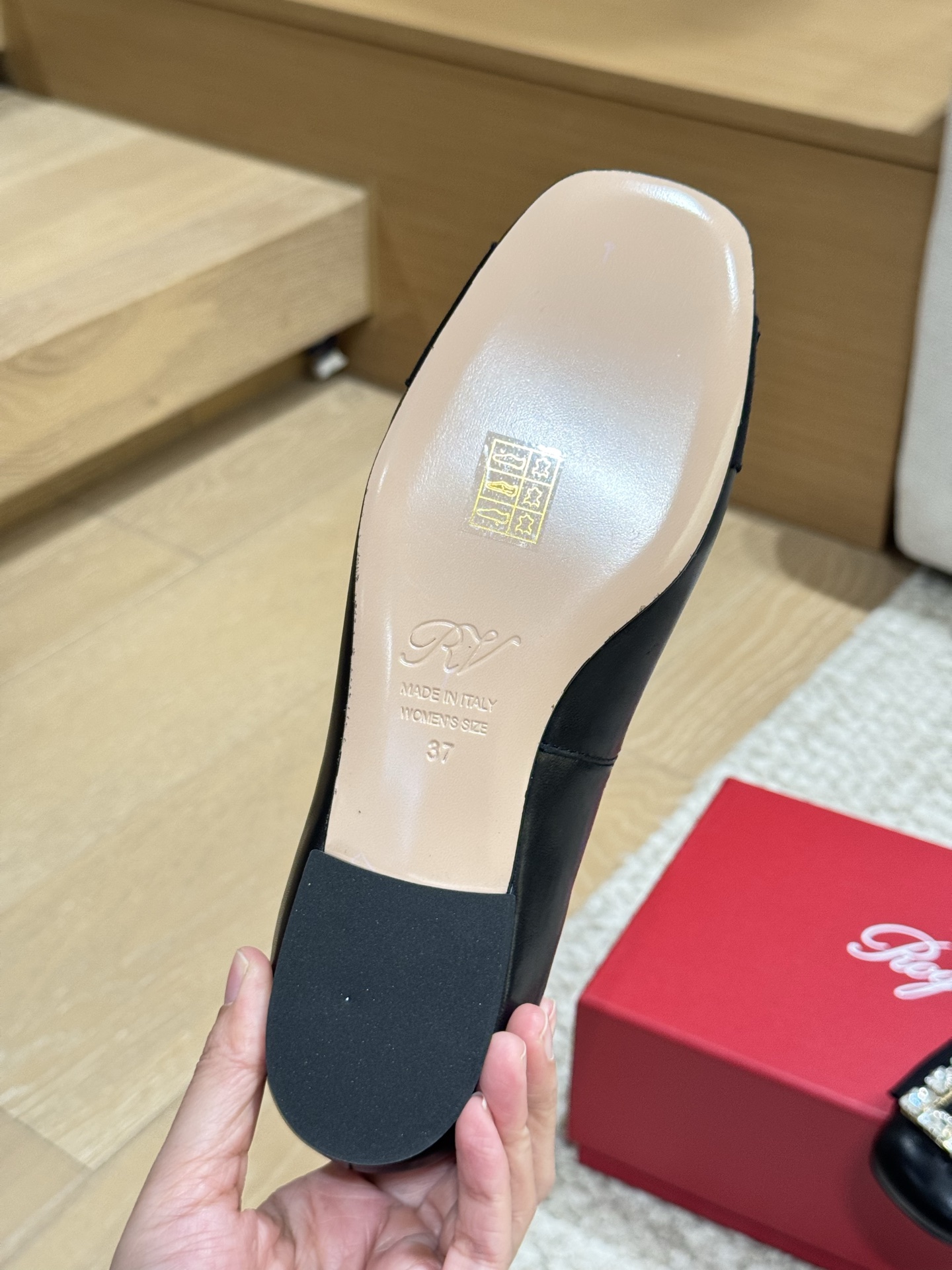 这款鞋子是AAAAA 1:1 质量 (非常棒). 使用了和原版一模一样的材料. 商标部分也保持了和罗杰维维耶/Roger Vivier一样. 图片拍摄是实物鞋子拍摄, 您所收到的实物保证和我们图片一模一样.