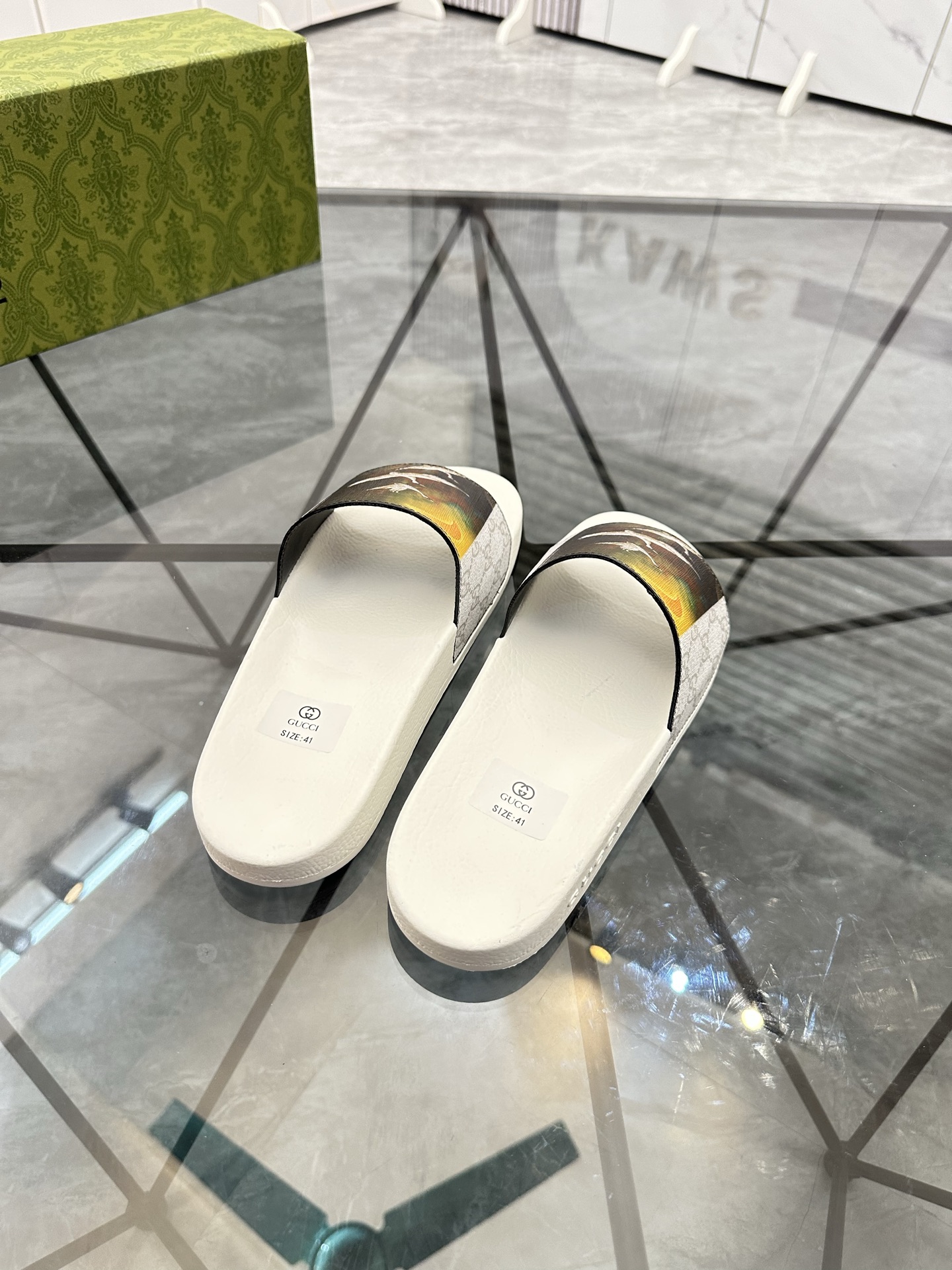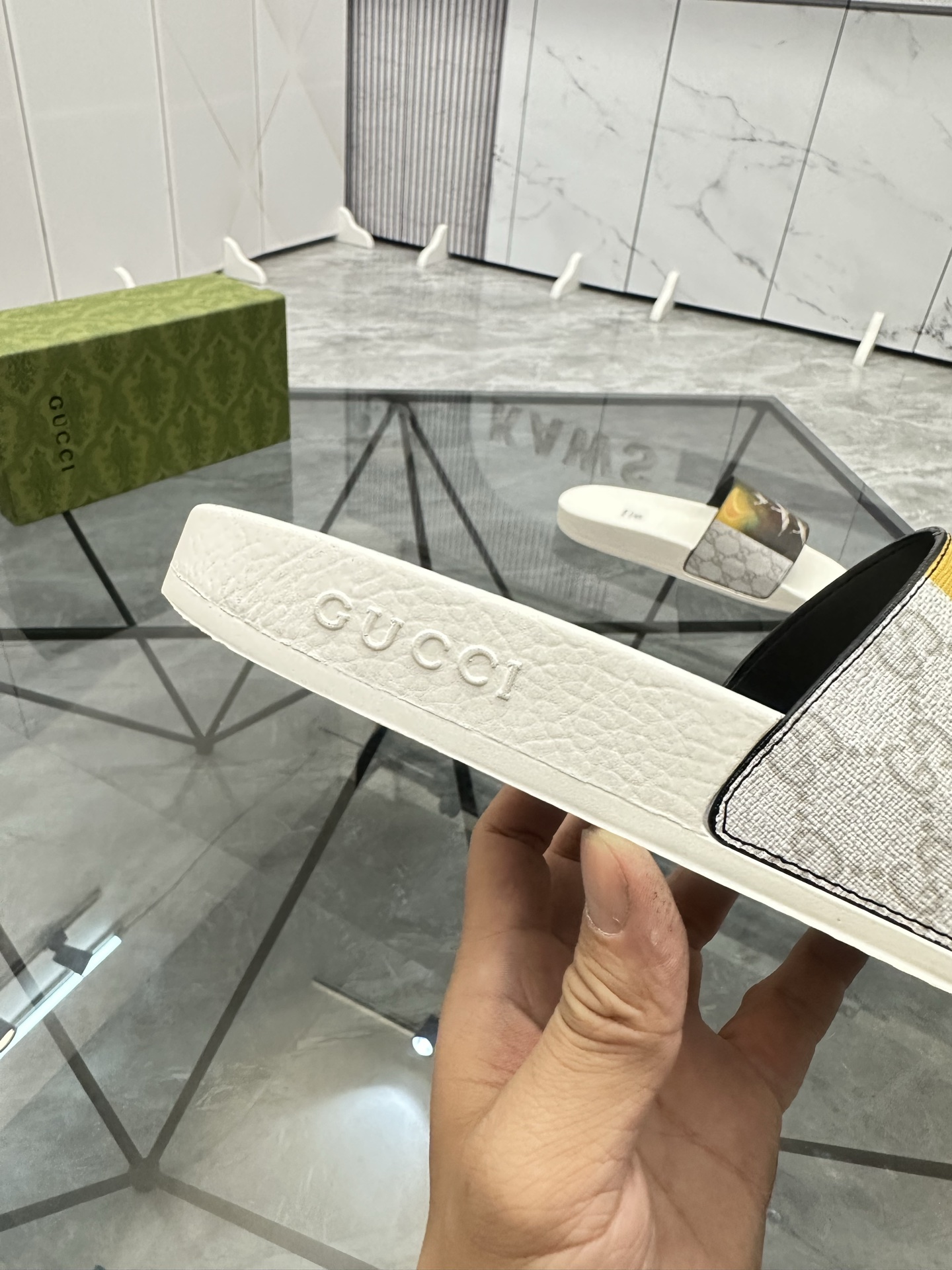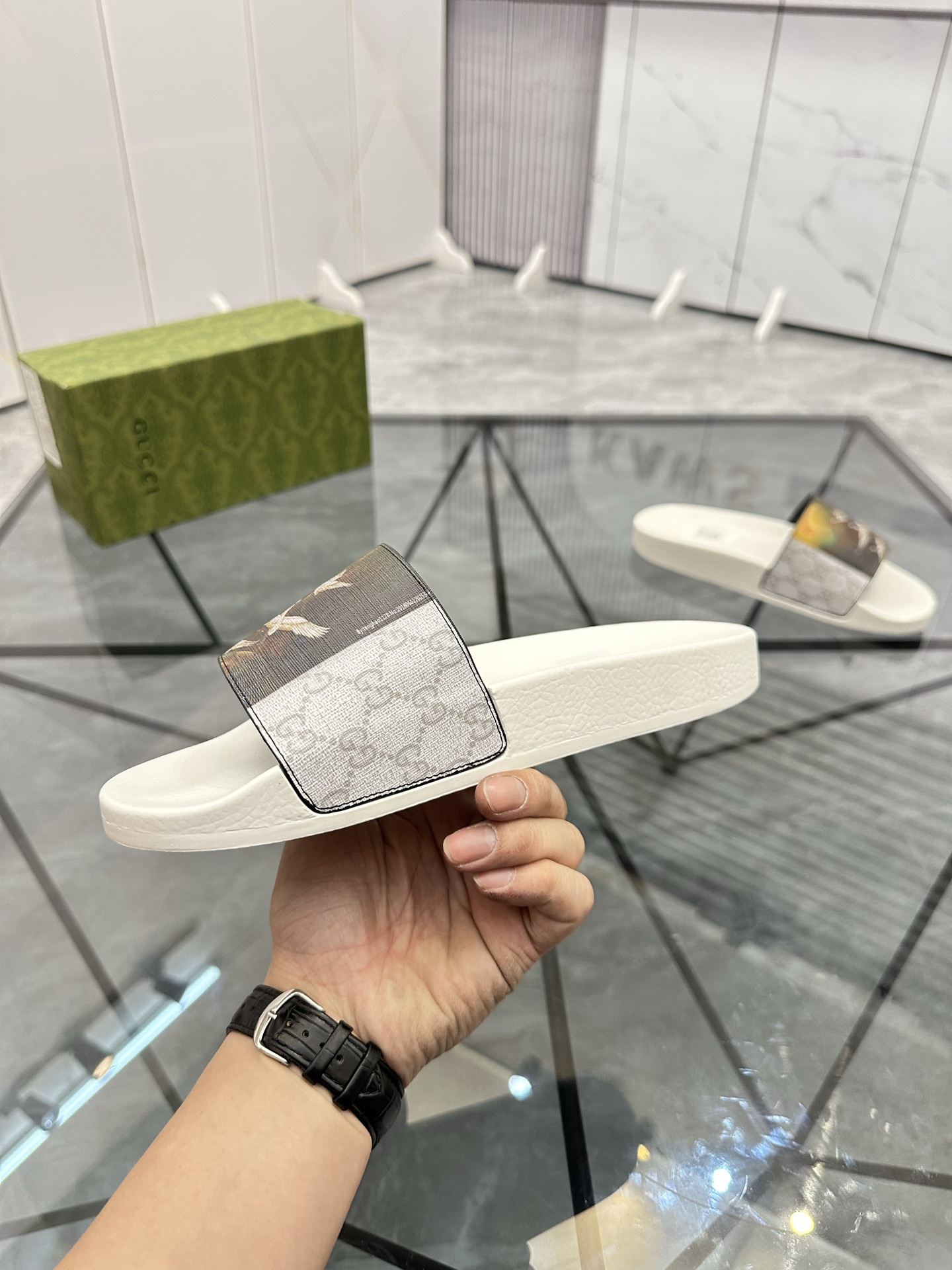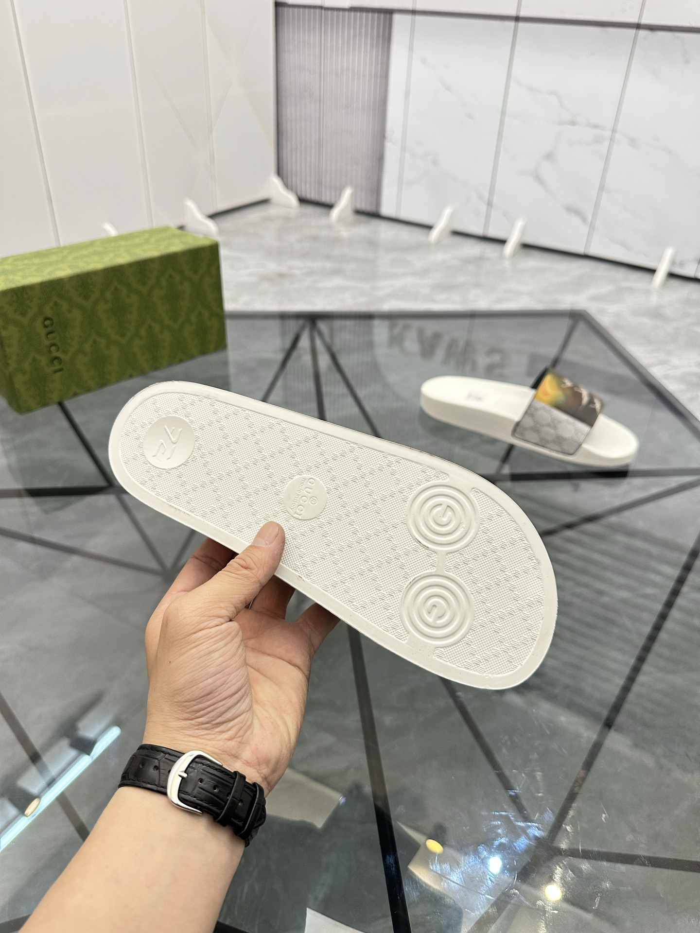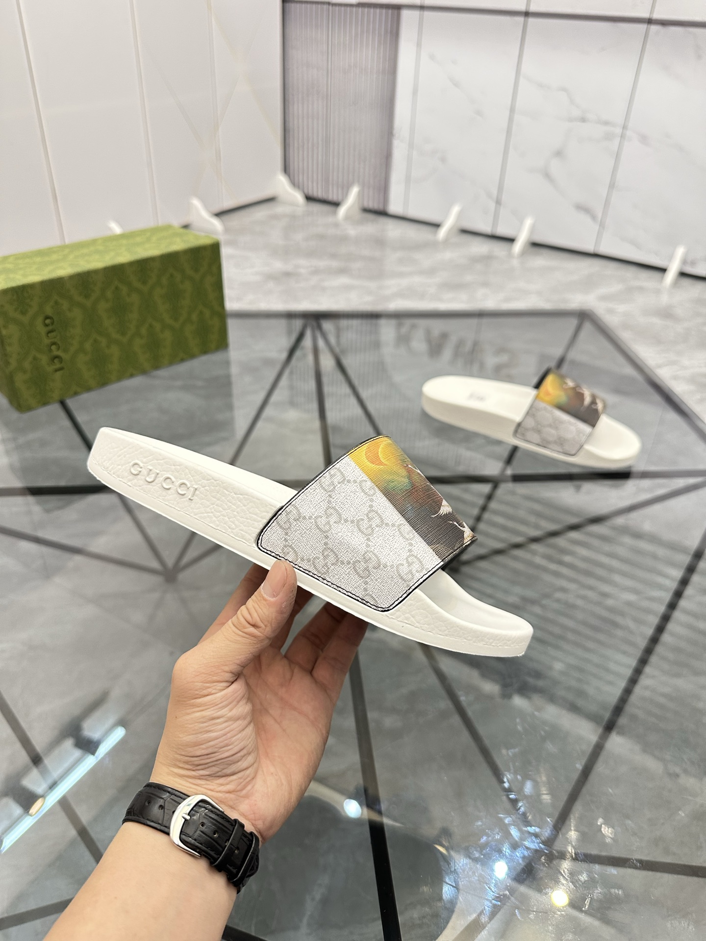 这款鞋子是AAAAA 1:1 质量 (非常棒). 使用了和原版一模一样的材料. 商标部分也保持了和古奇/Gucci一样. 图片拍摄是实物鞋子拍摄, 您所收到的实物保证和我们图片一模一样.