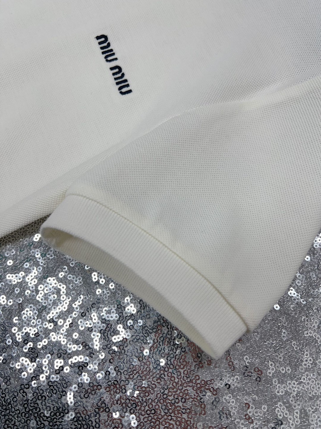 这款衣服是AAAAA 1:1 质量 (非常棒). 使用了和原版一模一样的材料. 商标部分也保持了和缪缪/Miu Miu一样. 图片拍摄是实物衣服拍摄, 您所收到的实物保证和我们图片一模一样.