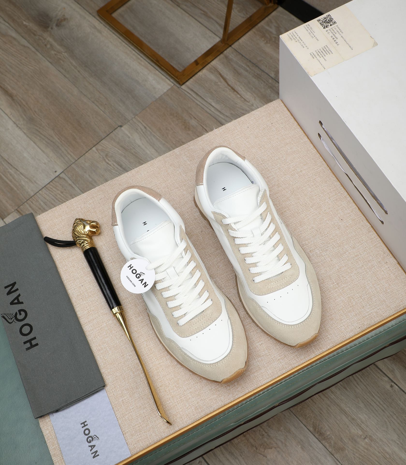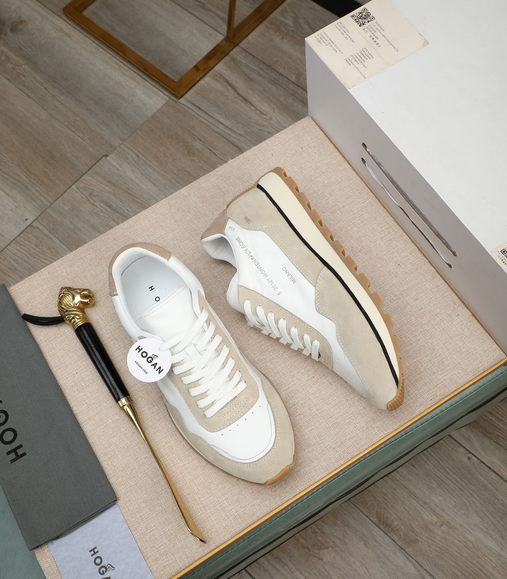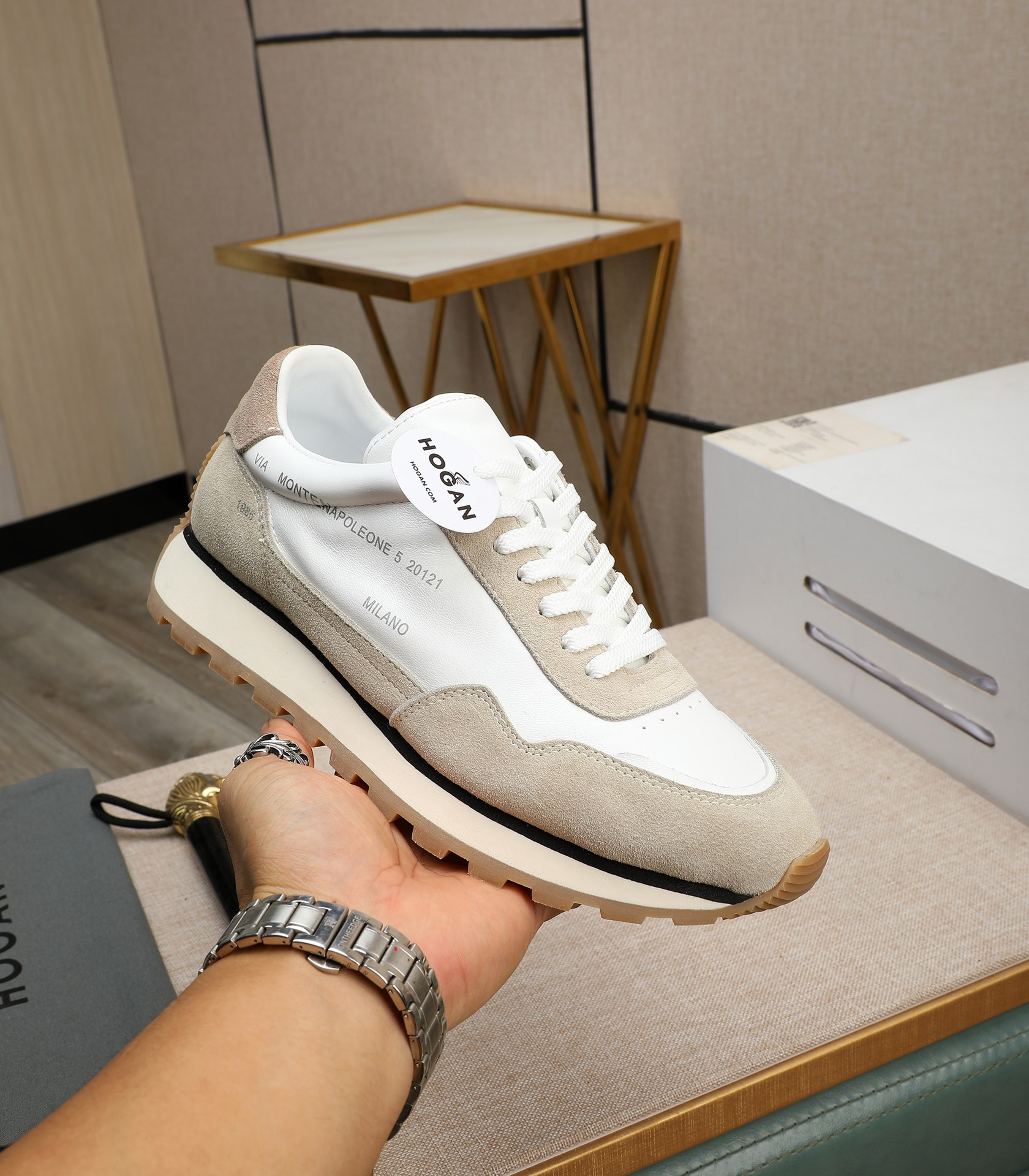 这款鞋子是AAAAA 1:1 质量 (非常棒). 使用了和原版一模一样的材料. 商标部分也保持了和Hogan一样. 图片拍摄是实物鞋子拍摄, 您所收到的实物保证和我们图片一模一样.