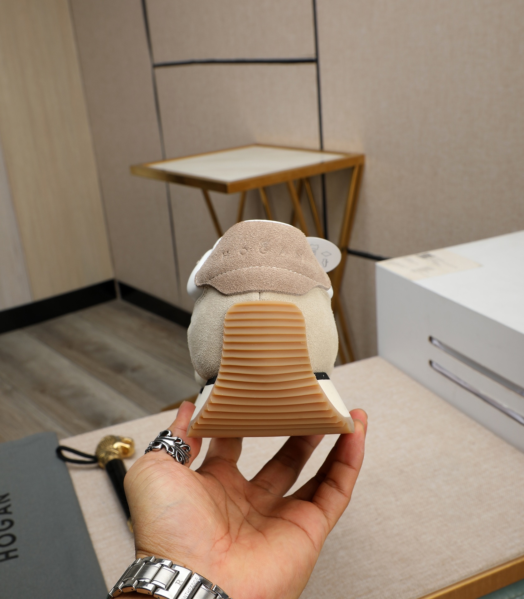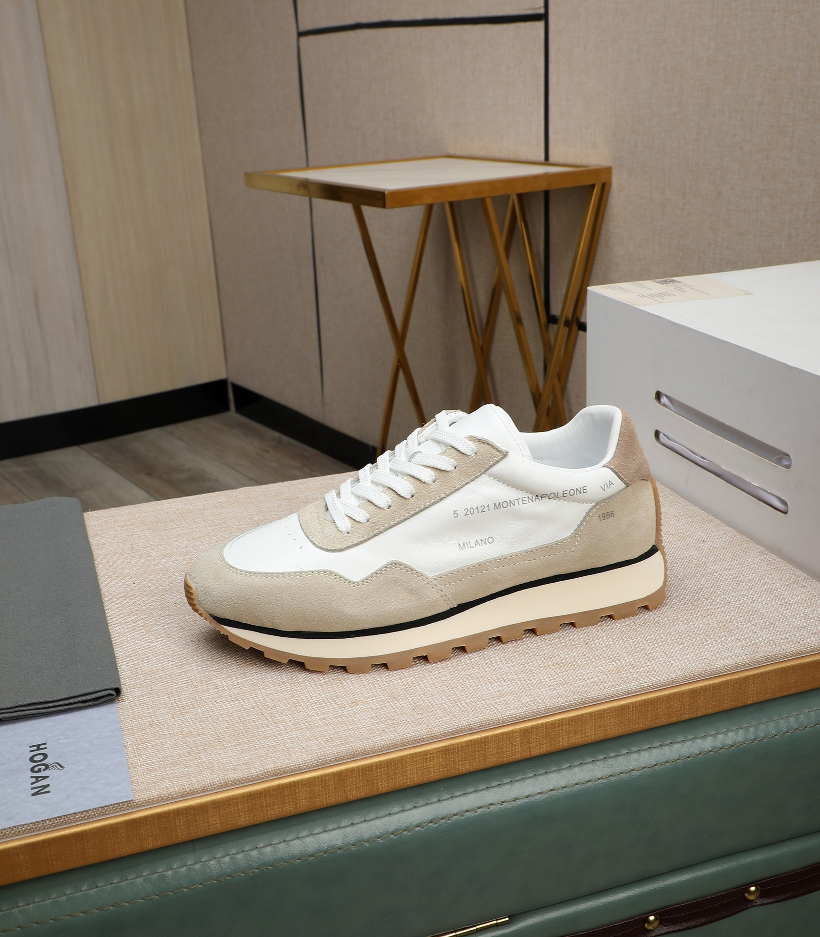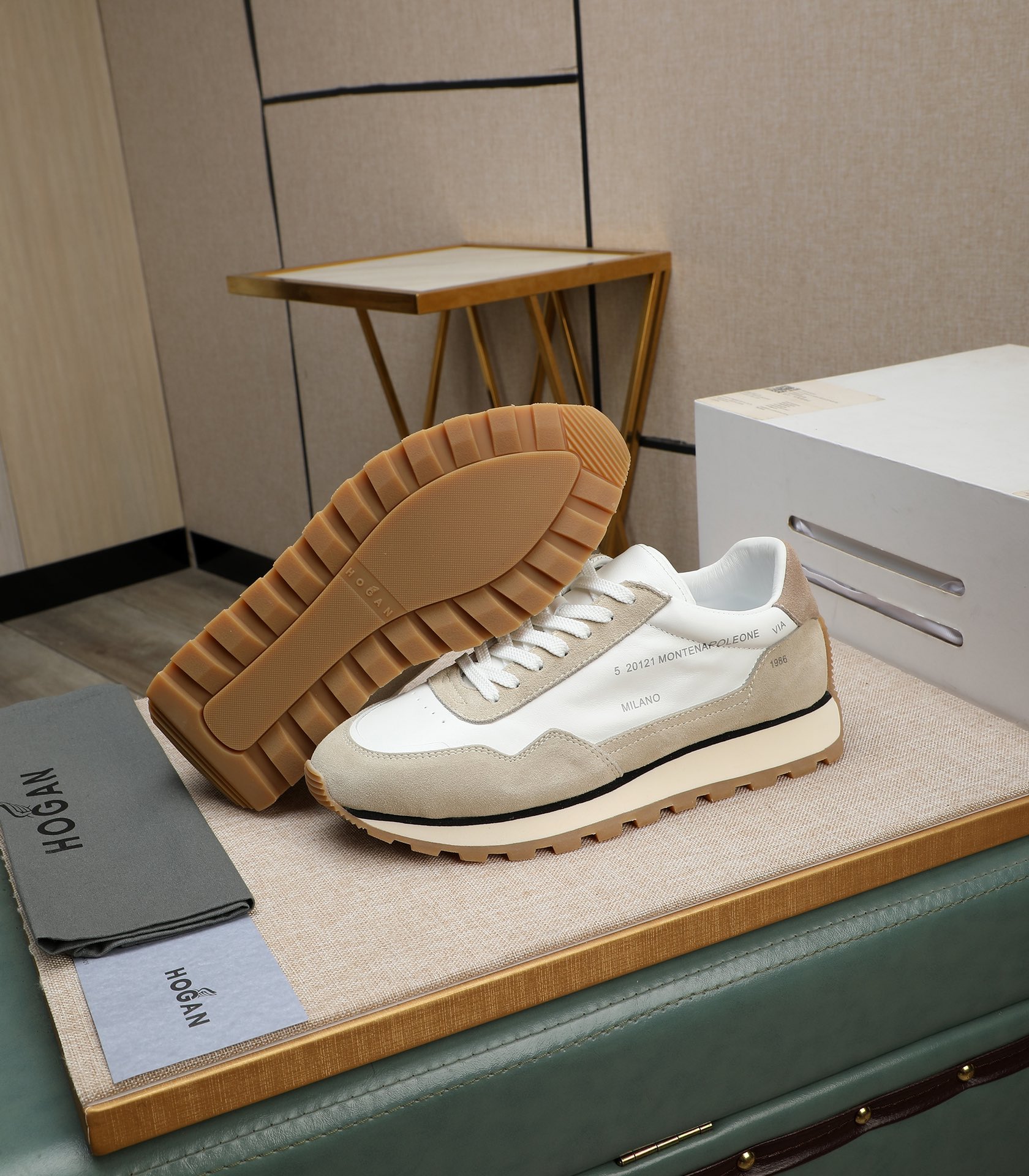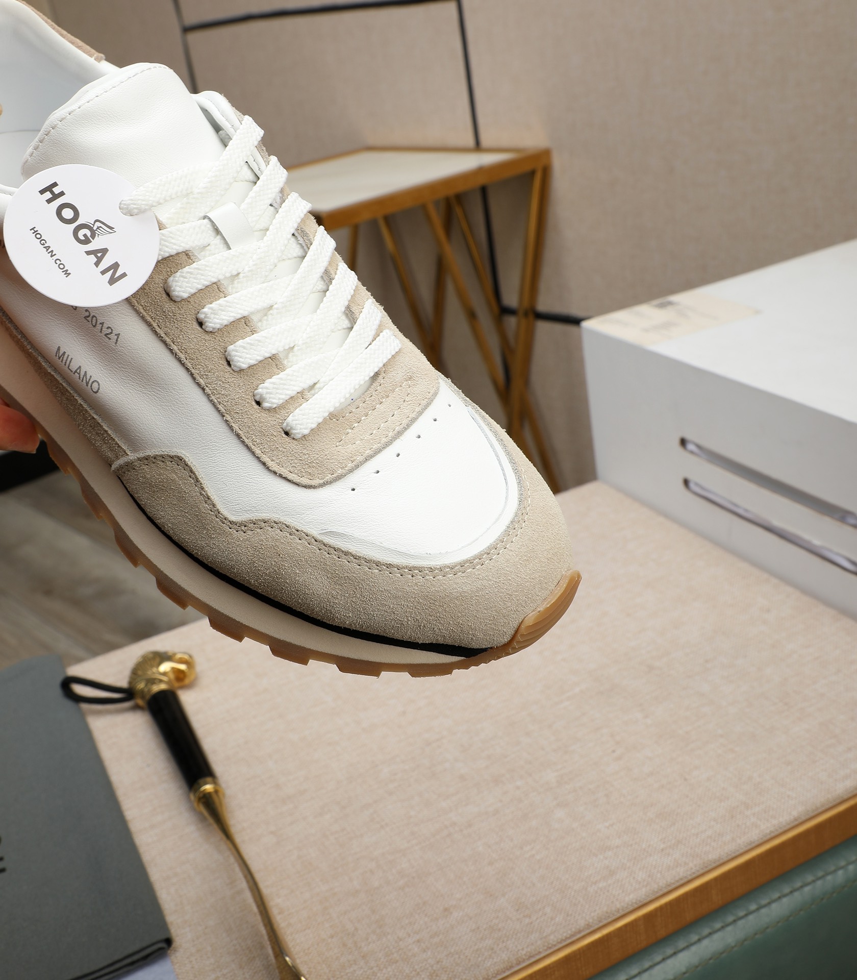 这款鞋子是AAAAA 1:1 质量 (非常棒). 使用了和原版一模一样的材料. 商标部分也保持了和Hogan一样. 图片拍摄是实物鞋子拍摄, 您所收到的实物保证和我们图片一模一样.