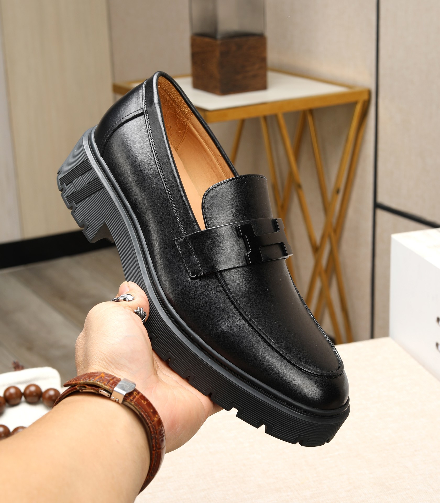 这款鞋子是AAAAA 1:1 质量 (非常棒). 使用了和原版一模一样的材料. 商标部分也保持了和爱马仕/Hermes一样. 图片拍摄是实物鞋子拍摄, 您所收到的实物保证和我们图片一模一样.
