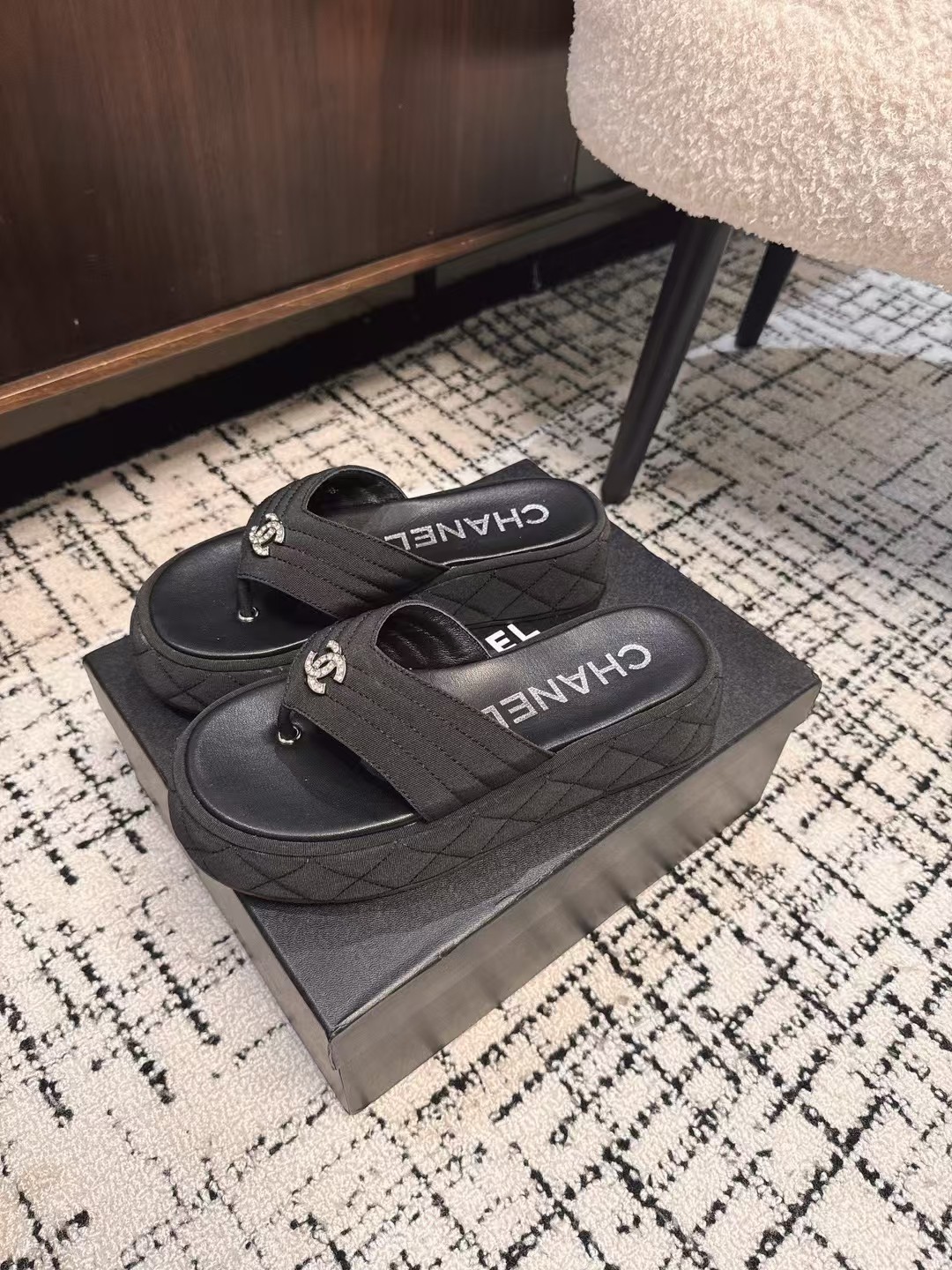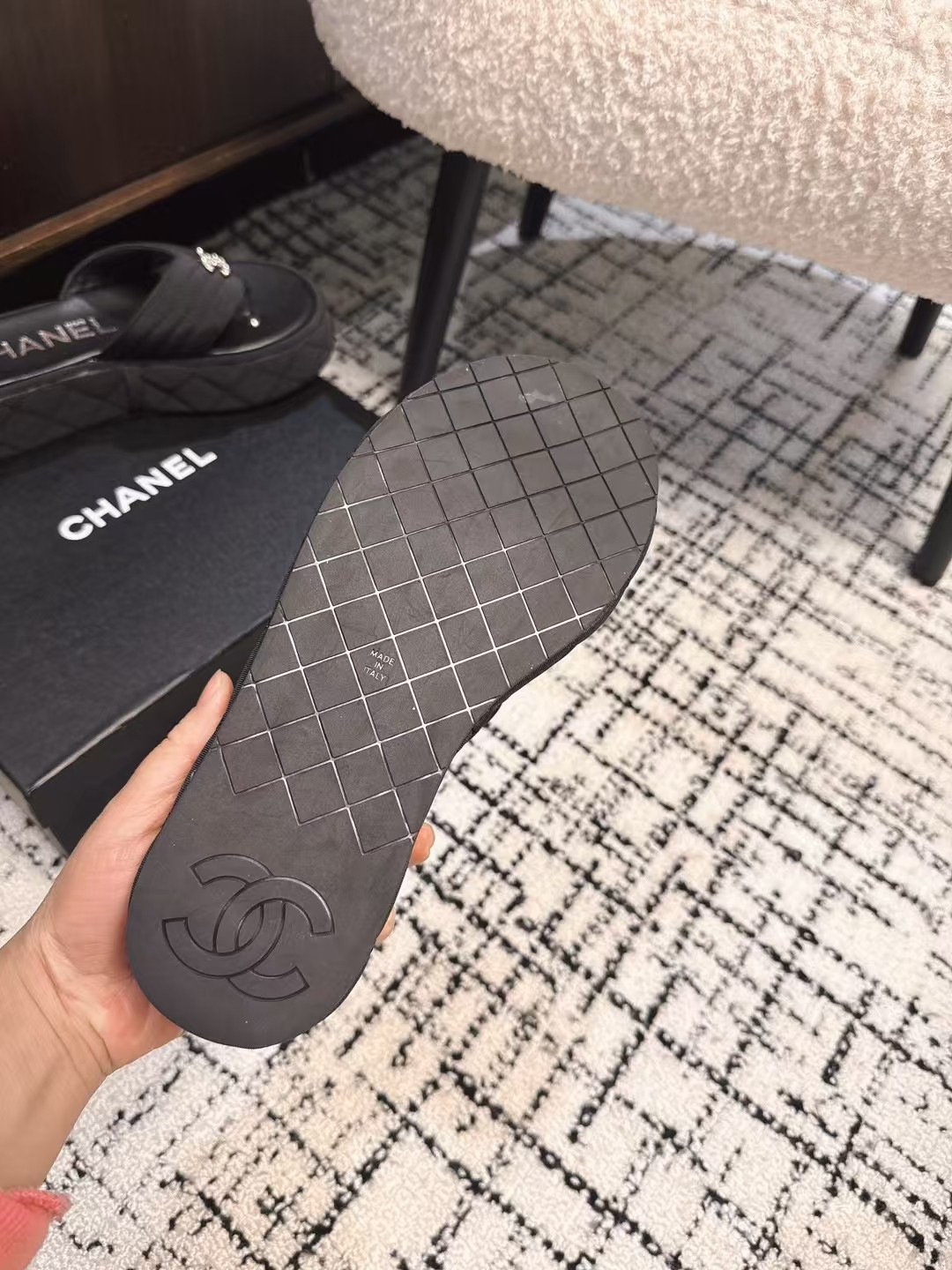 这款鞋子是AAAAA 1:1 质量 (非常棒). 使用了和原版一模一样的材料. 商标部分也保持了和香奈儿/Chanel一样. 图片拍摄是实物鞋子拍摄, 您所收到的实物保证和我们图片一模一样.