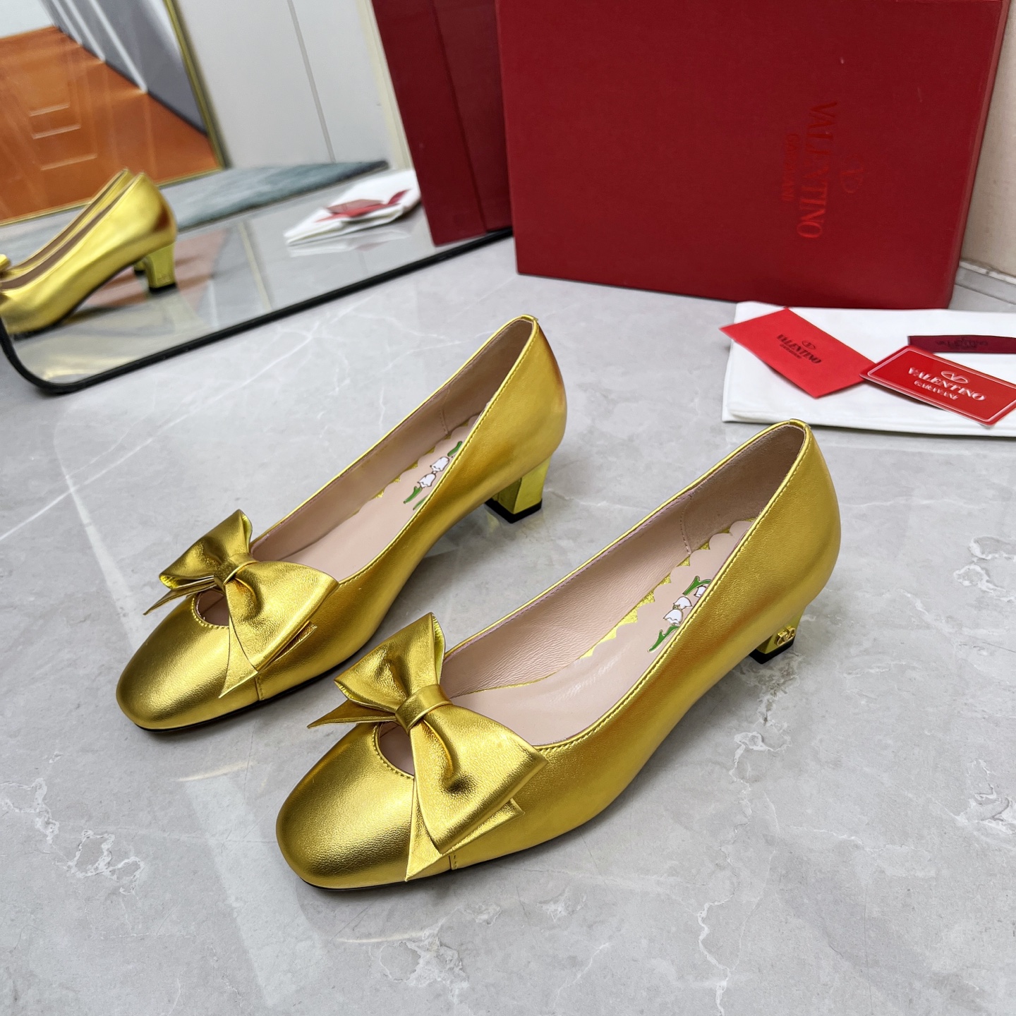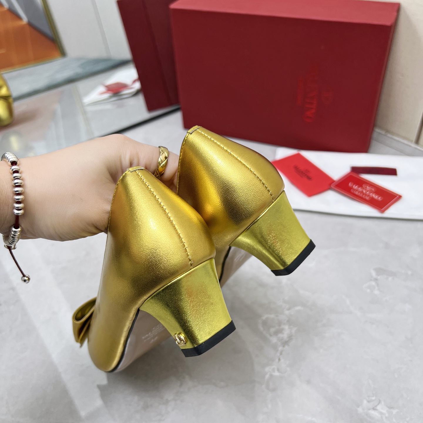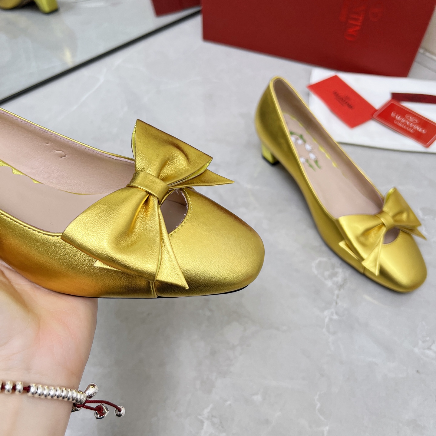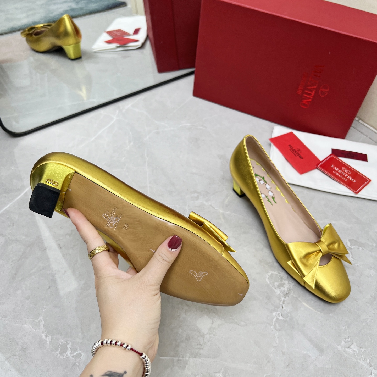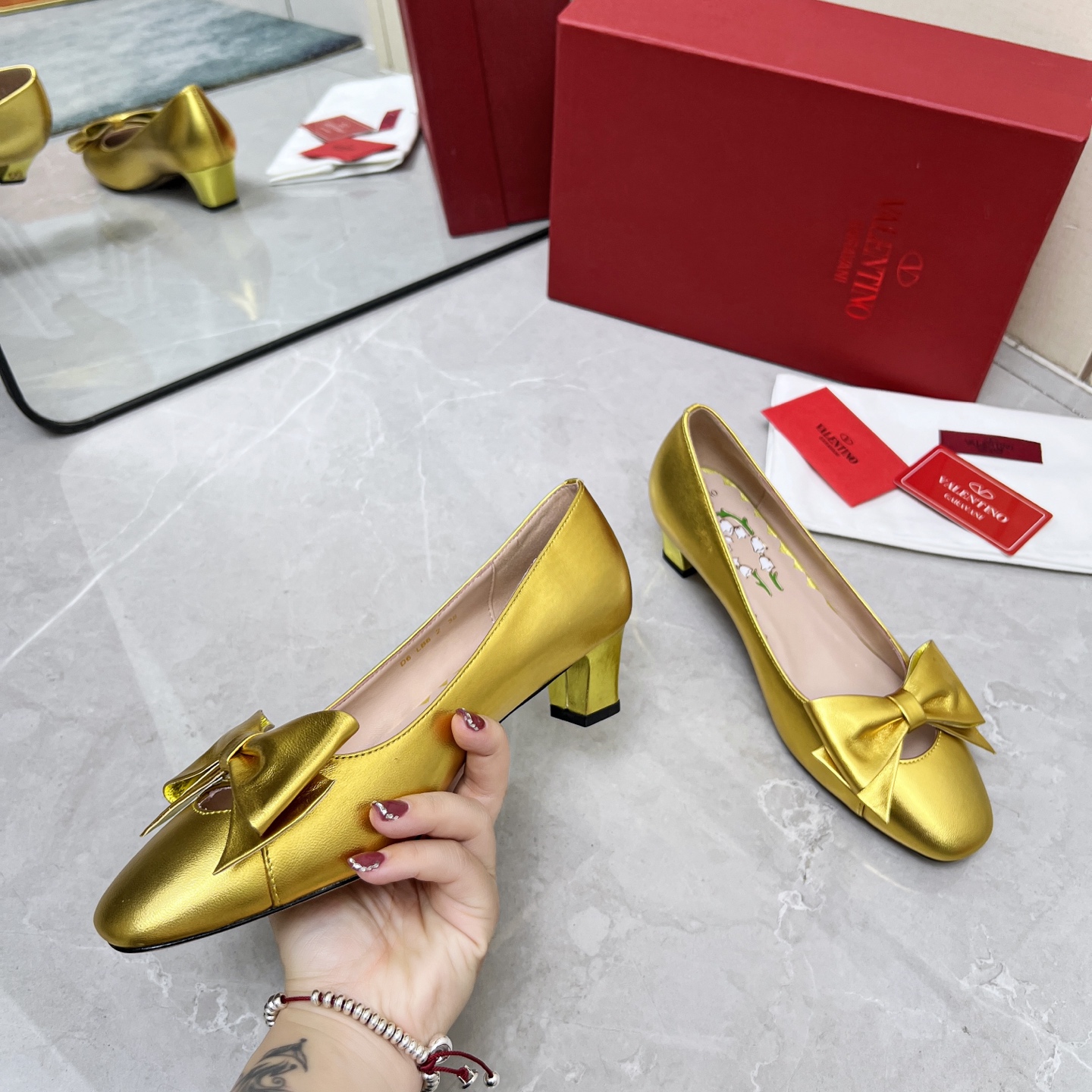 这款鞋子是AAAAA 1:1 质量 (非常棒). 使用了和原版一模一样的材料. 商标部分也保持了和华伦天奴/Valentino一样. 图片拍摄是实物鞋子拍摄, 您所收到的实物保证和我们图片一模一样.