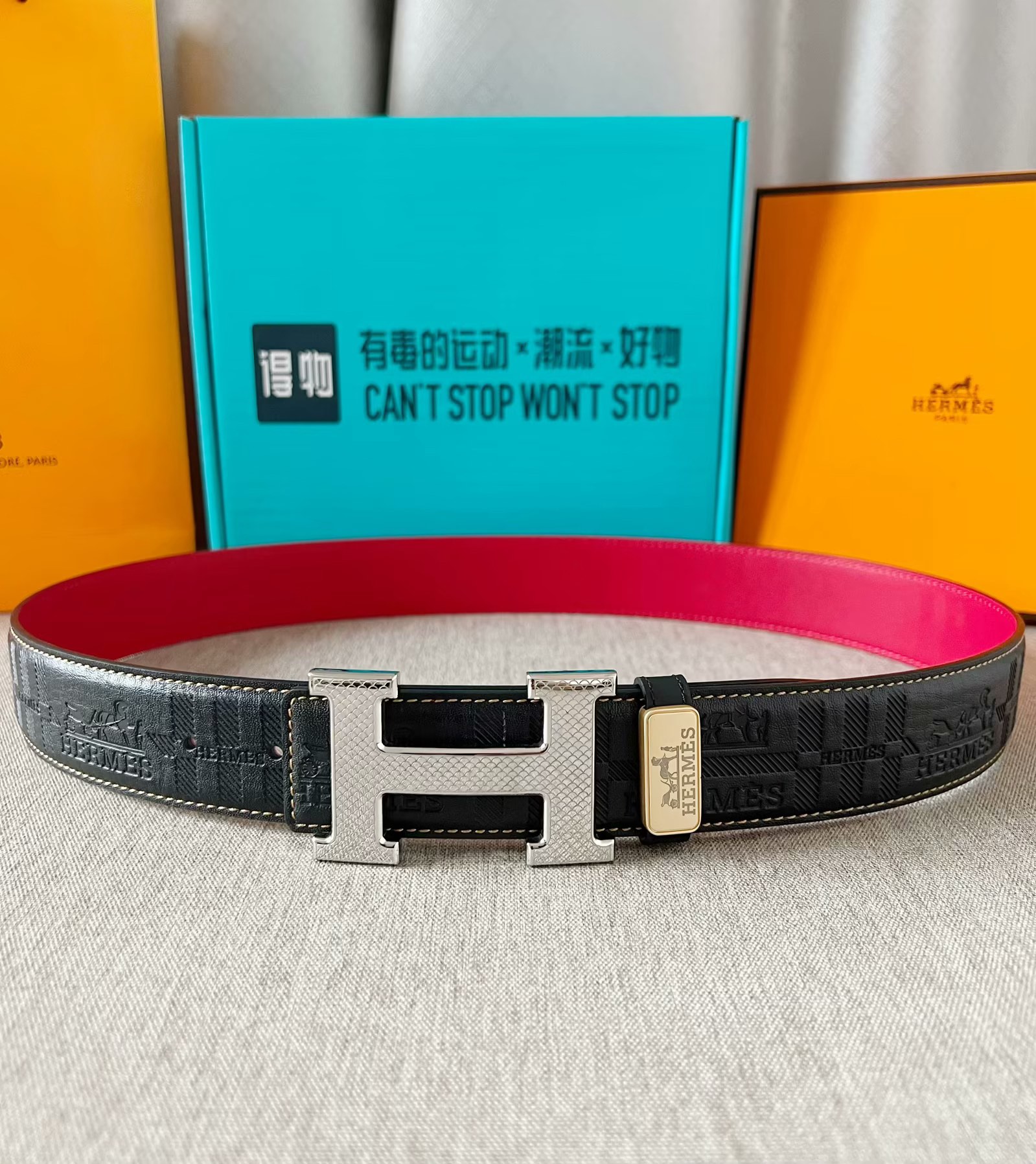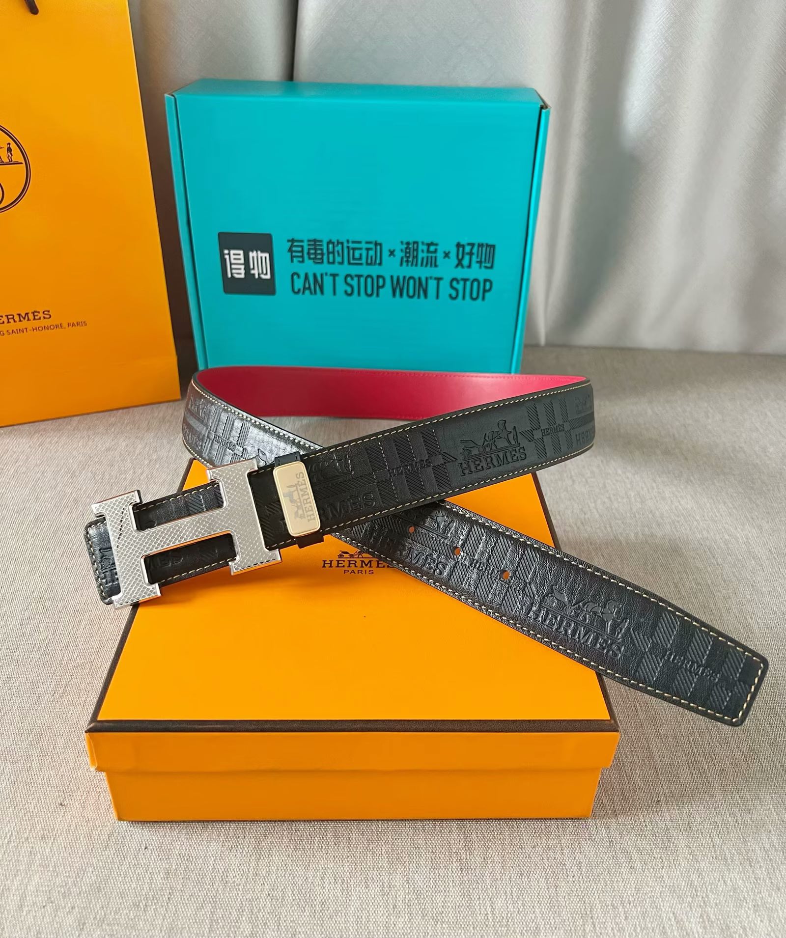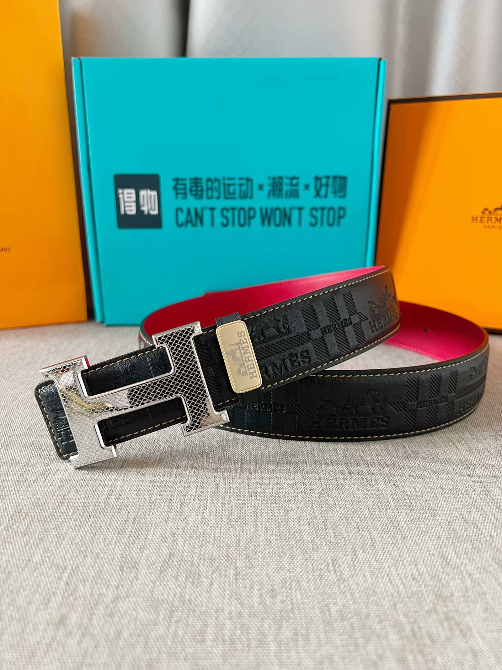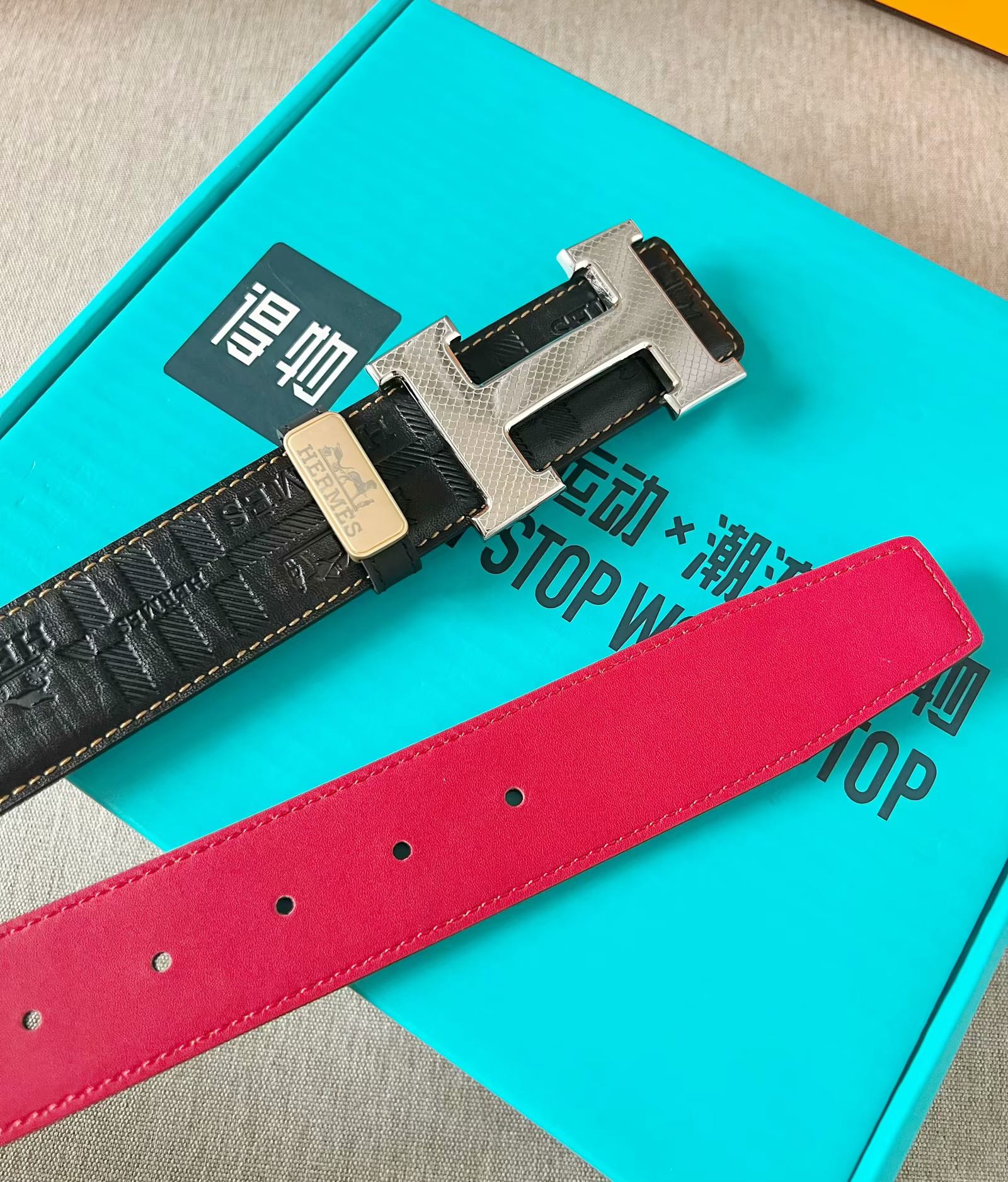 这款皮带是AAAAA 1:1 质量 (非常棒). 使用了和原版一模一样的材料. 商标部分也保持了和爱马仕/Hermes一样. 图片拍摄是实物皮带拍摄, 您所收到的实物保证和我们图片一模一样.