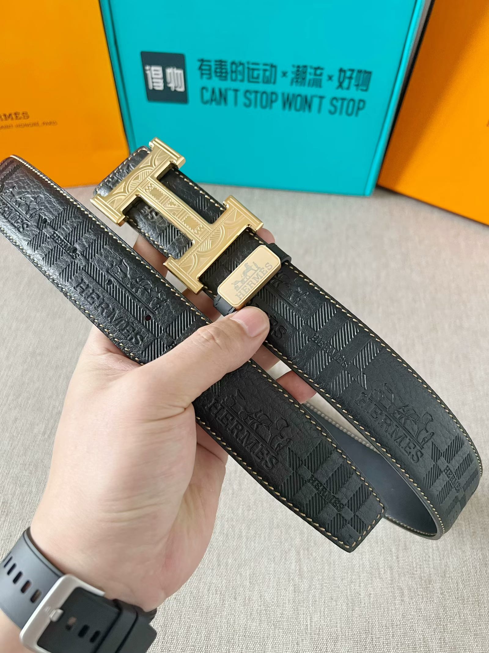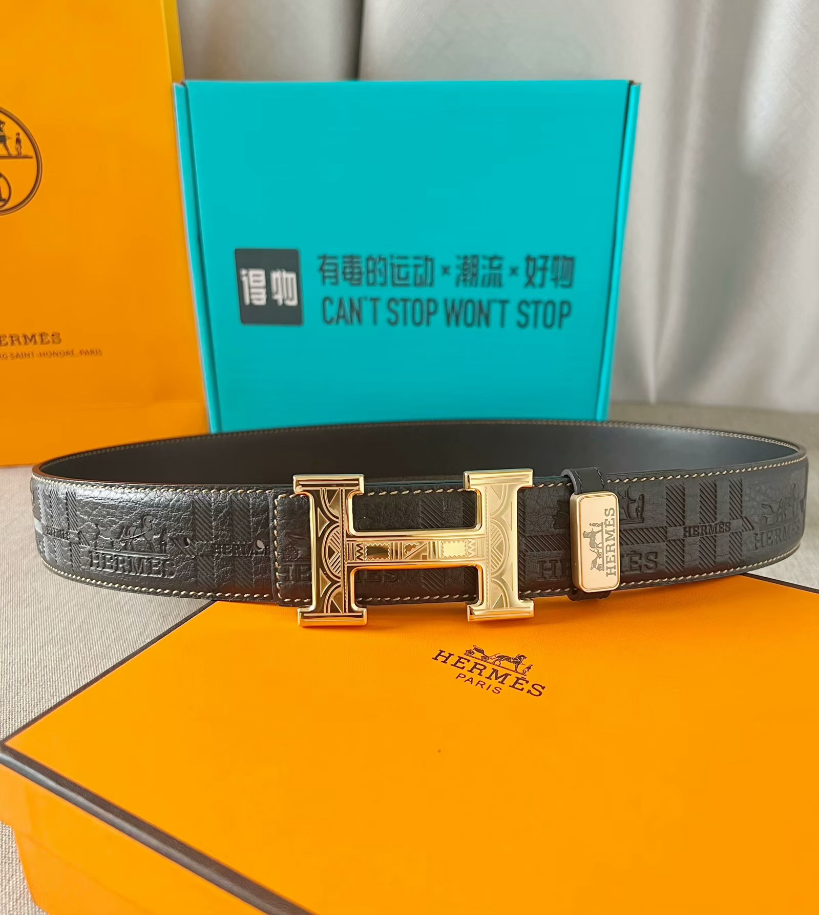 这款皮带是AAAAA 1:1 质量 (非常棒). 使用了和原版一模一样的材料. 商标部分也保持了和爱马仕/Hermes一样. 图片拍摄是实物皮带拍摄, 您所收到的实物保证和我们图片一模一样.