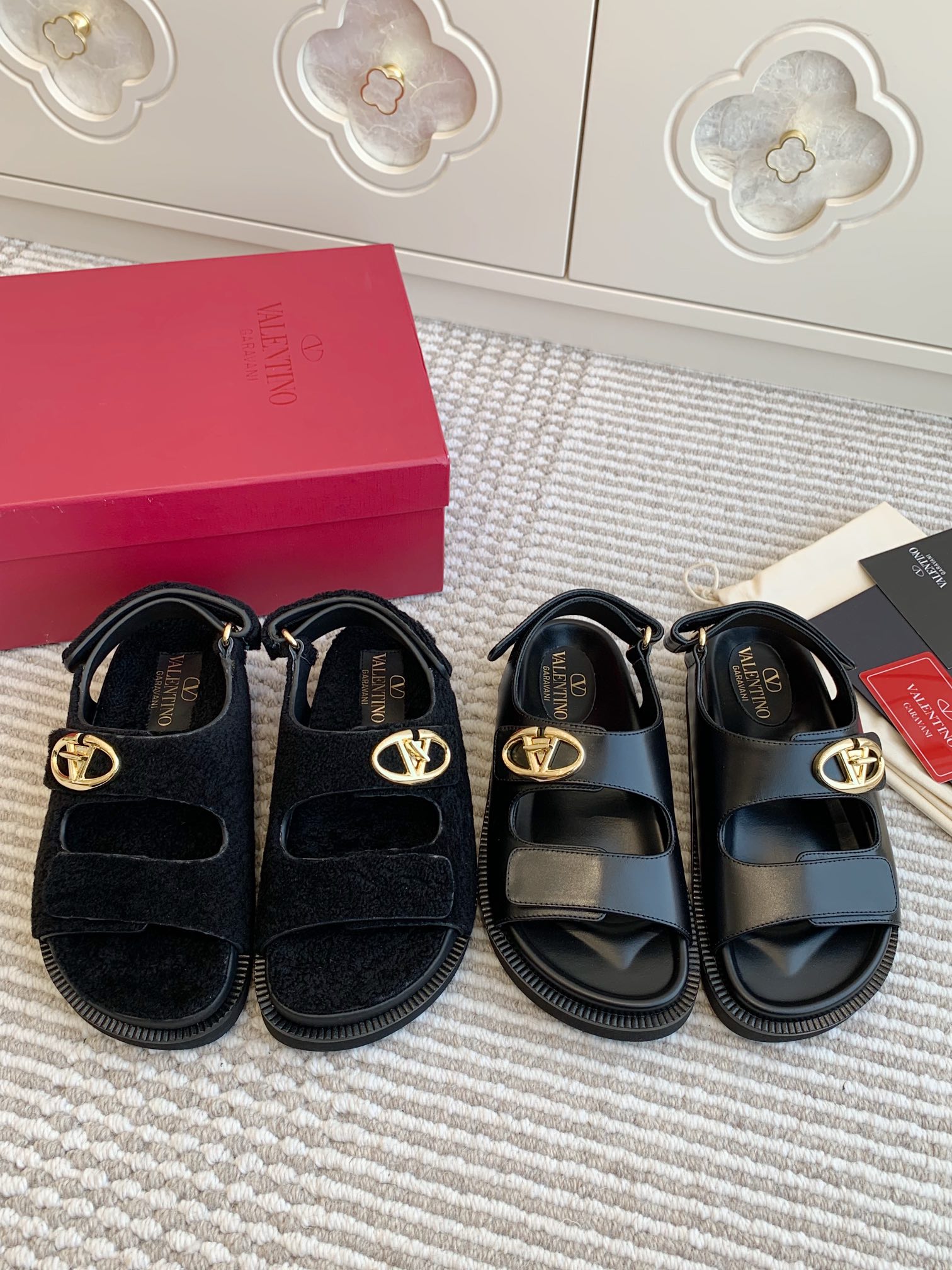 这款鞋子是AAAAA 1:1 质量 (非常棒). 使用了和原版一模一样的材料. 商标部分也保持了和华伦天奴/Valentino一样. 图片拍摄是实物鞋子拍摄, 您所收到的实物保证和我们图片一模一样.