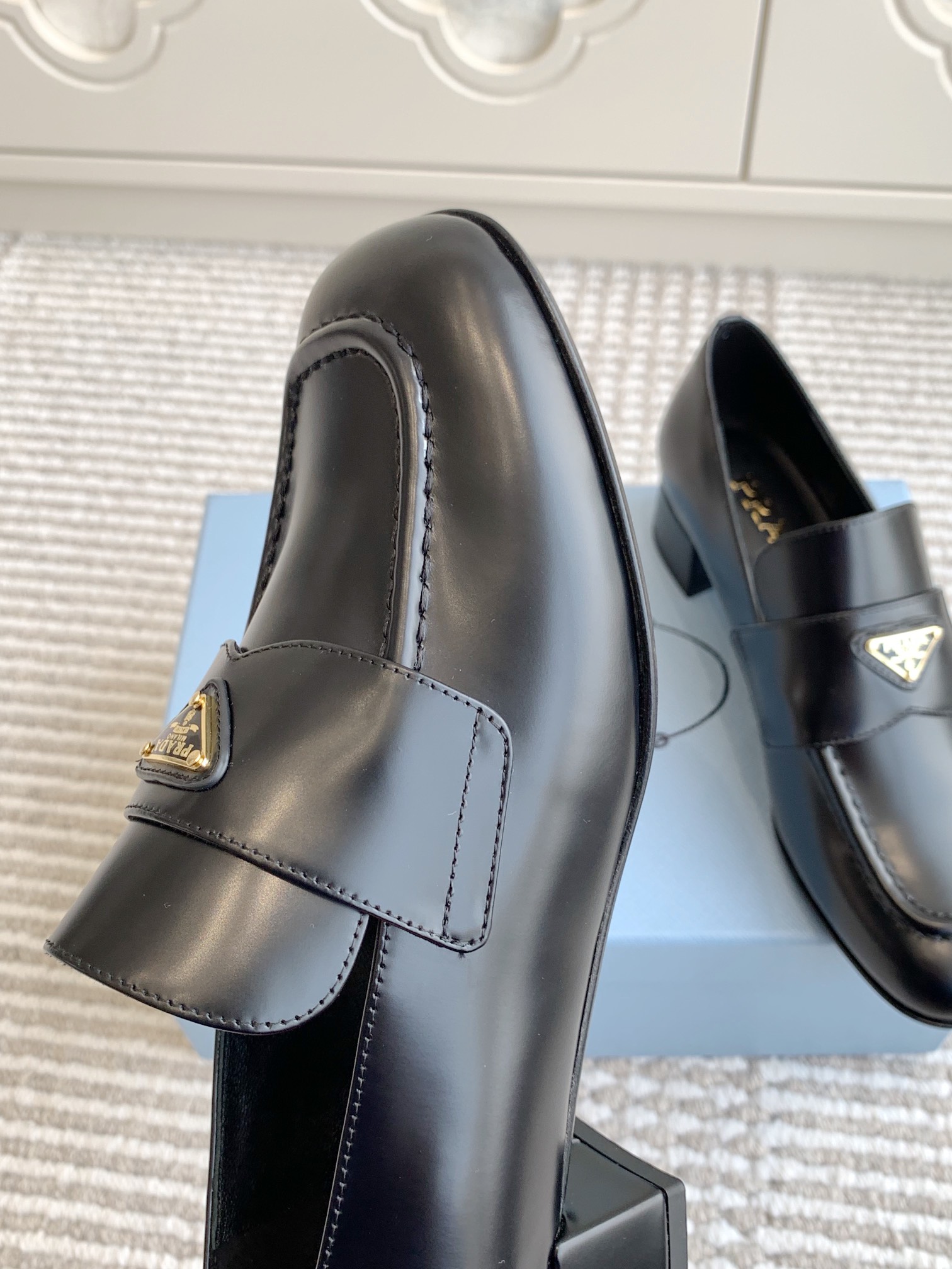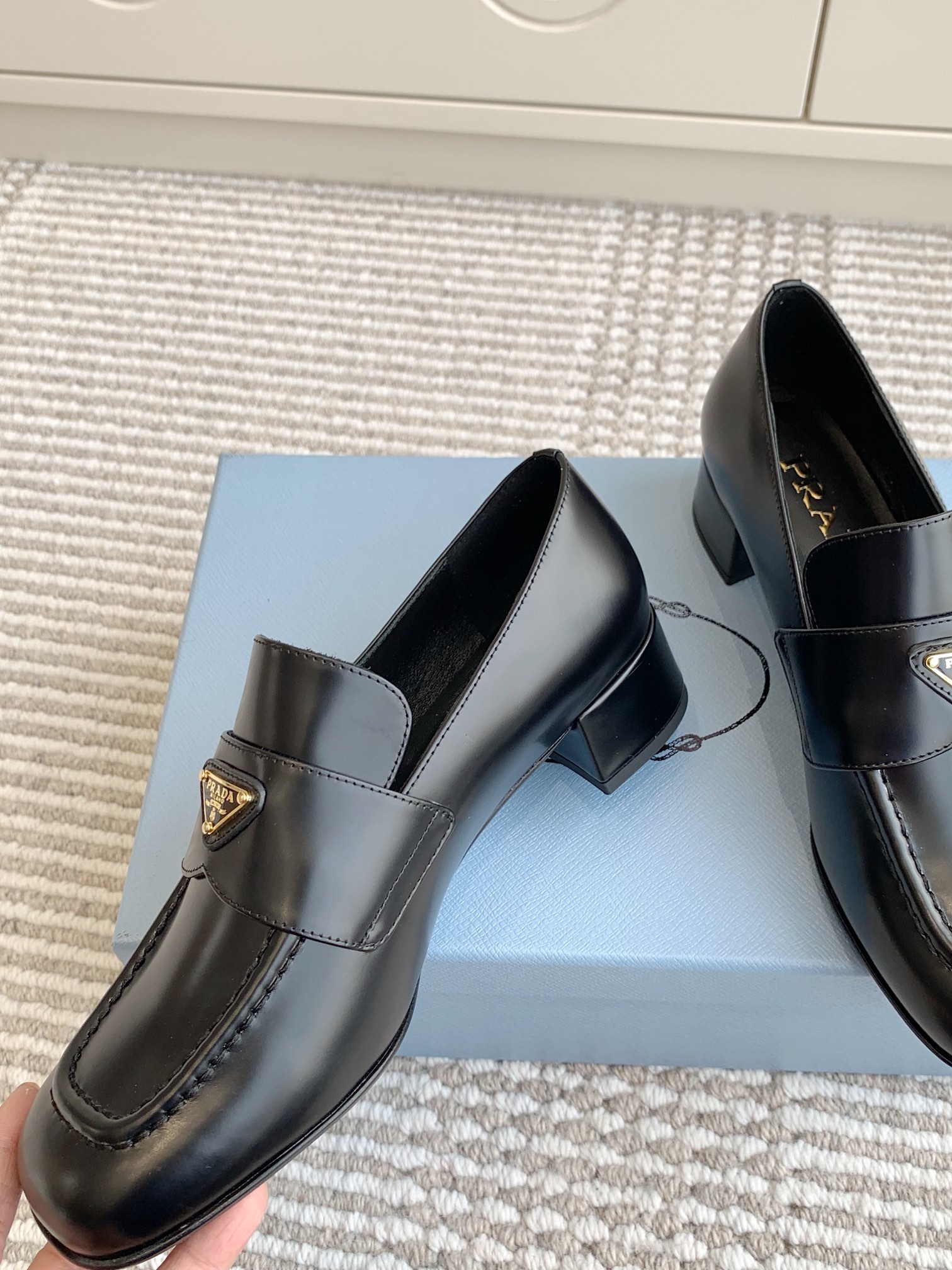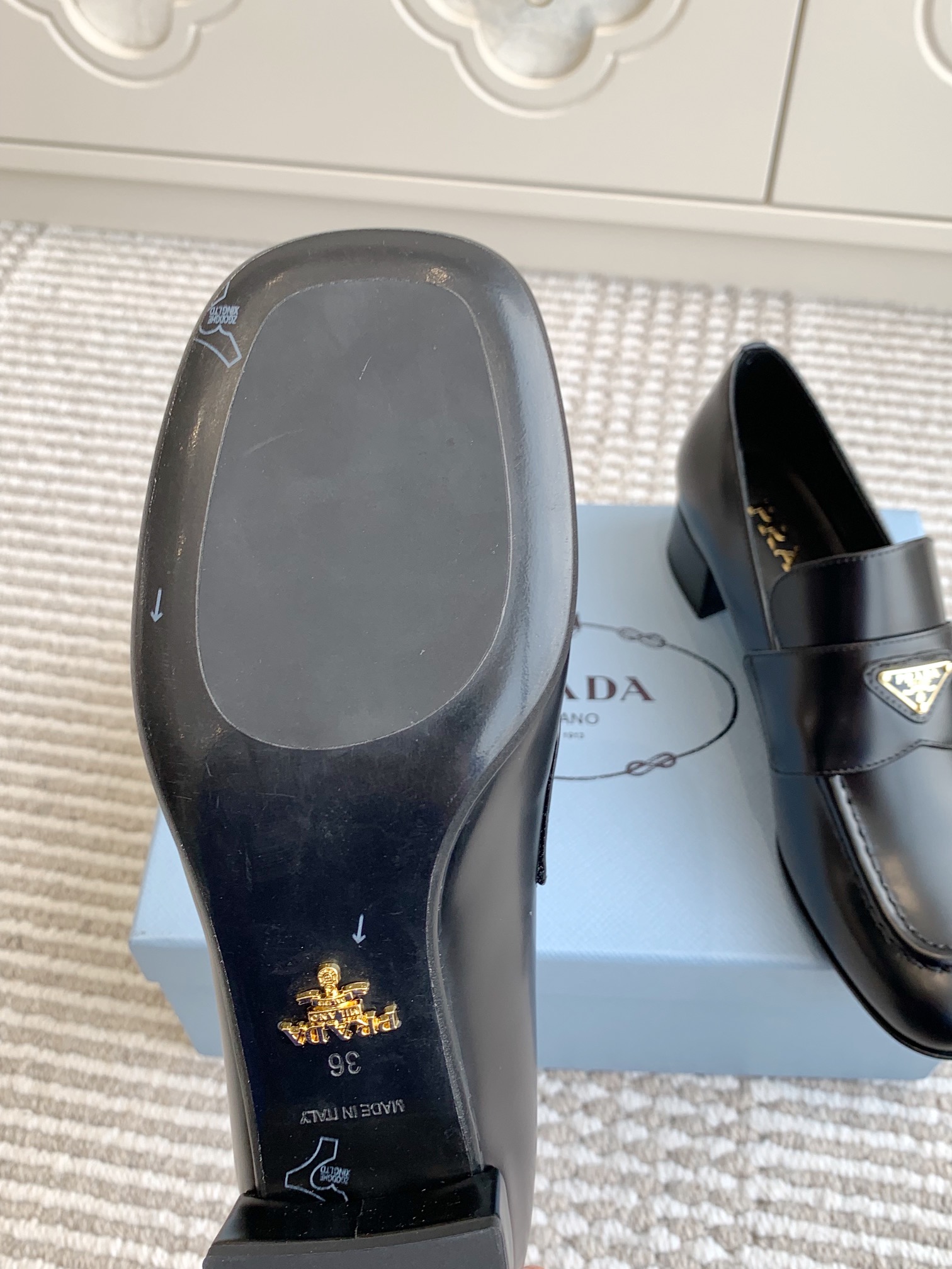这款鞋子是AAAAA 1:1 质量 (非常棒). 使用了和原版一模一样的材料. 商标部分也保持了和普拉达/Prada一样. 图片拍摄是实物鞋子拍摄, 您所收到的实物保证和我们图片一模一样.