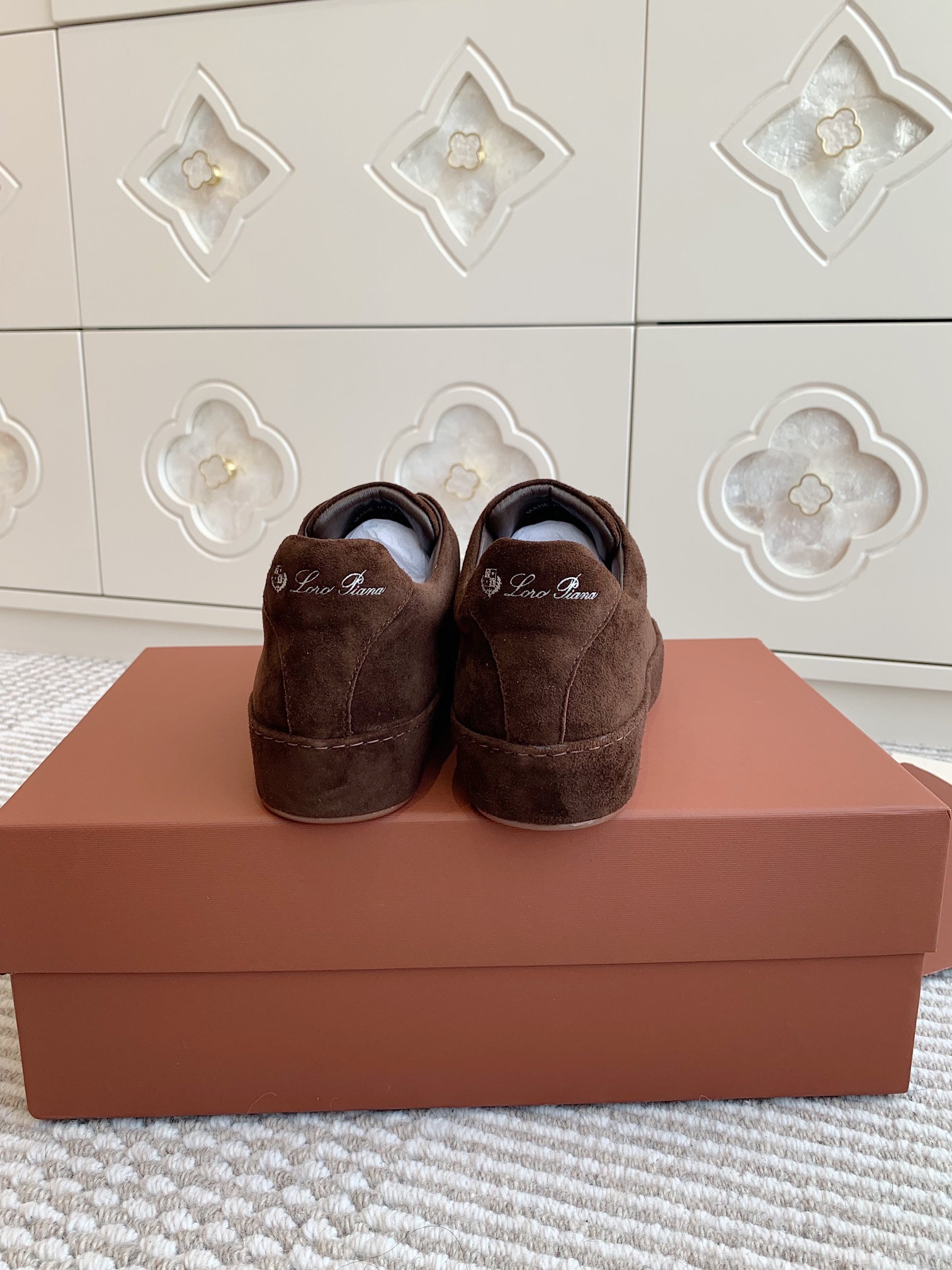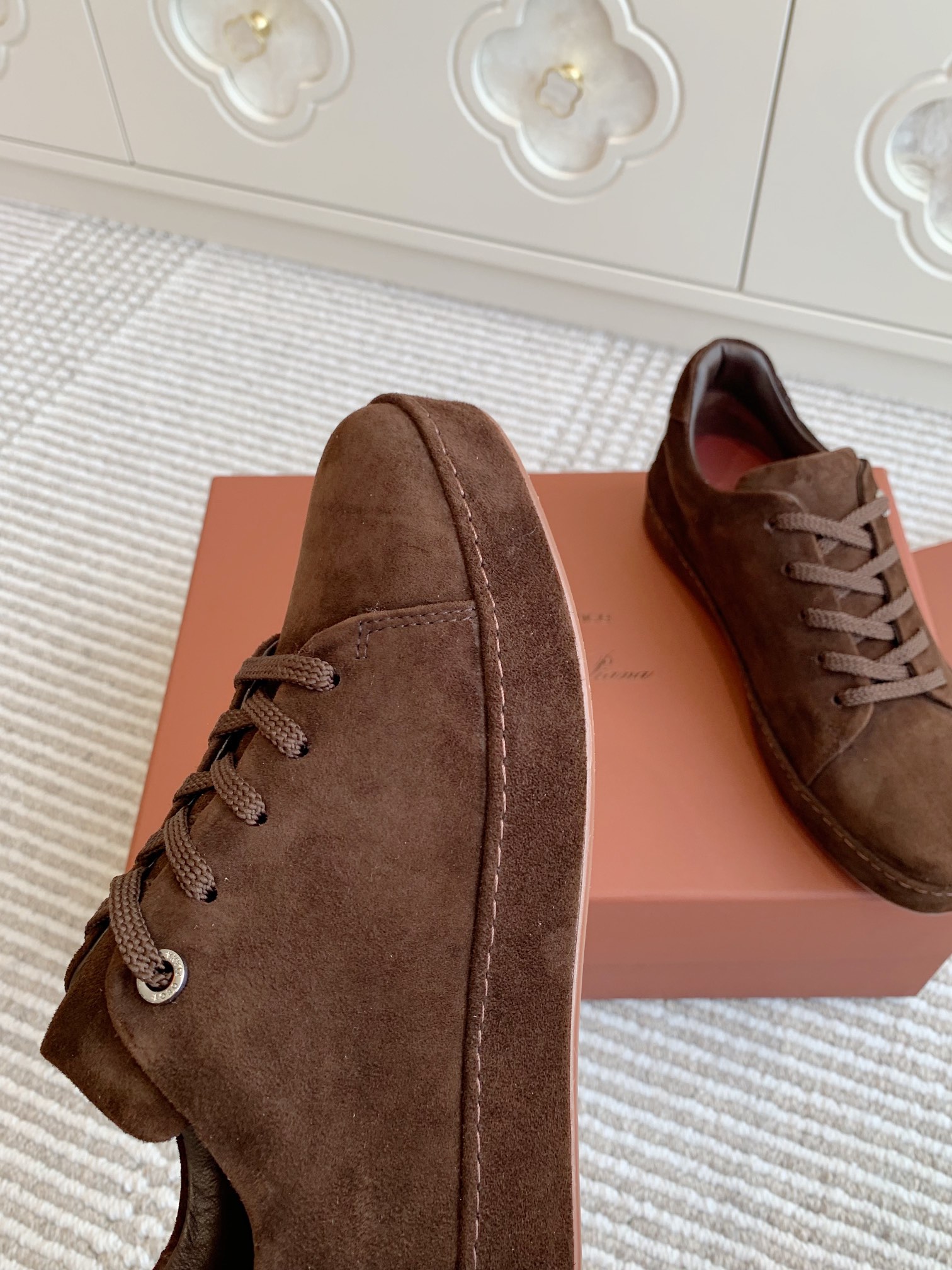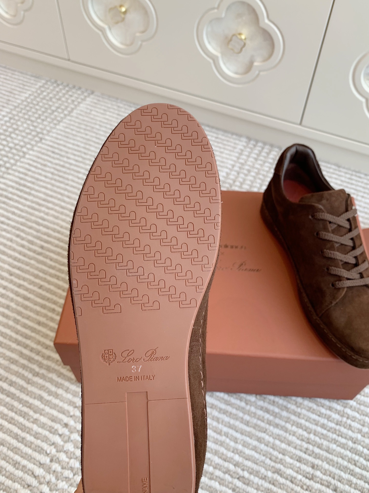 这款鞋子是AAAAA 1:1 质量 (非常棒). 使用了和原版一模一样的材料. 商标部分也保持了和洛罗皮亚纳/Loro Piana一样. 图片拍摄是实物鞋子拍摄, 您所收到的实物保证和我们图片一模一样.