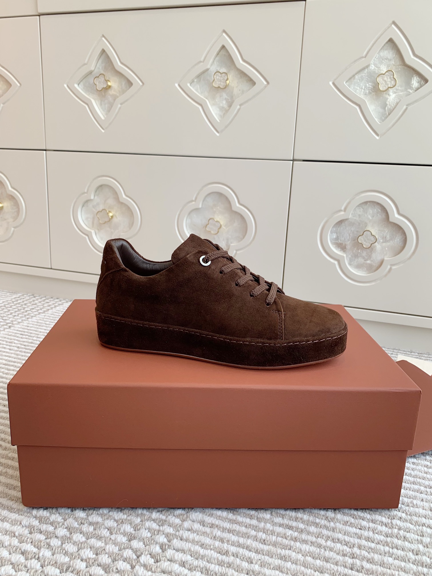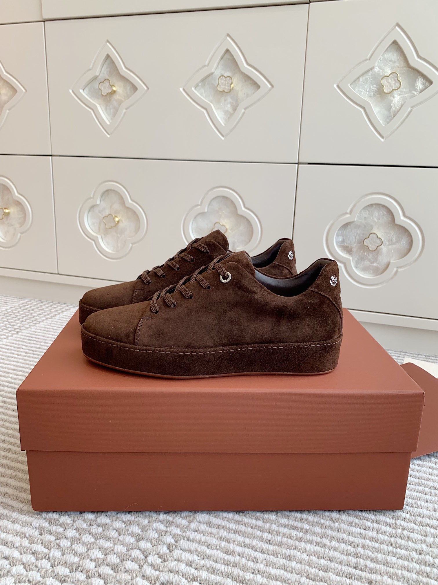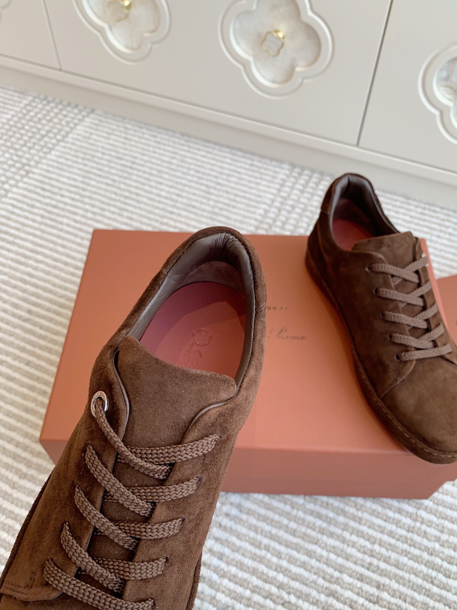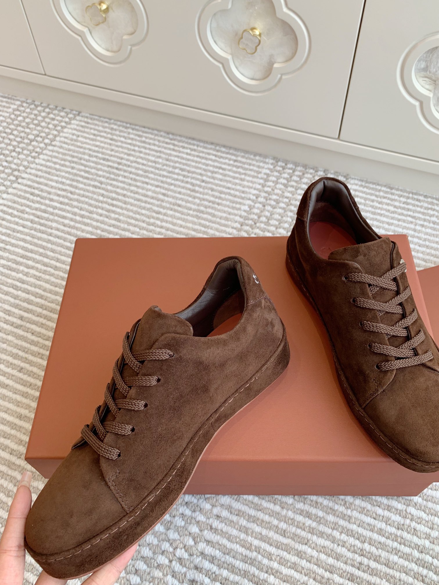这款鞋子是AAAAA 1:1 质量 (非常棒). 使用了和原版一模一样的材料. 商标部分也保持了和洛罗皮亚纳/Loro Piana一样. 图片拍摄是实物鞋子拍摄, 您所收到的实物保证和我们图片一模一样.