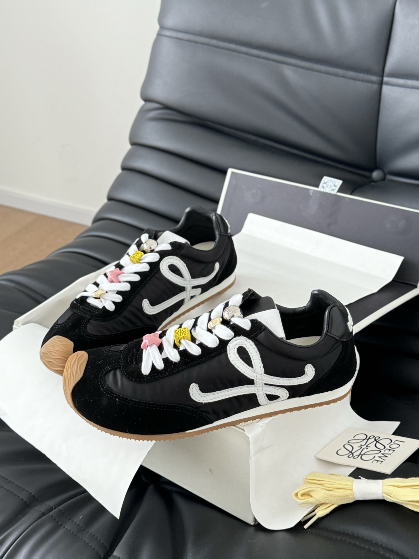 这款鞋子是AAAAA 1:1 质量 (非常棒). 使用了和原版一模一样的材料. 商标部分也保持了和罗意威/Loewe一样. 图片拍摄是实物鞋子拍摄, 您所收到的实物保证和我们图片一模一样.