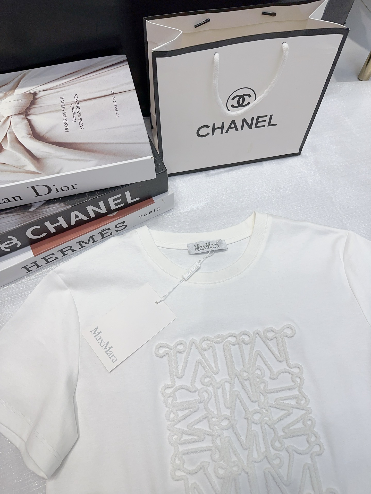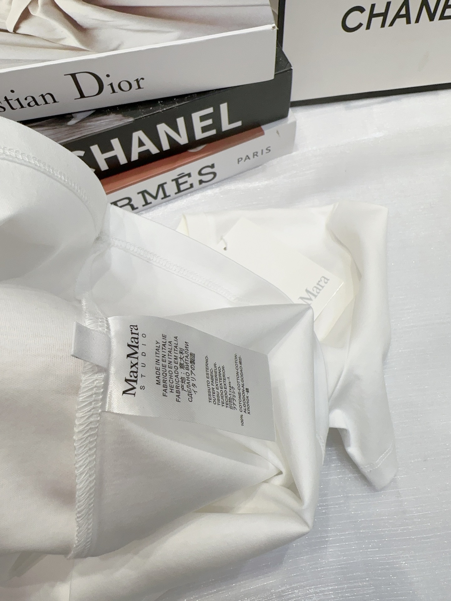 这款衣服是AAAAA 1:1 质量 (非常棒). 使用了和原版一模一样的材料. 商标部分也保持了和Max Mara一样. 图片拍摄是实物衣服拍摄, 您所收到的实物保证和我们图片一模一样.