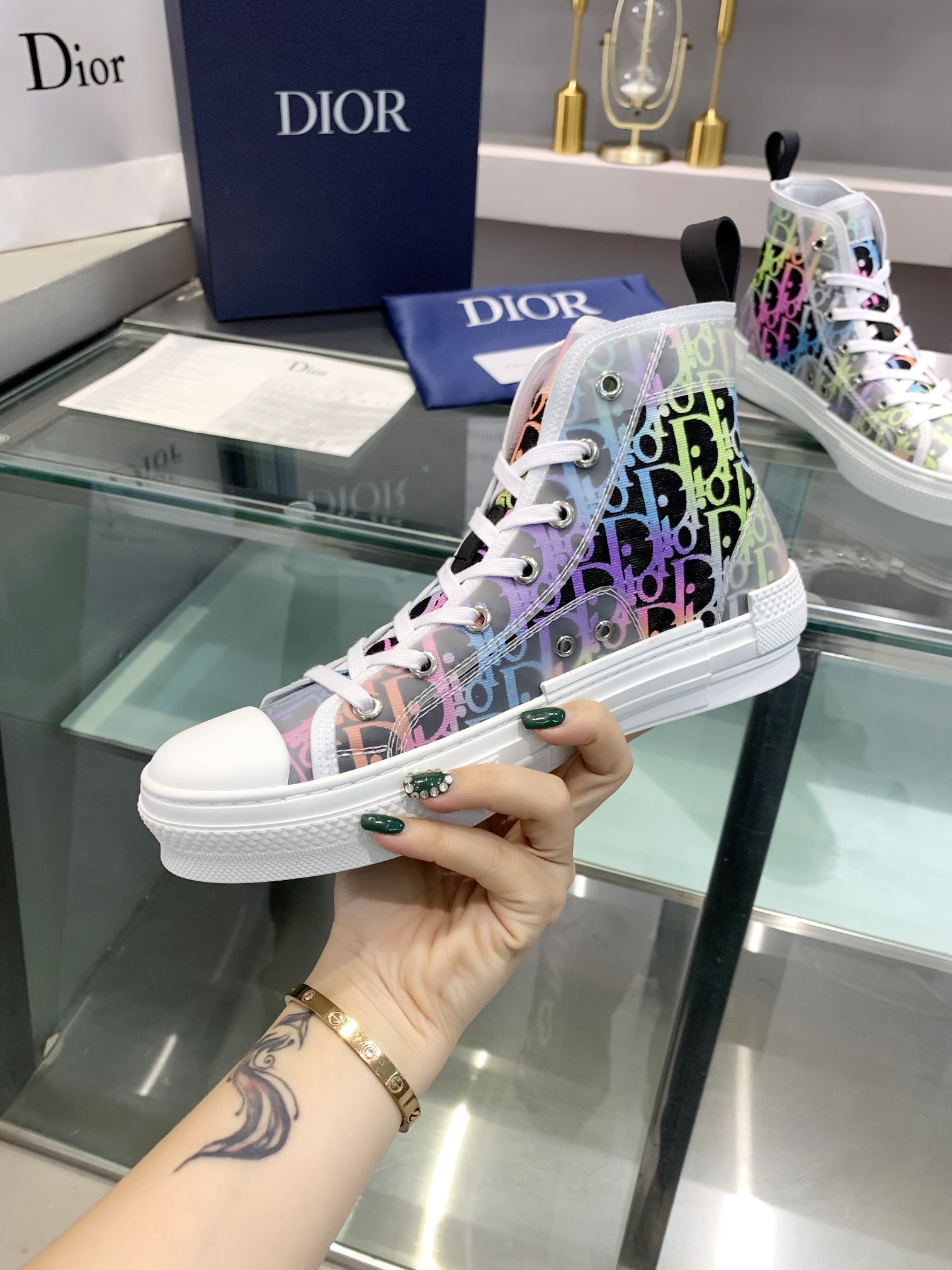 这款鞋子是AAAAA 1:1 质量 (非常棒). 使用了和原版一模一样的材料. 商标部分也保持了和迪奥/Dior一样. 图片拍摄是实物鞋子拍摄, 您所收到的实物保证和我们图片一模一样.