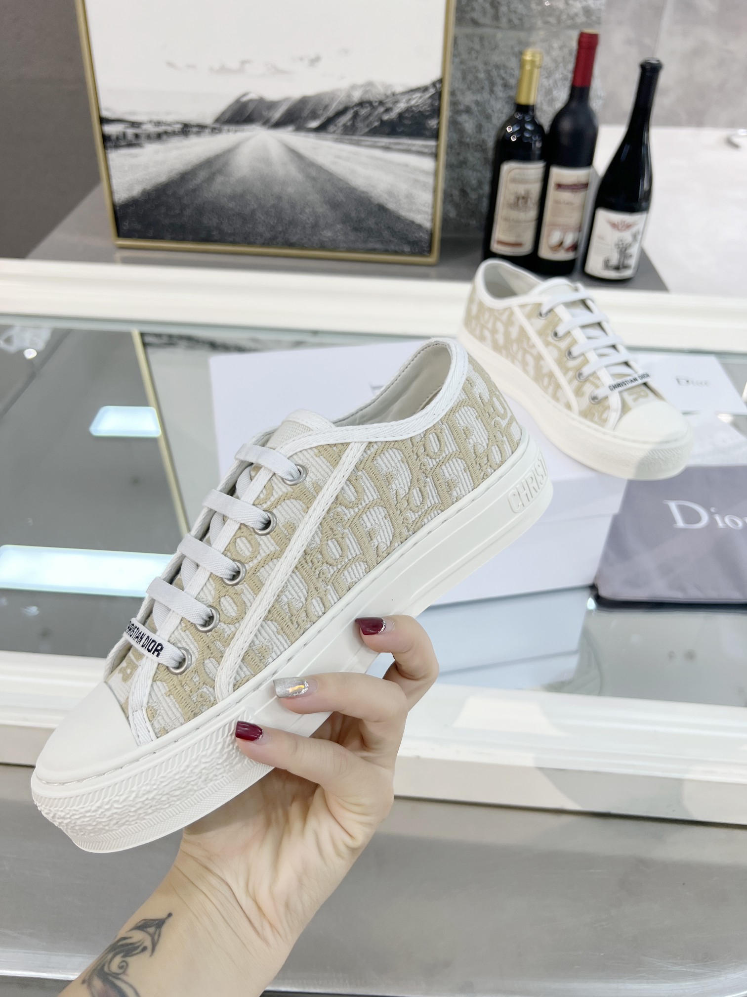 这款鞋子是AAAAA 1:1 质量 (非常棒). 使用了和原版一模一样的材料. 商标部分也保持了和迪奥/Dior一样. 图片拍摄是实物鞋子拍摄, 您所收到的实物保证和我们图片一模一样.