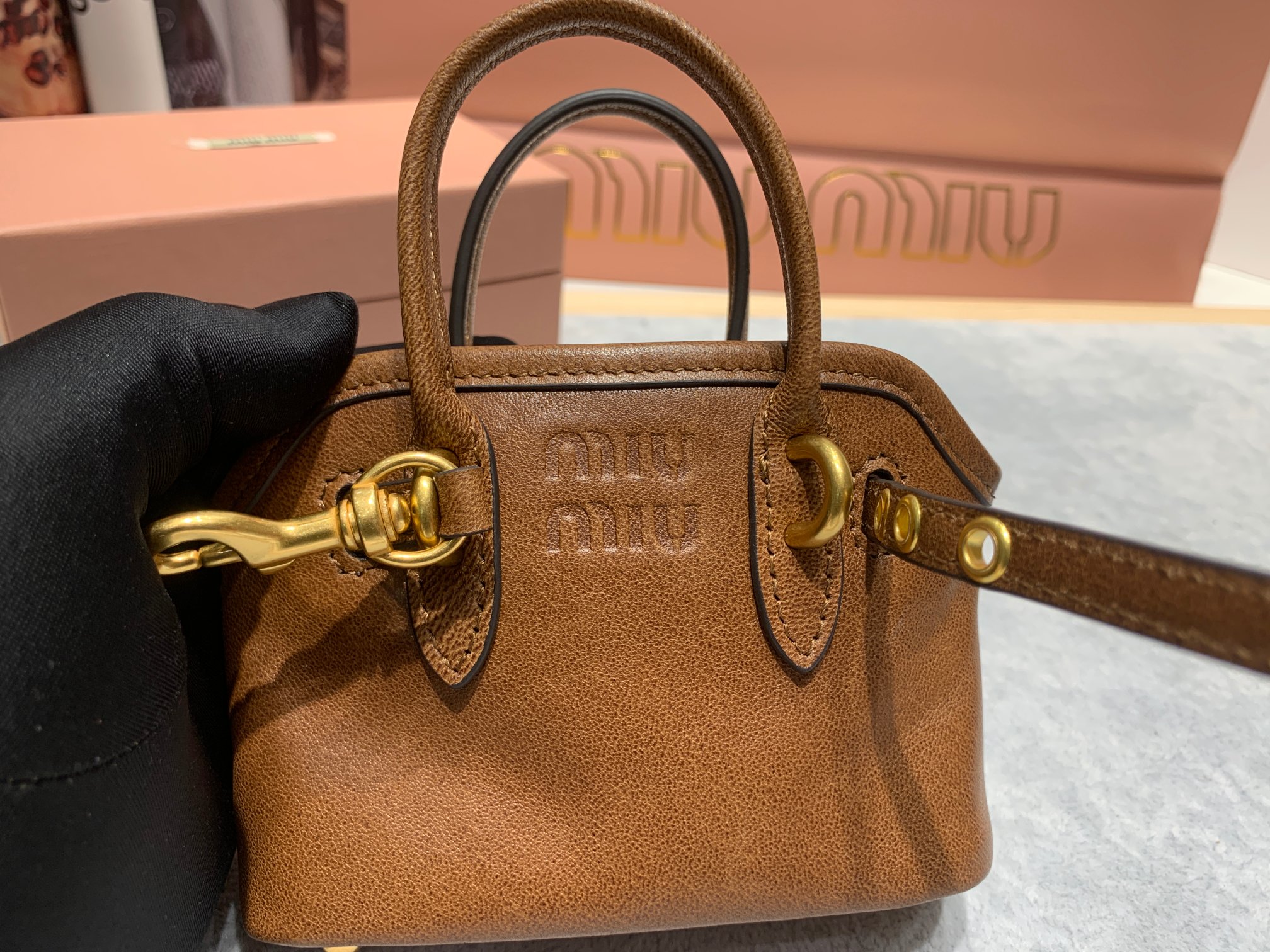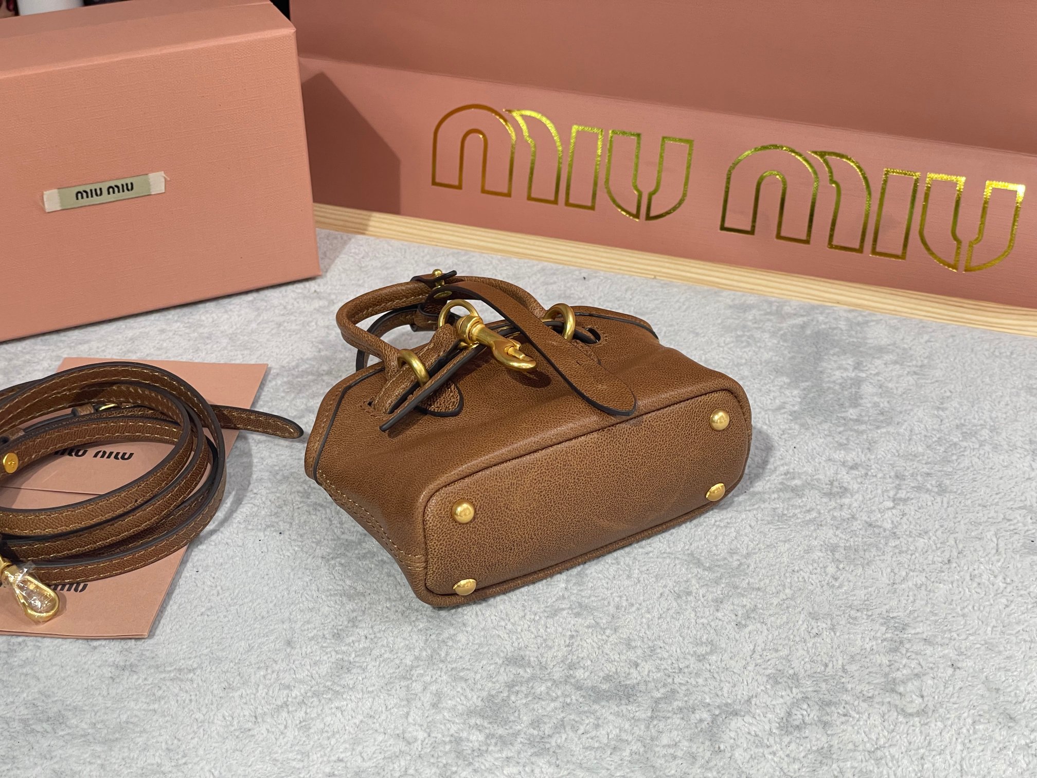 这款配件是AAAAA 1:1 质量 (非常棒). 使用了和原版一模一样的材料. 商标部分也保持了和缪缪/Miu Miu一样. 图片拍摄是实物配件拍摄, 您所收到的实物保证和我们图片一模一样.
