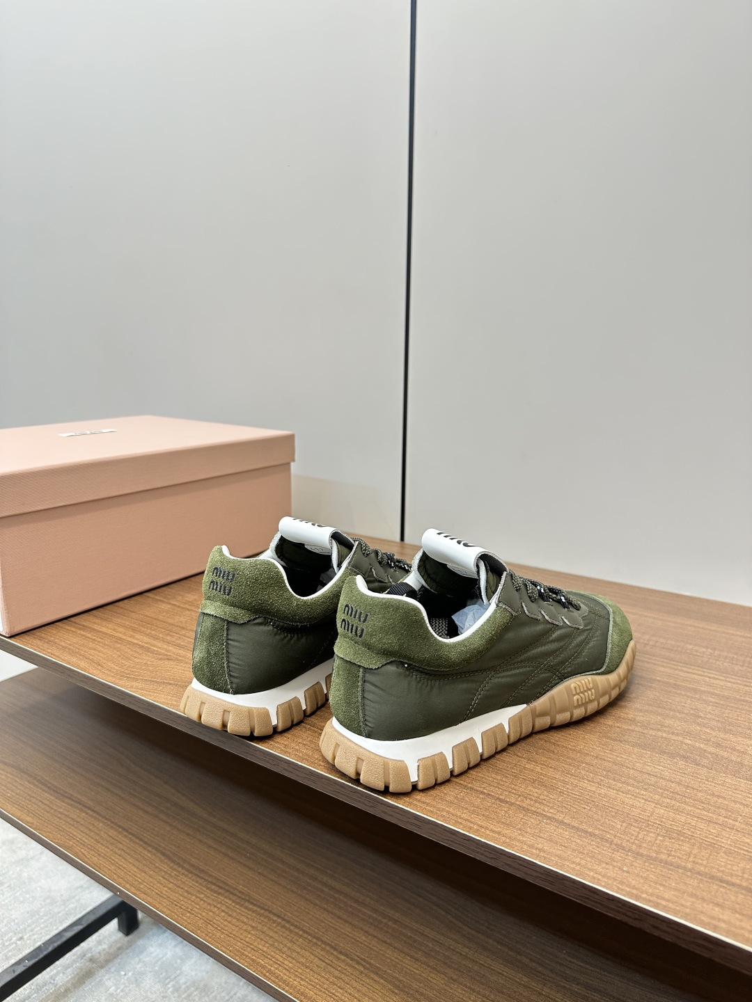 这款鞋子是AAAAA 1:1 质量 (非常棒). 使用了和原版一模一样的材料. 商标部分也保持了和缪缪/Miu Miu一样. 图片拍摄是实物鞋子拍摄, 您所收到的实物保证和我们图片一模一样.