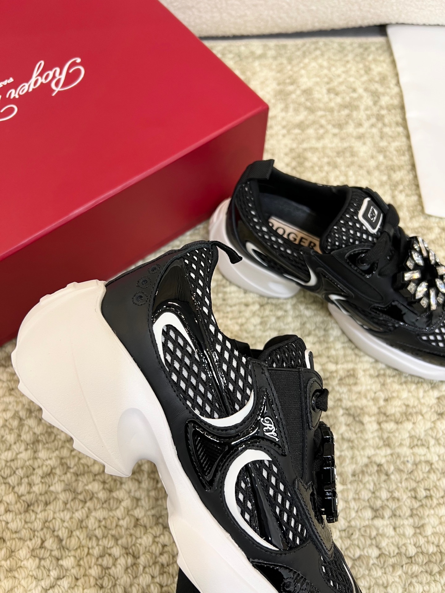 这款鞋子是AAAAA 1:1 质量 (非常棒). 使用了和原版一模一样的材料. 商标部分也保持了和罗杰维维耶/Roger Vivier一样. 图片拍摄是实物鞋子拍摄, 您所收到的实物保证和我们图片一模一样.