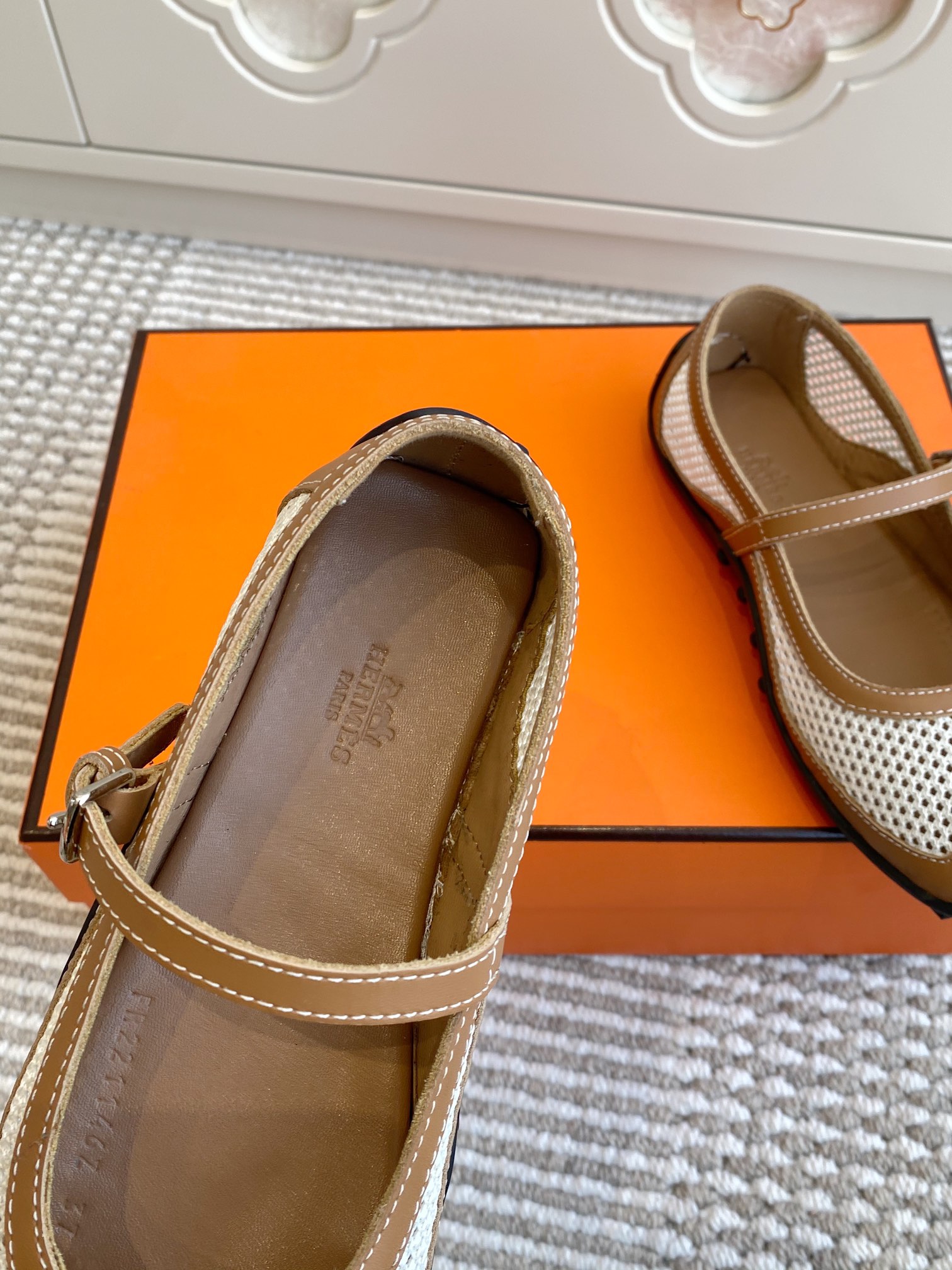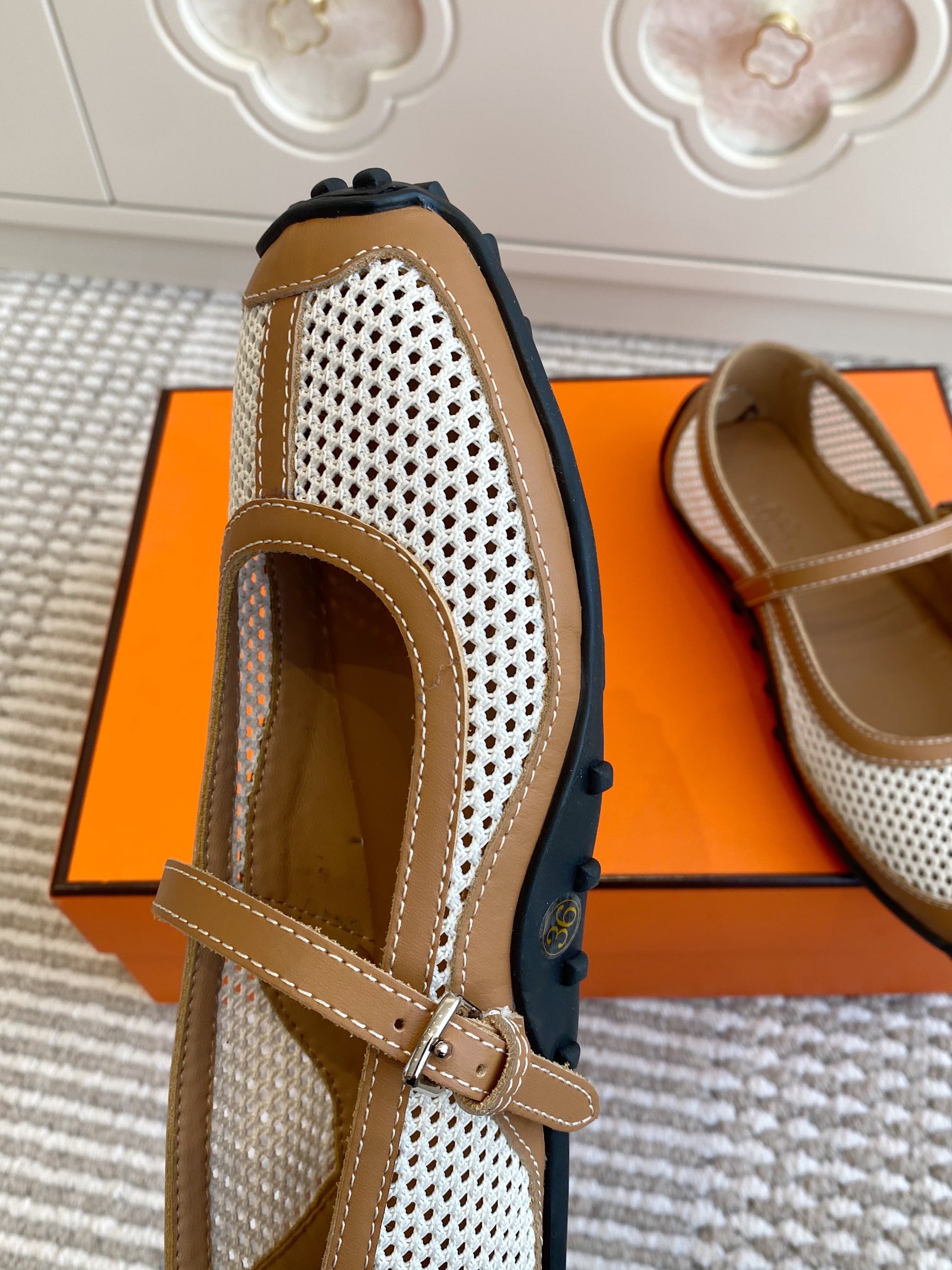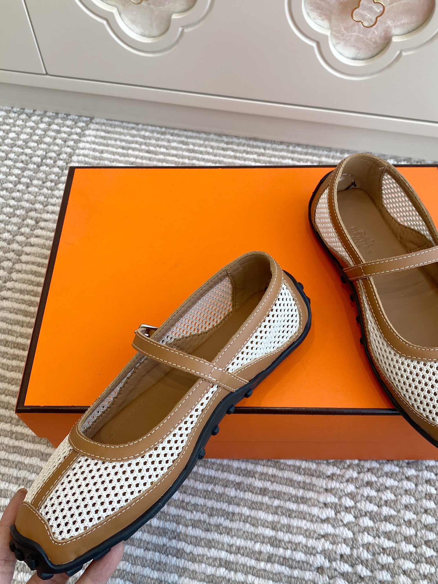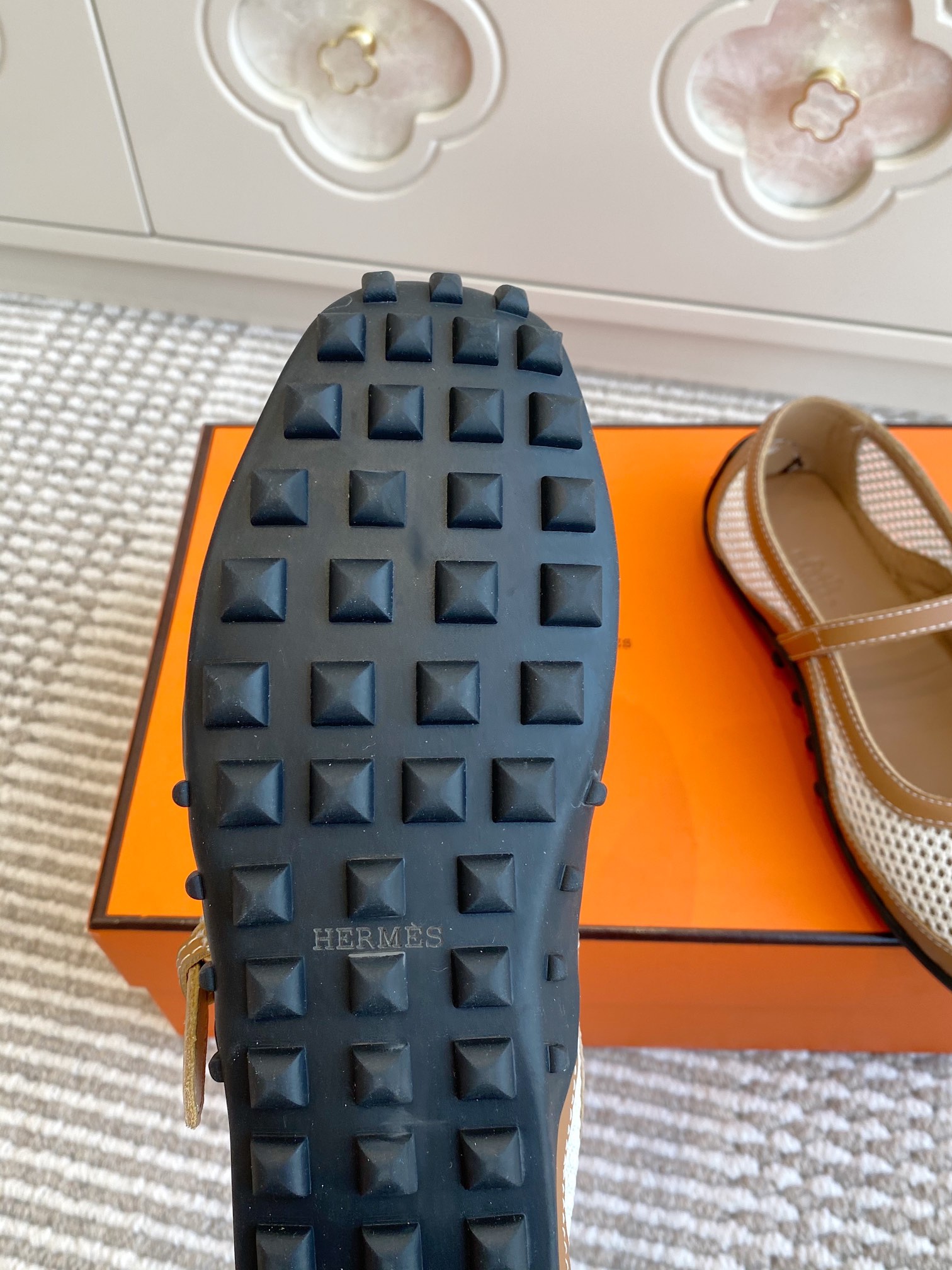 这款鞋子是AAAAA 1:1 质量 (非常棒). 使用了和原版一模一样的材料. 商标部分也保持了和爱马仕/Hermes一样. 图片拍摄是实物鞋子拍摄, 您所收到的实物保证和我们图片一模一样.