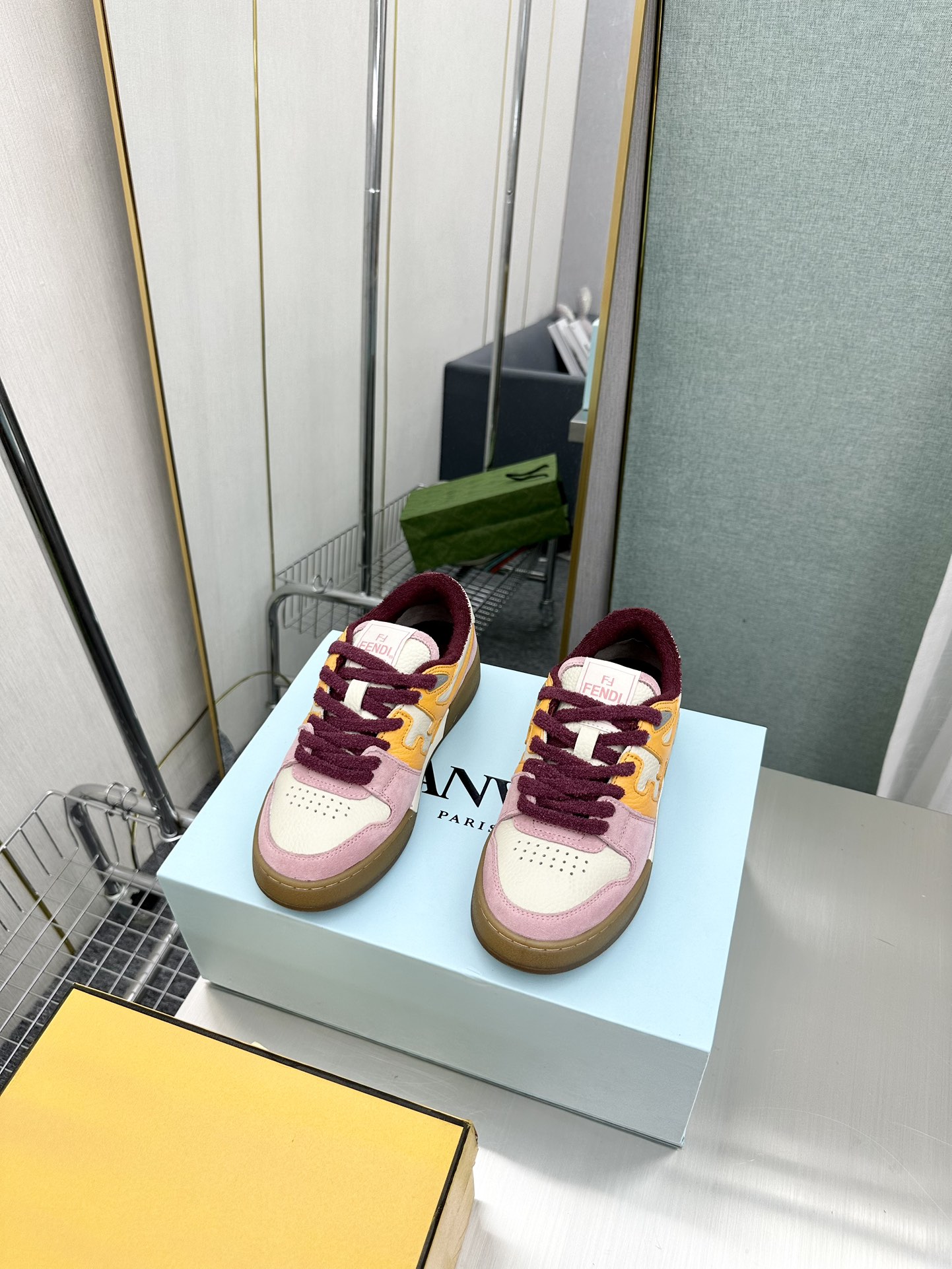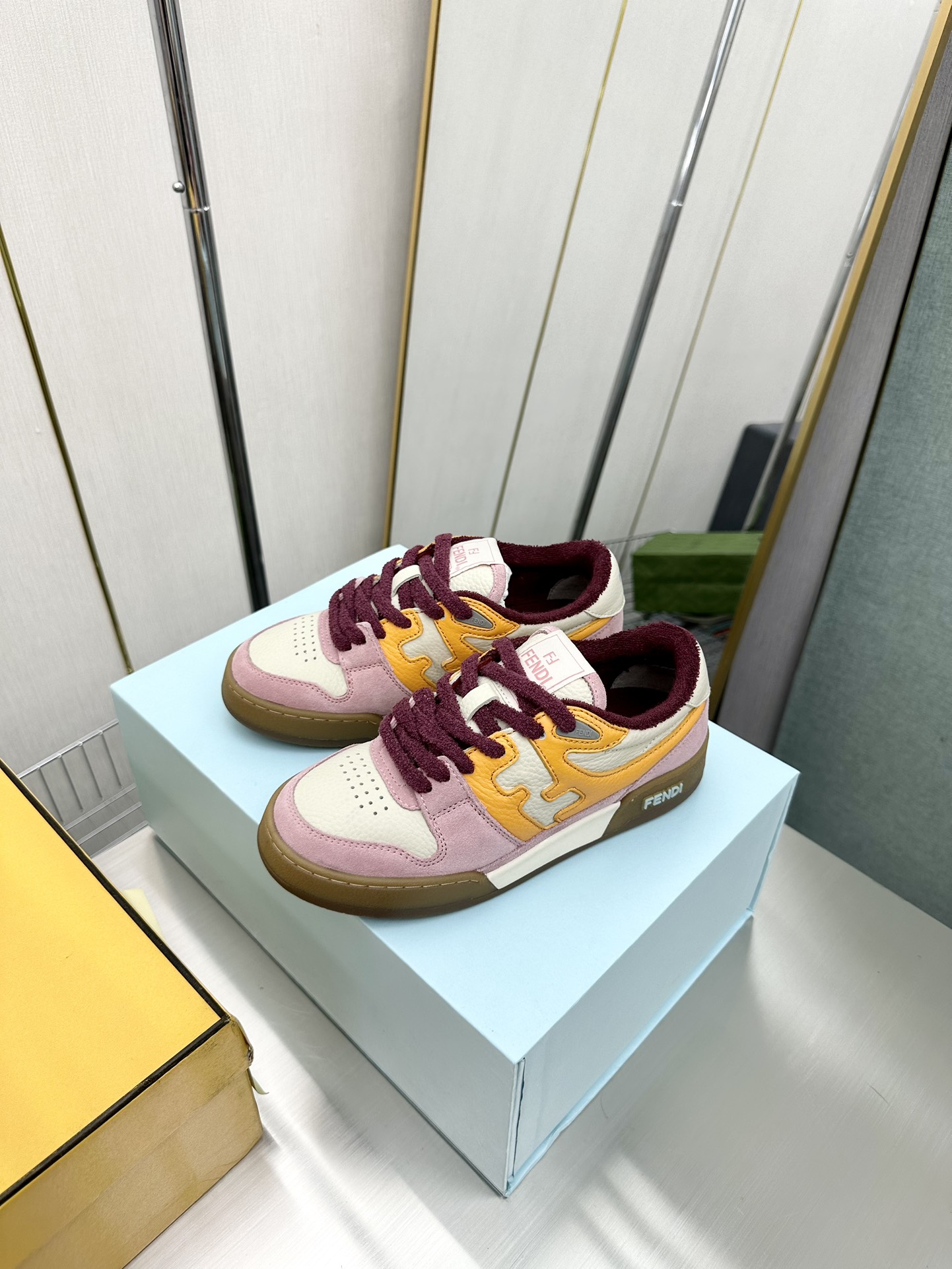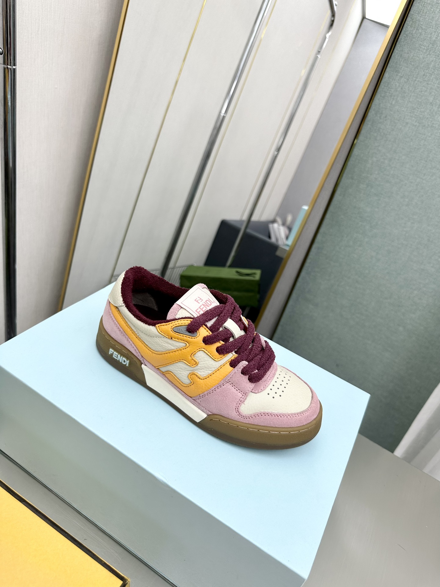 这款鞋子是AAAAA 1:1 质量 (非常棒). 使用了和原版一模一样的材料. 商标部分也保持了和芬迪/Fendi一样. 图片拍摄是实物鞋子拍摄, 您所收到的实物保证和我们图片一模一样.