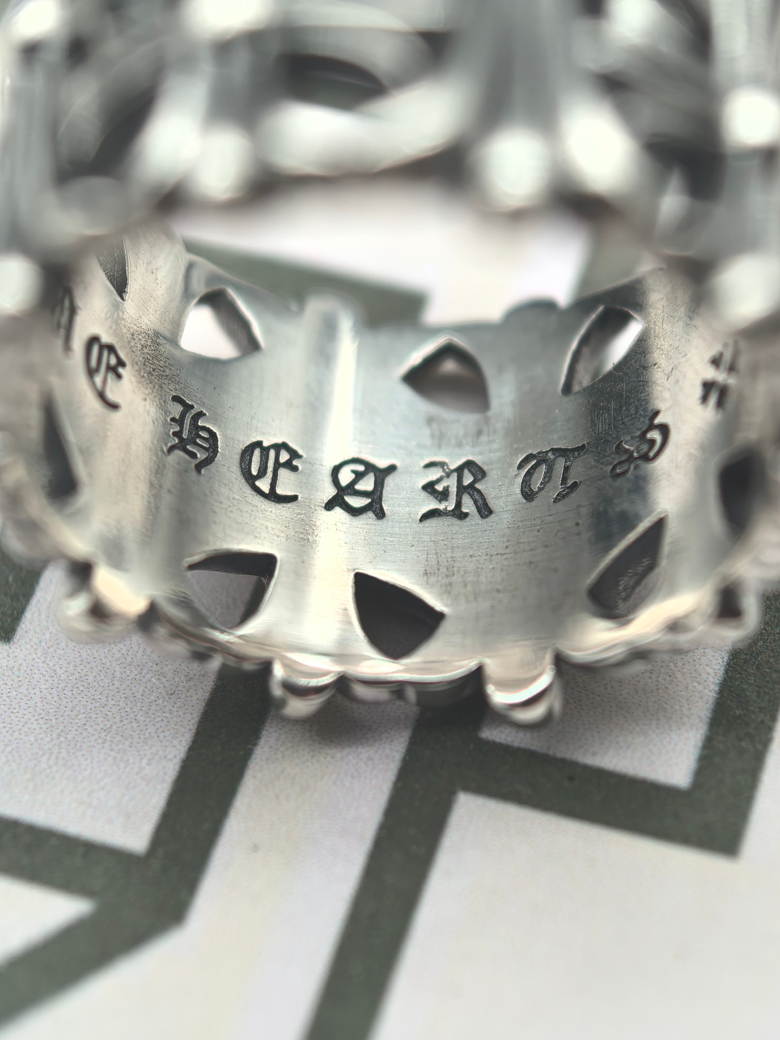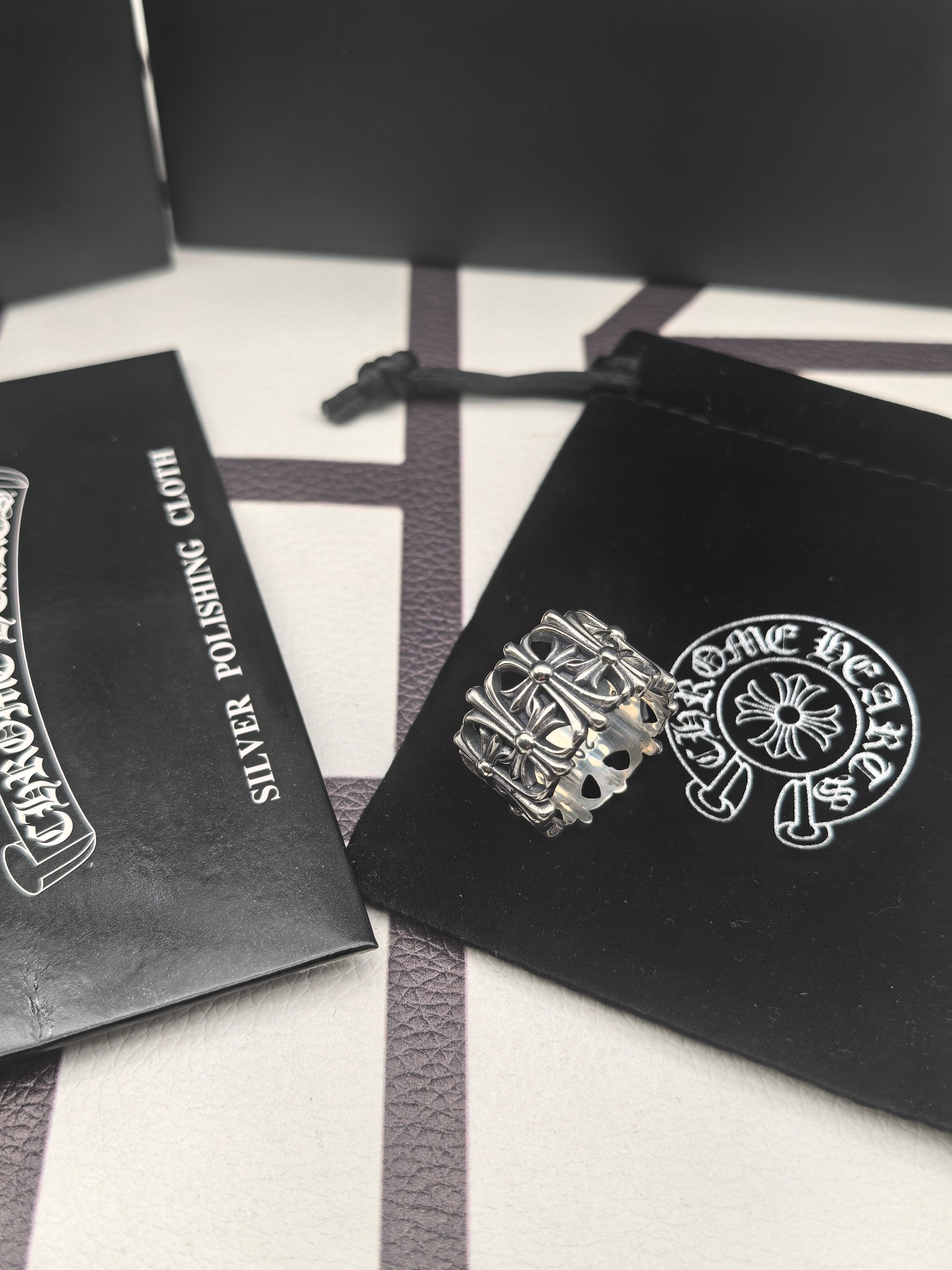 这款首饰是AAAAA 1:1 质量 (非常棒). 使用了和原版一模一样的材料. 商标部分也保持了和克罗心/Chrome Hearts一样. 图片拍摄是实物首饰拍摄, 您所收到的实物保证和我们图片一模一样.