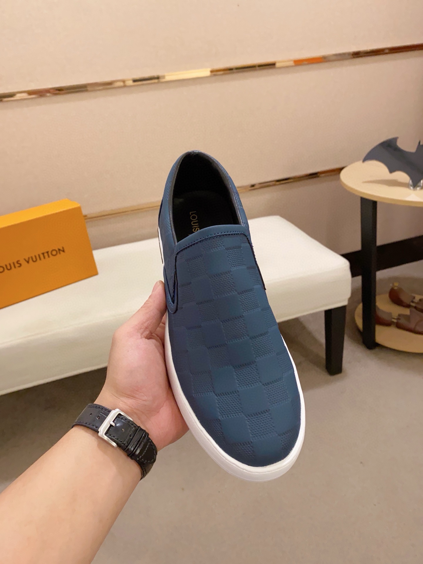 这款鞋子是AAAAA 1:1 质量 (非常棒). 使用了和原版一模一样的材料. 商标部分也保持了和路易威登/Louis Vuitton一样. 图片拍摄是实物鞋子拍摄, 您所收到的实物保证和我们图片一模一样.