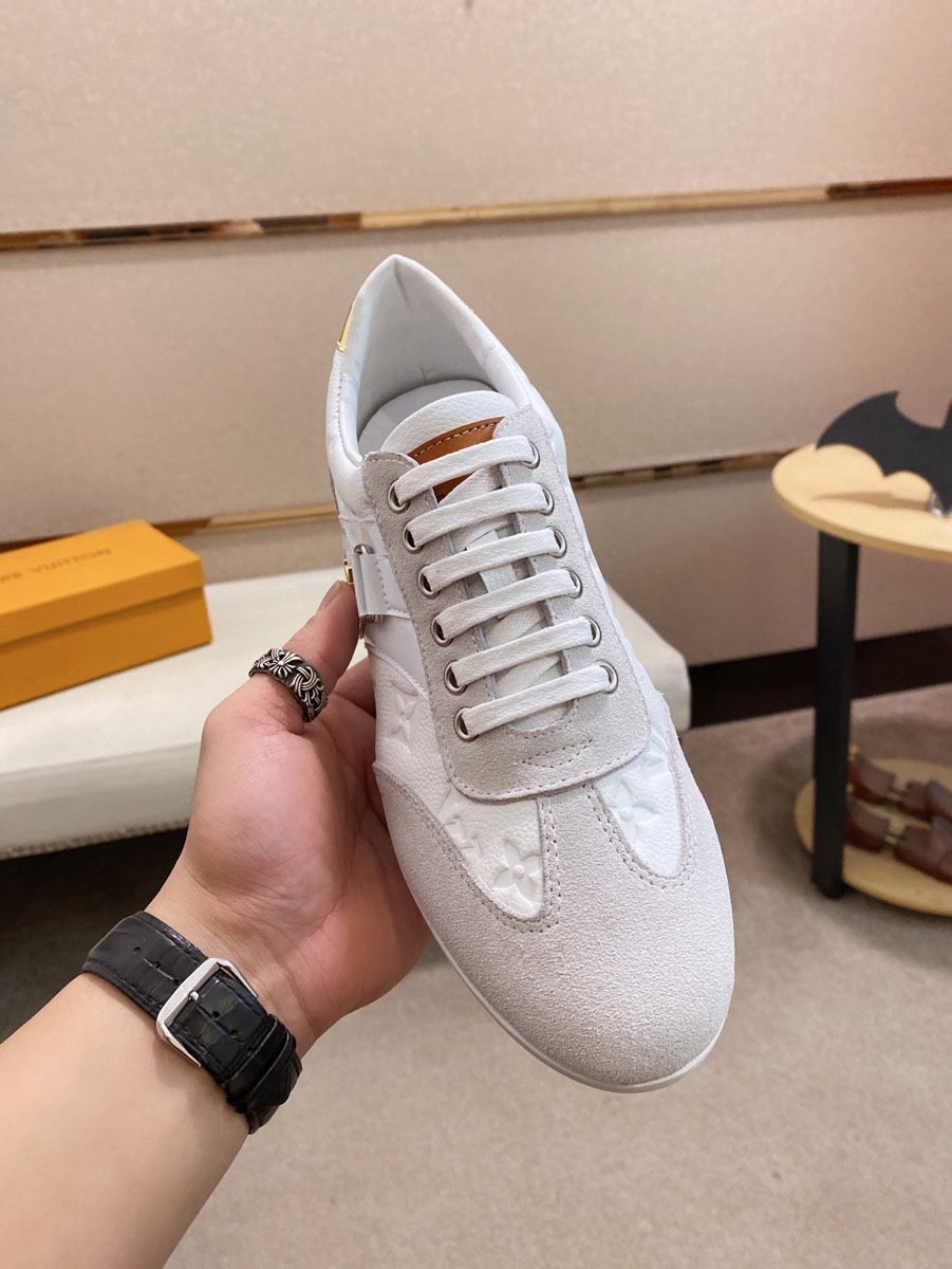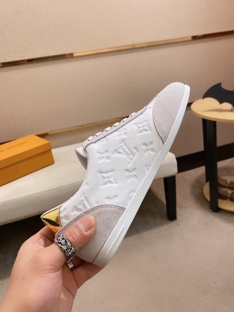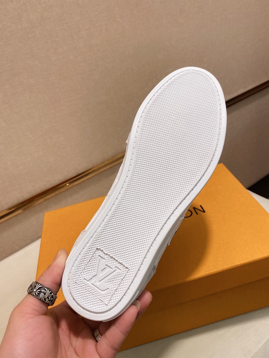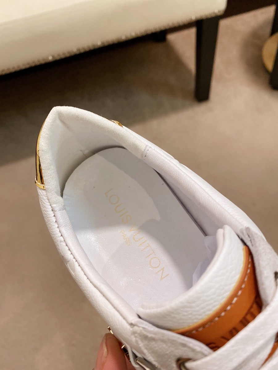 这款鞋子是AAAAA 1:1 质量 (非常棒). 使用了和原版一模一样的材料. 商标部分也保持了和路易威登/Louis Vuitton一样. 图片拍摄是实物鞋子拍摄, 您所收到的实物保证和我们图片一模一样.