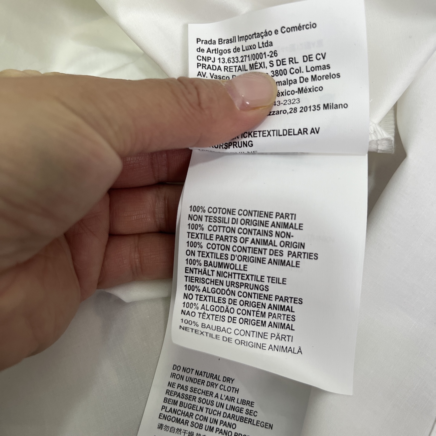 这款衣服是AAAAA 1:1 质量 (非常棒). 使用了和原版一模一样的材料. 商标部分也保持了和普拉达/Prada一样. 图片拍摄是实物衣服拍摄, 您所收到的实物保证和我们图片一模一样.