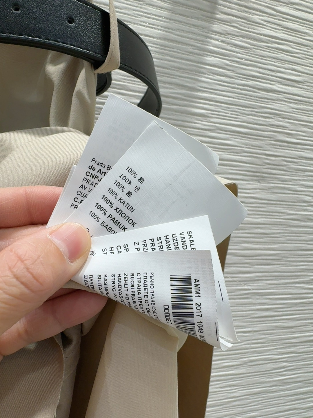 这款衣服是AAAAA 1:1 质量 (非常棒). 使用了和原版一模一样的材料. 商标部分也保持了和普拉达/Prada一样. 图片拍摄是实物衣服拍摄, 您所收到的实物保证和我们图片一模一样.
