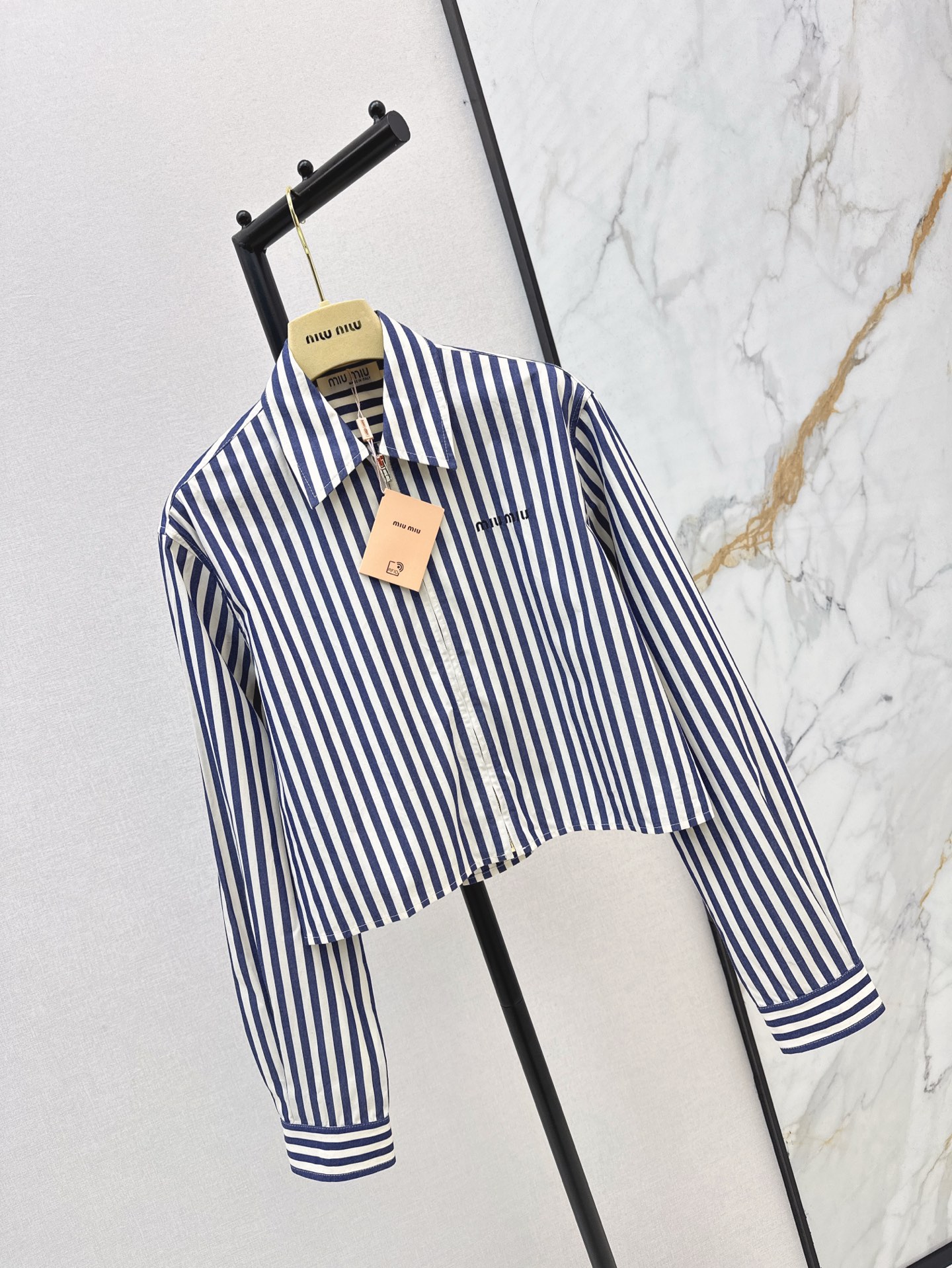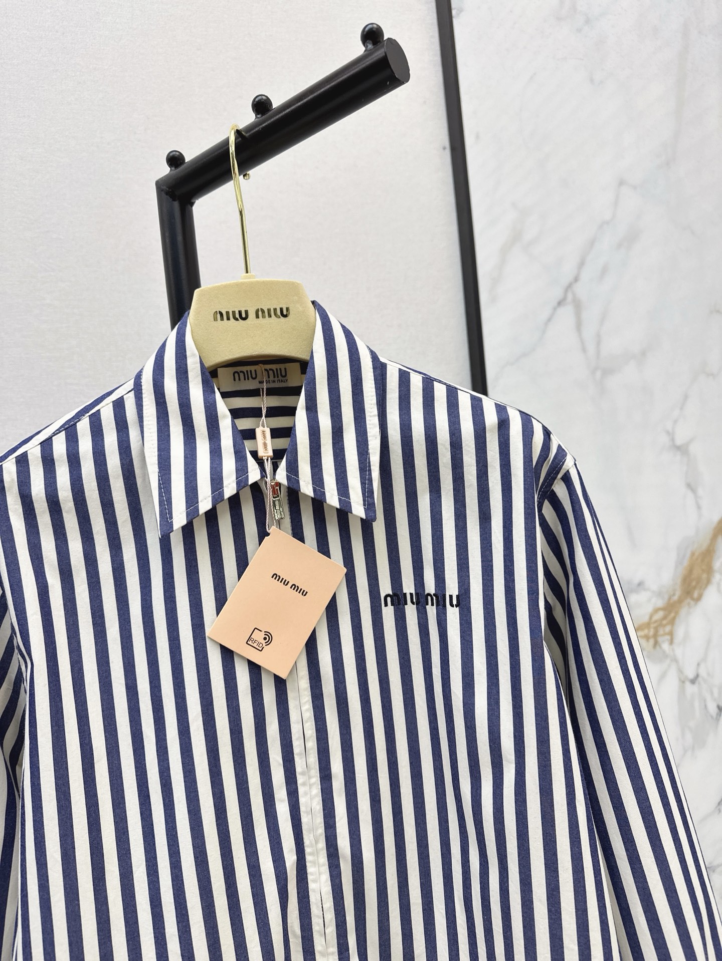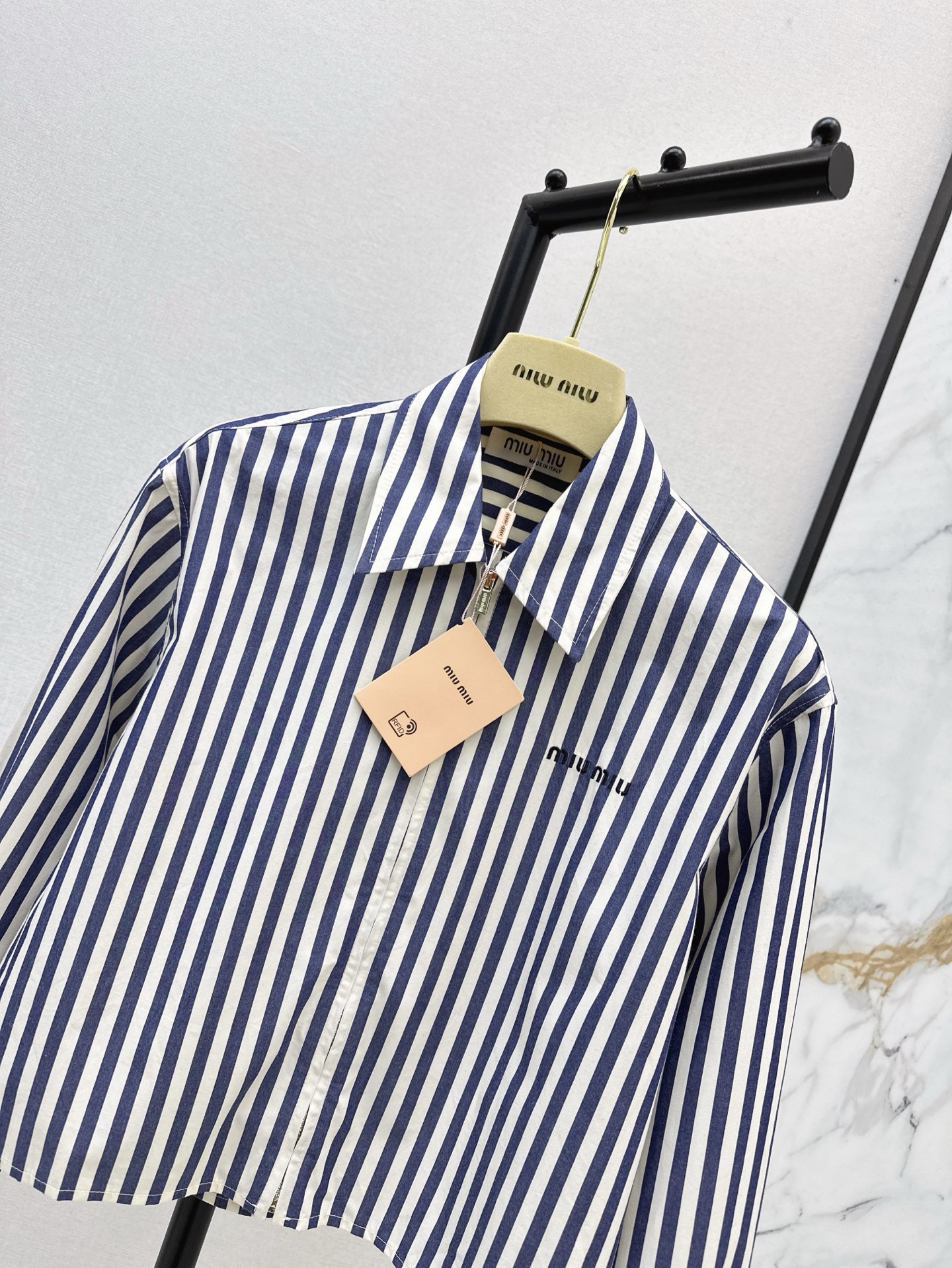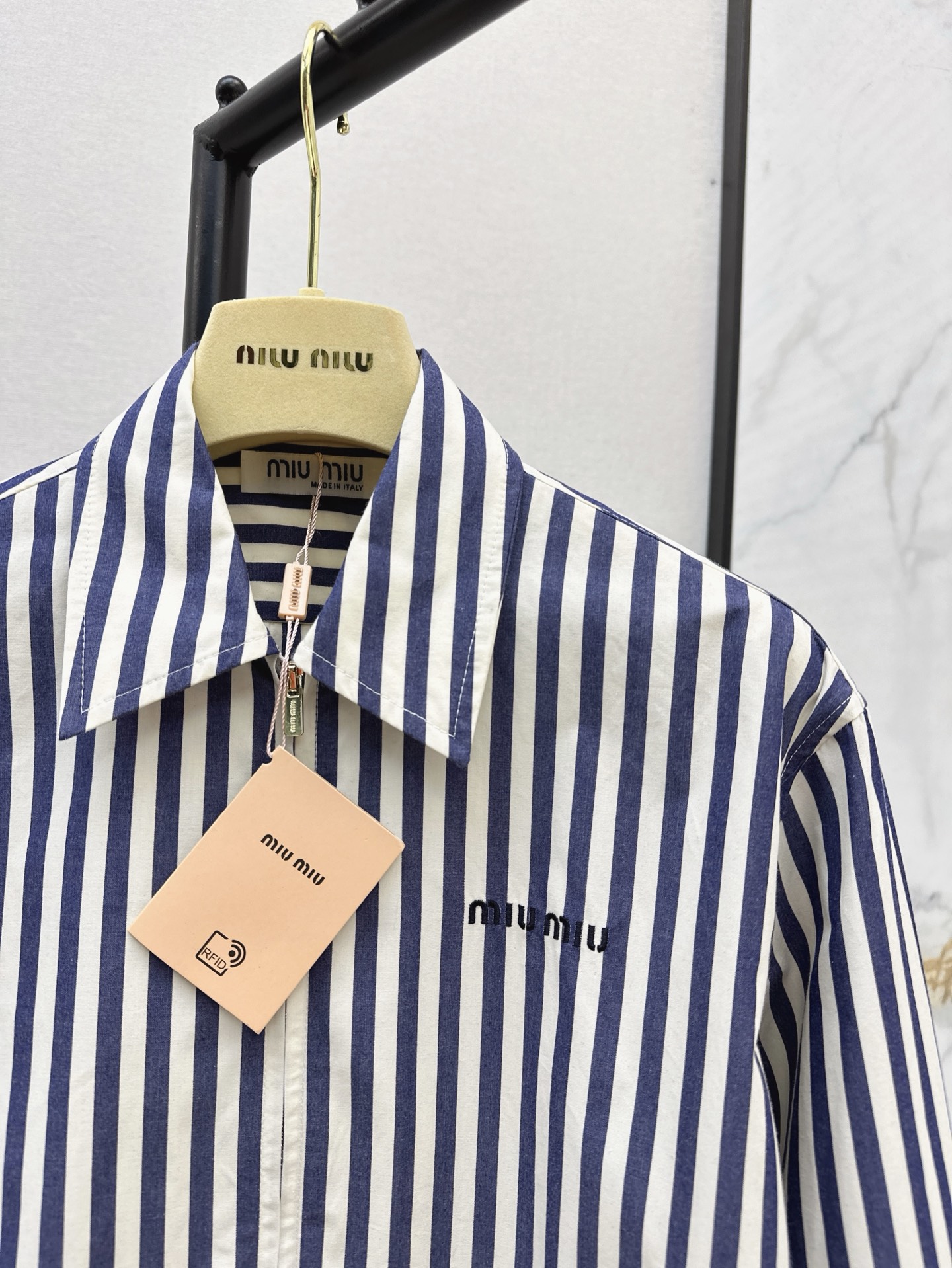 这款衣服是AAAAA 1:1 质量 (非常棒). 使用了和原版一模一样的材料. 商标部分也保持了和缪缪/Miu Miu一样. 图片拍摄是实物衣服拍摄, 您所收到的实物保证和我们图片一模一样.
