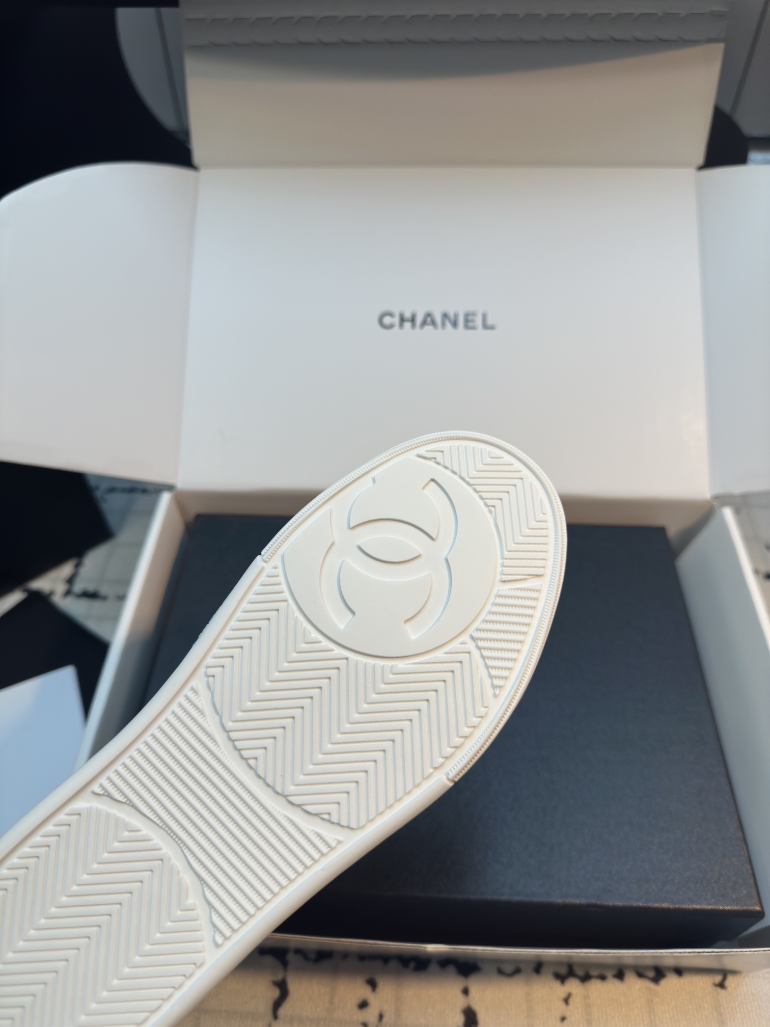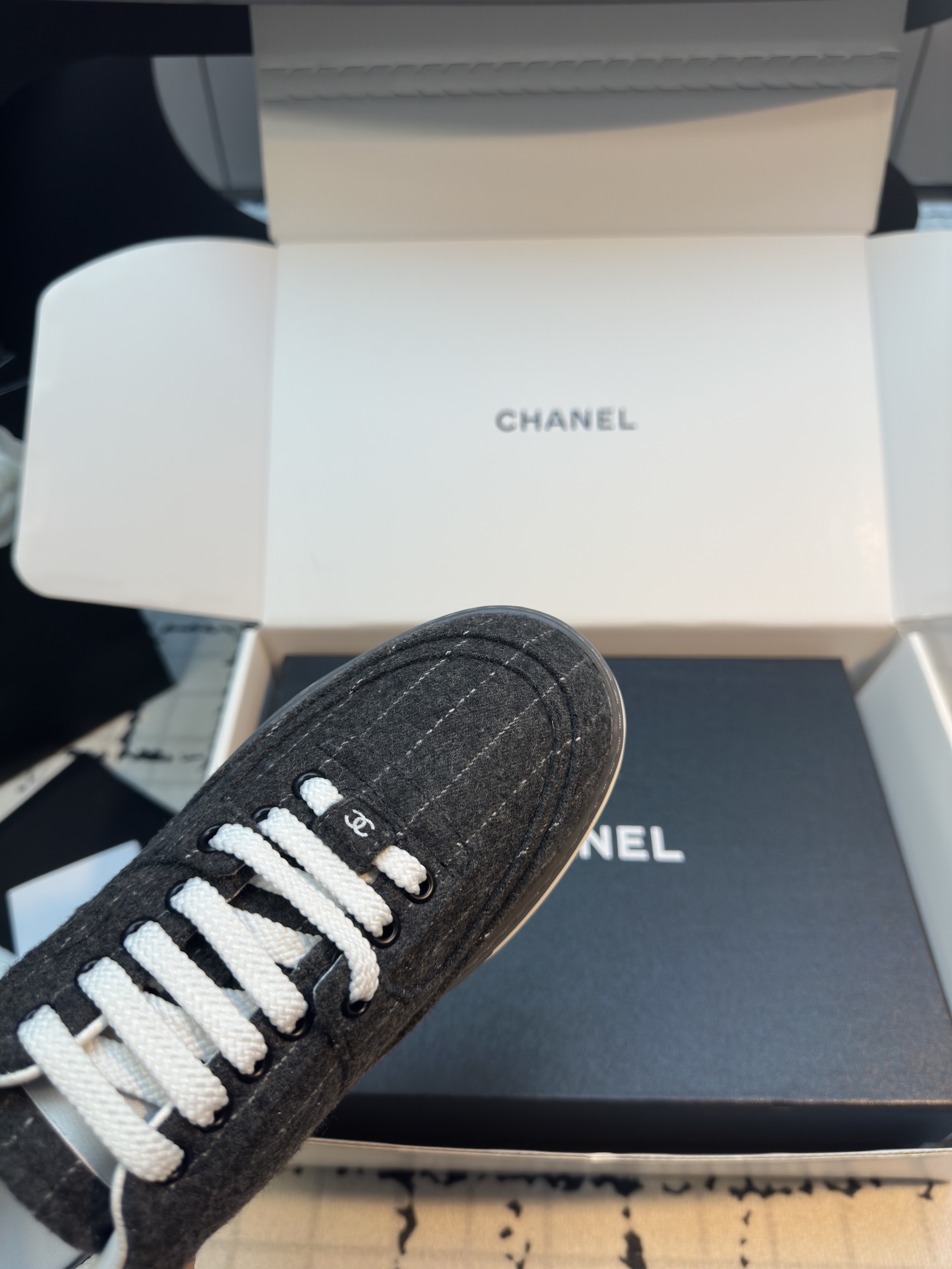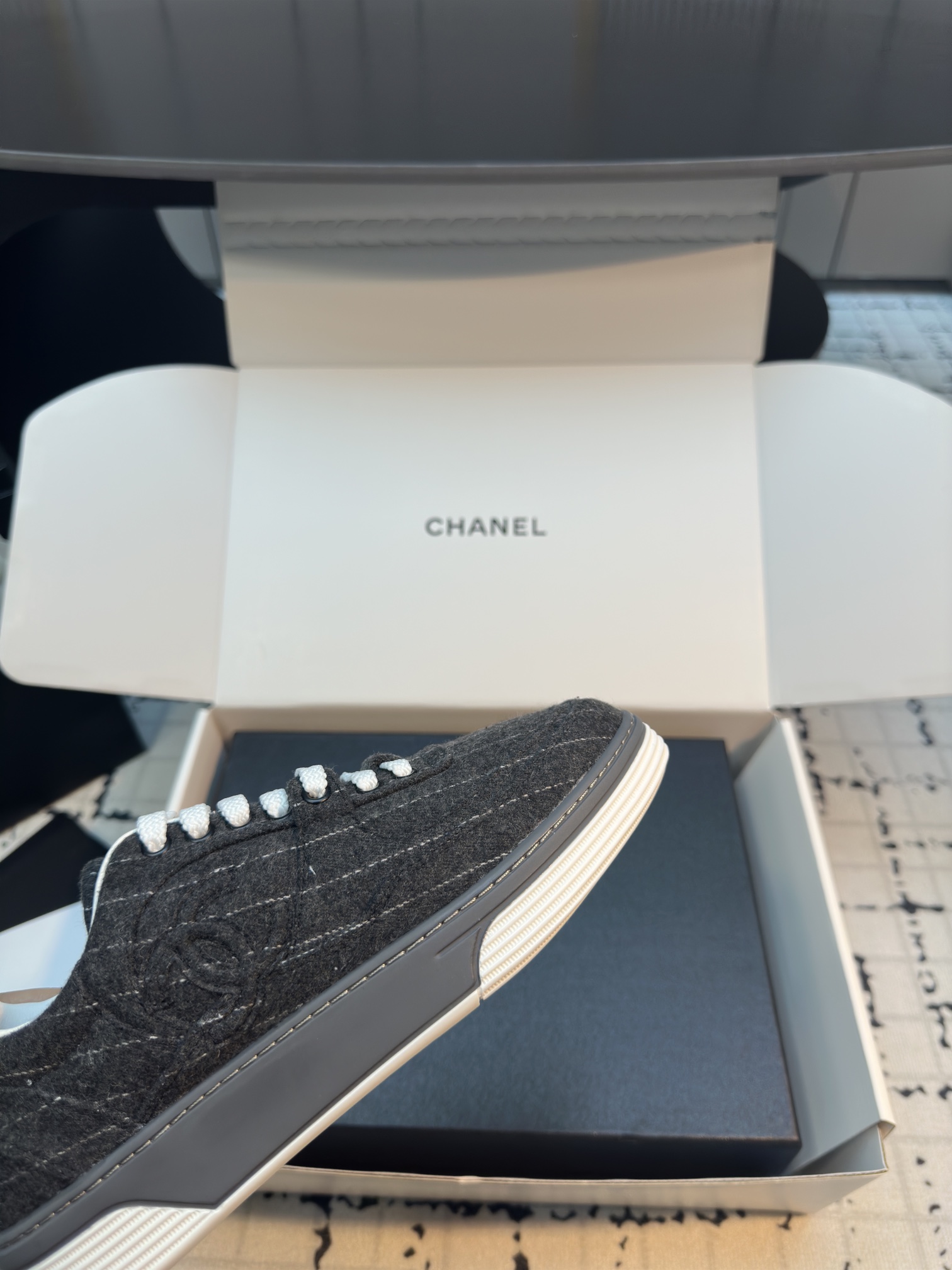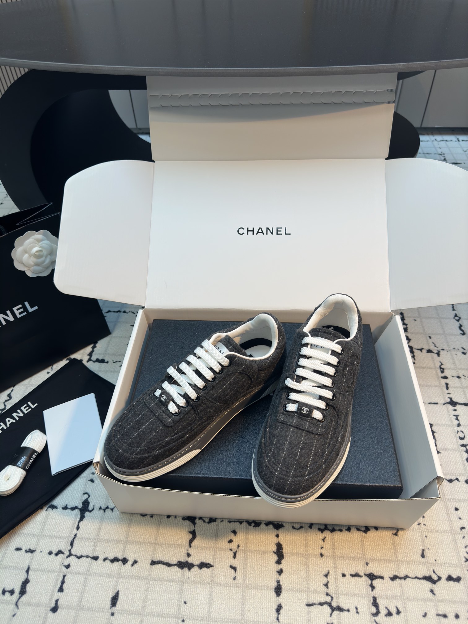 这款鞋子是AAAAA 1:1 质量 (非常棒). 使用了和原版一模一样的材料. 商标部分也保持了和香奈儿/Chanel一样. 图片拍摄是实物鞋子拍摄, 您所收到的实物保证和我们图片一模一样.
