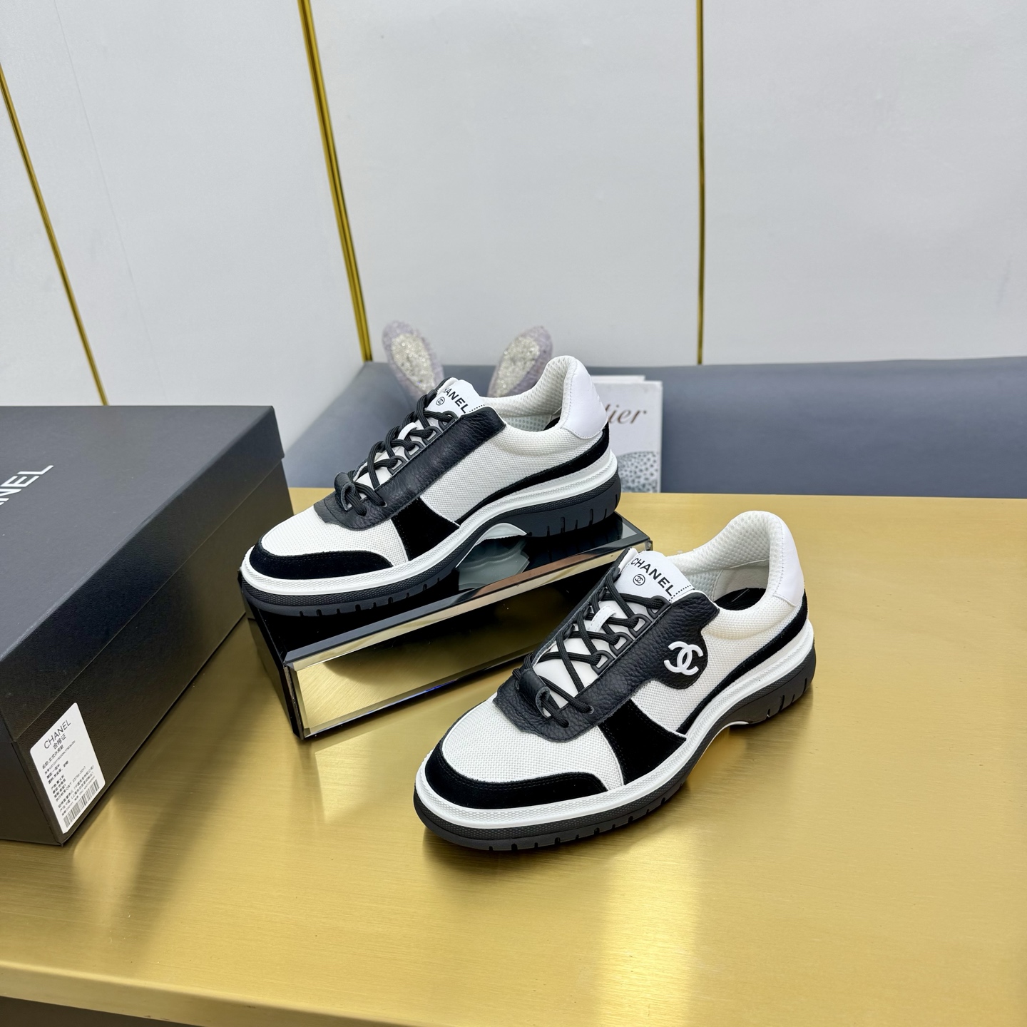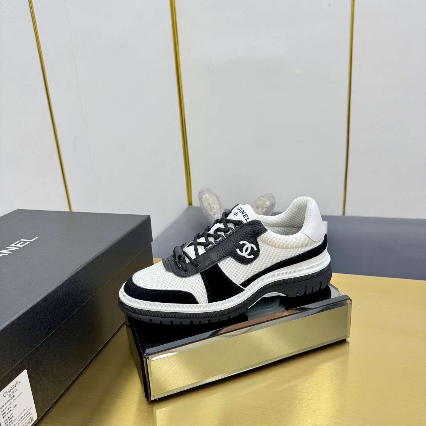 这款鞋子是AAAAA 1:1 质量 (非常棒). 使用了和原版一模一样的材料. 商标部分也保持了和香奈儿/Chanel一样. 图片拍摄是实物鞋子拍摄, 您所收到的实物保证和我们图片一模一样.