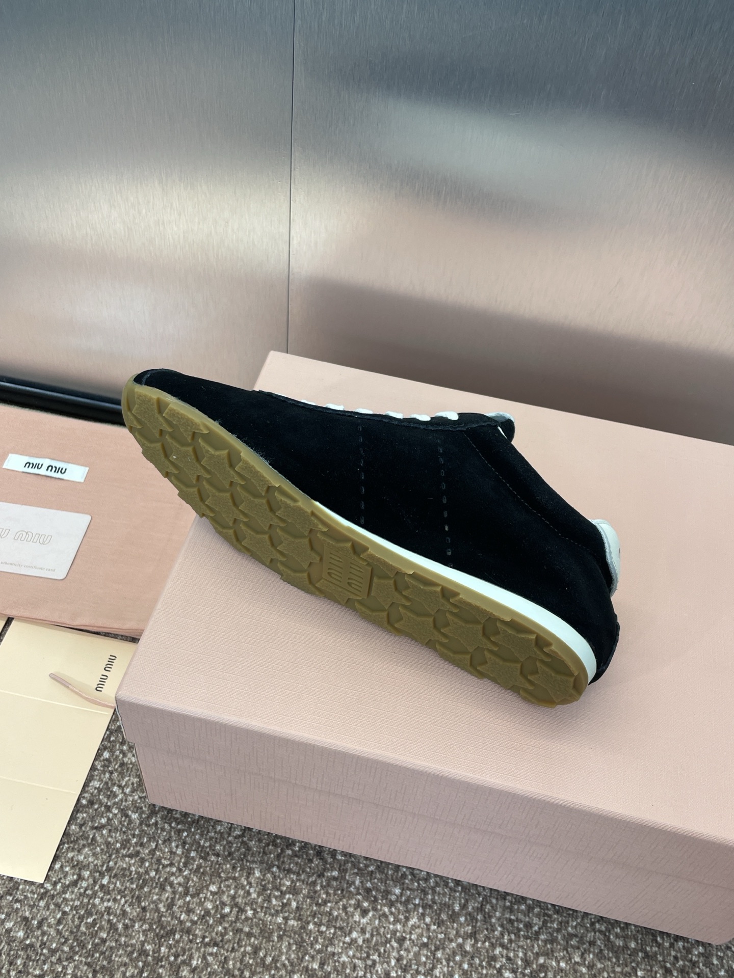 这款鞋子是AAAAA 1:1 质量 (非常棒). 使用了和原版一模一样的材料. 商标部分也保持了和缪缪/Miu Miu一样. 图片拍摄是实物鞋子拍摄, 您所收到的实物保证和我们图片一模一样.