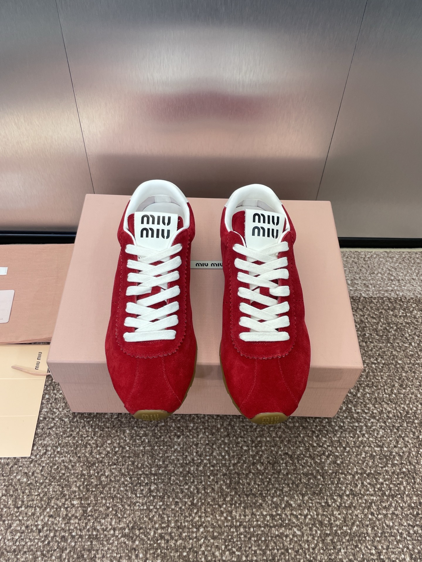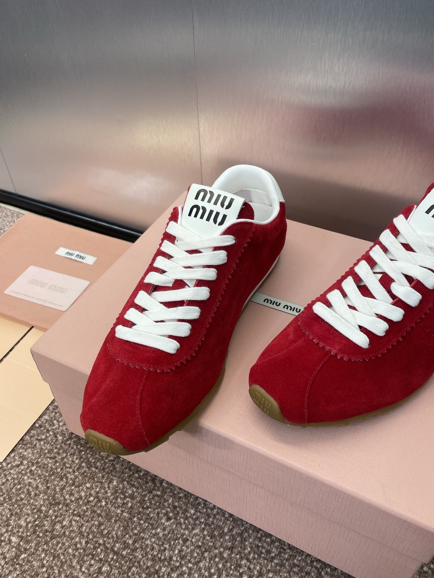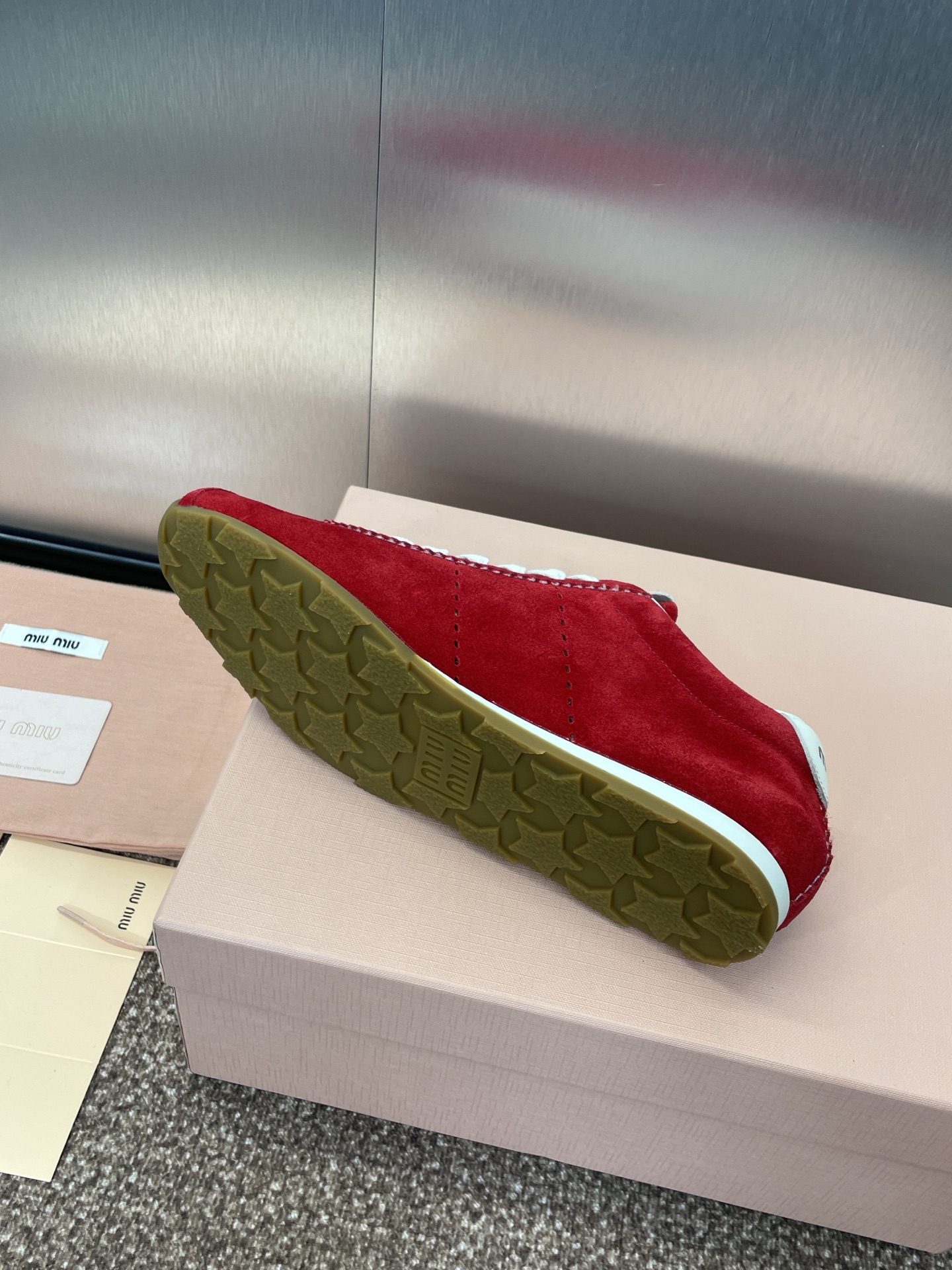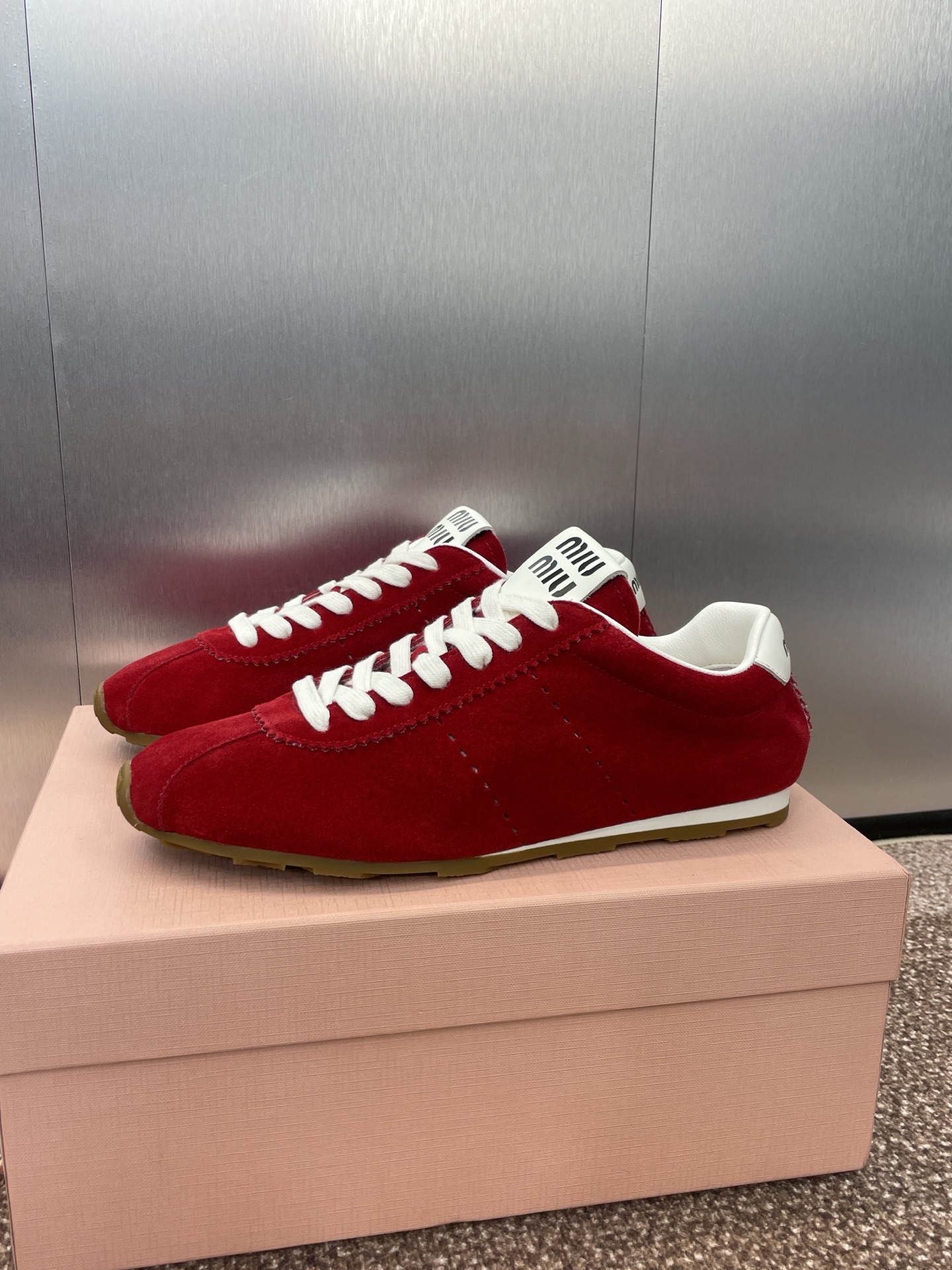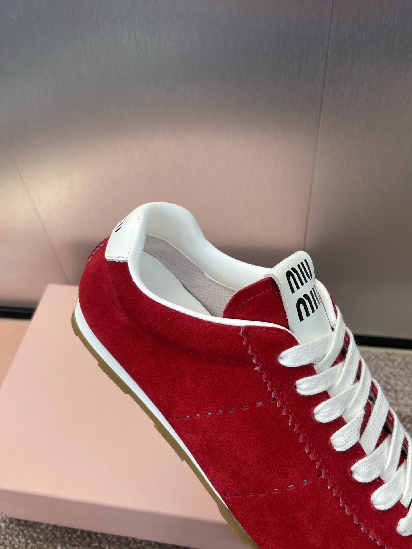 这款鞋子是AAAAA 1:1 质量 (非常棒). 使用了和原版一模一样的材料. 商标部分也保持了和缪缪/Miu Miu一样. 图片拍摄是实物鞋子拍摄, 您所收到的实物保证和我们图片一模一样.