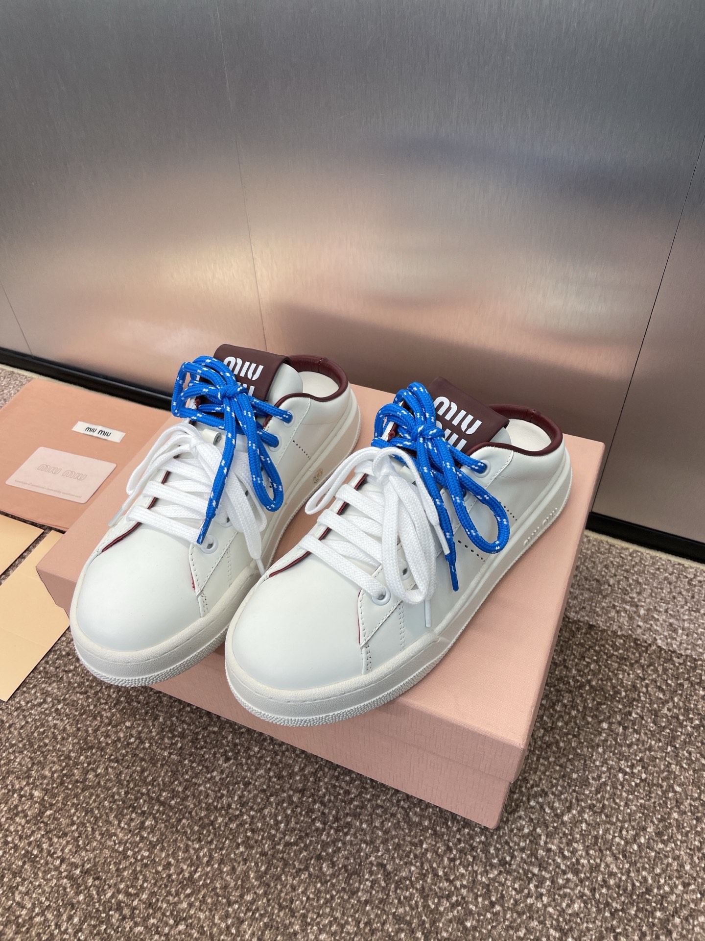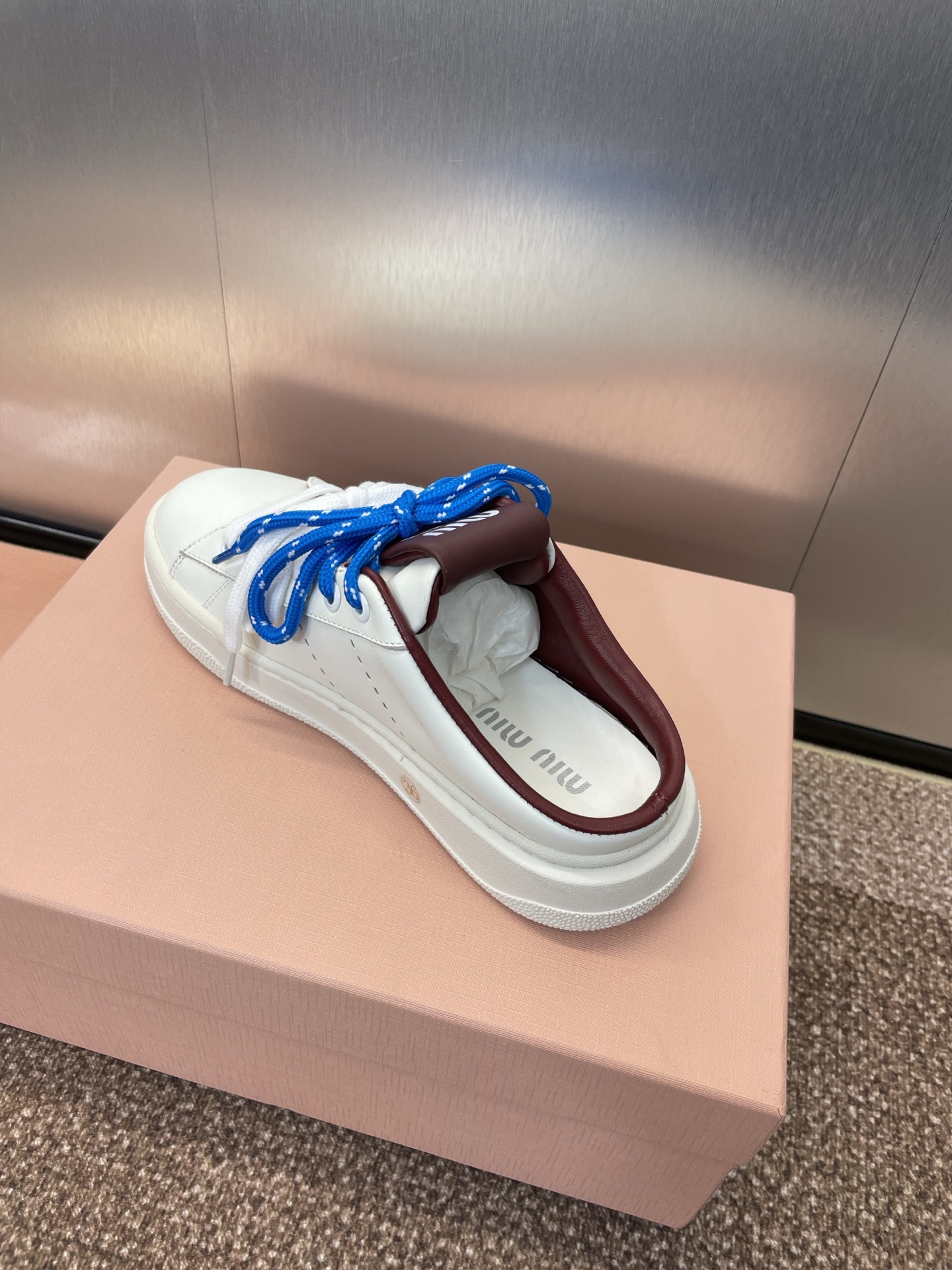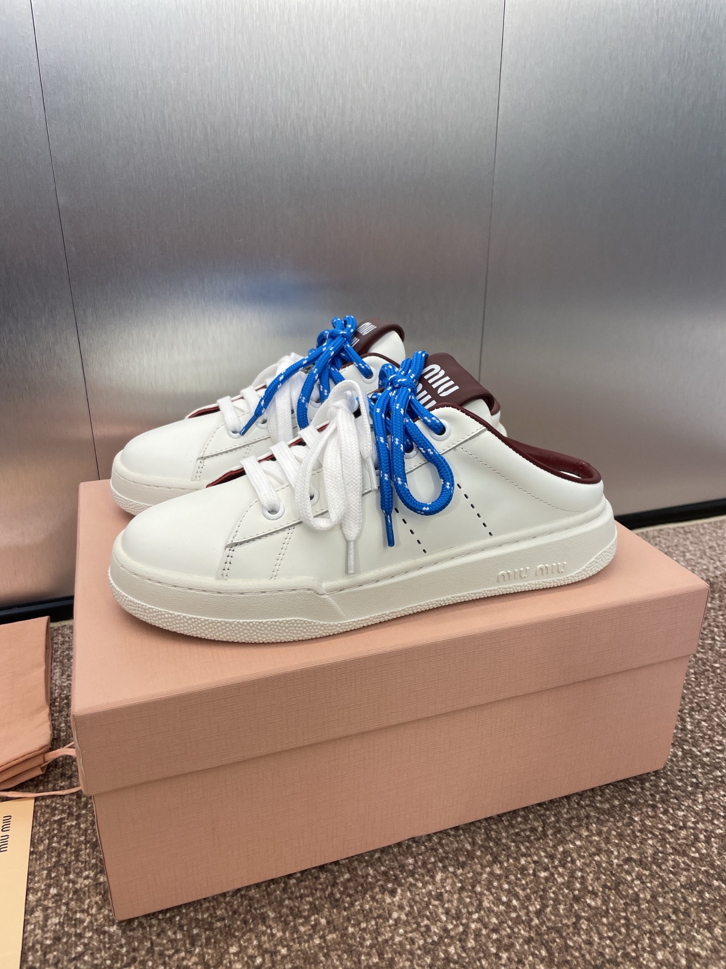 这款鞋子是AAAAA 1:1 质量 (非常棒). 使用了和原版一模一样的材料. 商标部分也保持了和缪缪/Miu Miu一样. 图片拍摄是实物鞋子拍摄, 您所收到的实物保证和我们图片一模一样.