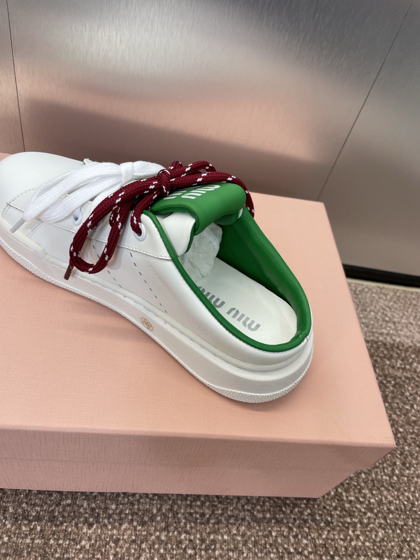 这款鞋子是AAAAA 1:1 质量 (非常棒). 使用了和原版一模一样的材料. 商标部分也保持了和缪缪/Miu Miu一样. 图片拍摄是实物鞋子拍摄, 您所收到的实物保证和我们图片一模一样.