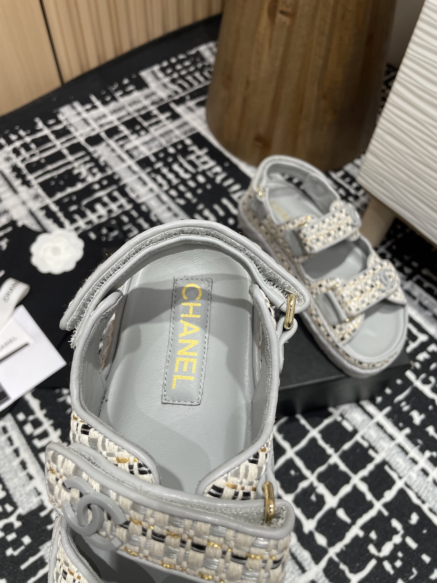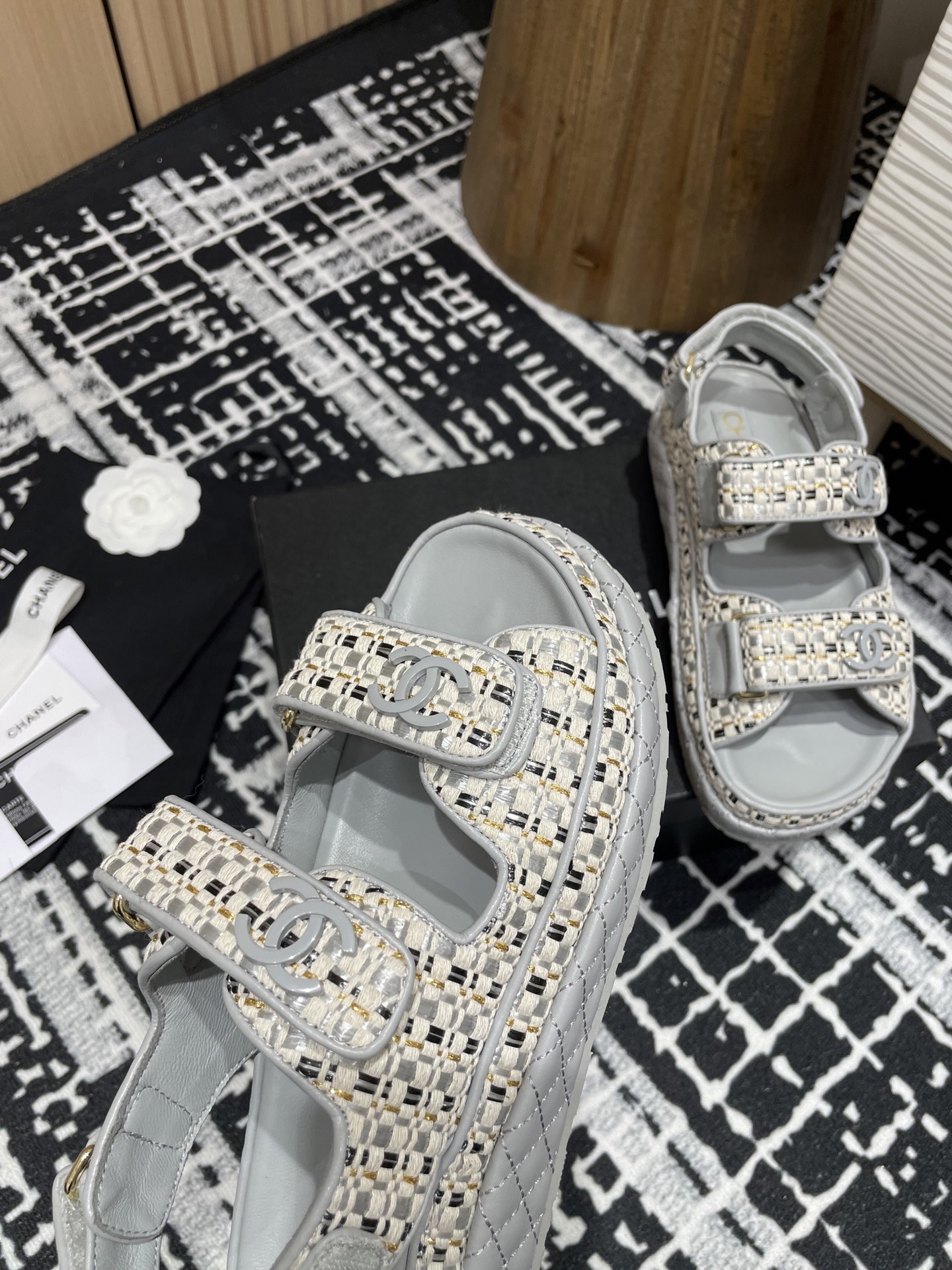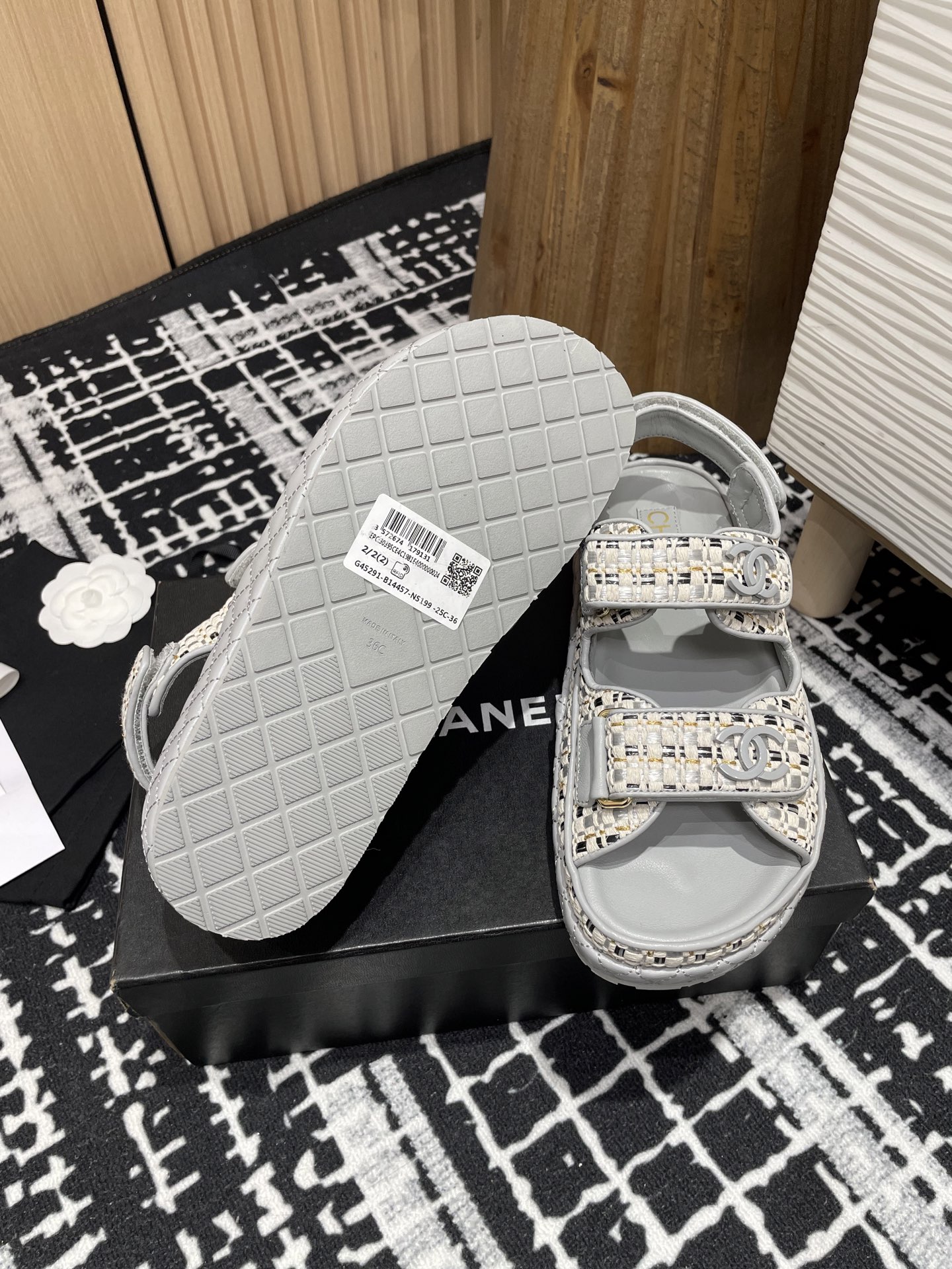 这款鞋子是AAAAA 1:1 质量 (非常棒). 使用了和原版一模一样的材料. 商标部分也保持了和香奈儿/Chanel一样. 图片拍摄是实物鞋子拍摄, 您所收到的实物保证和我们图片一模一样.