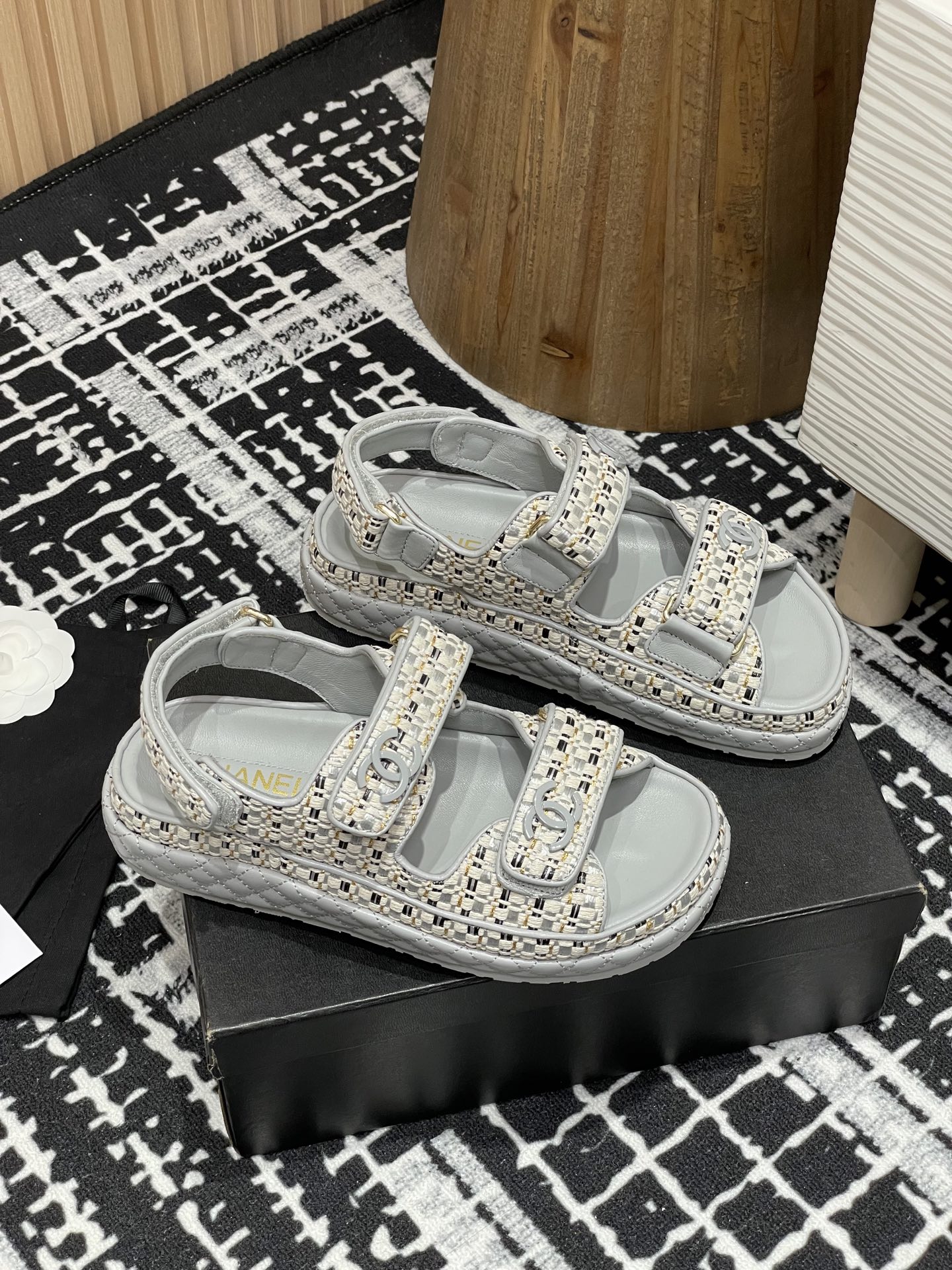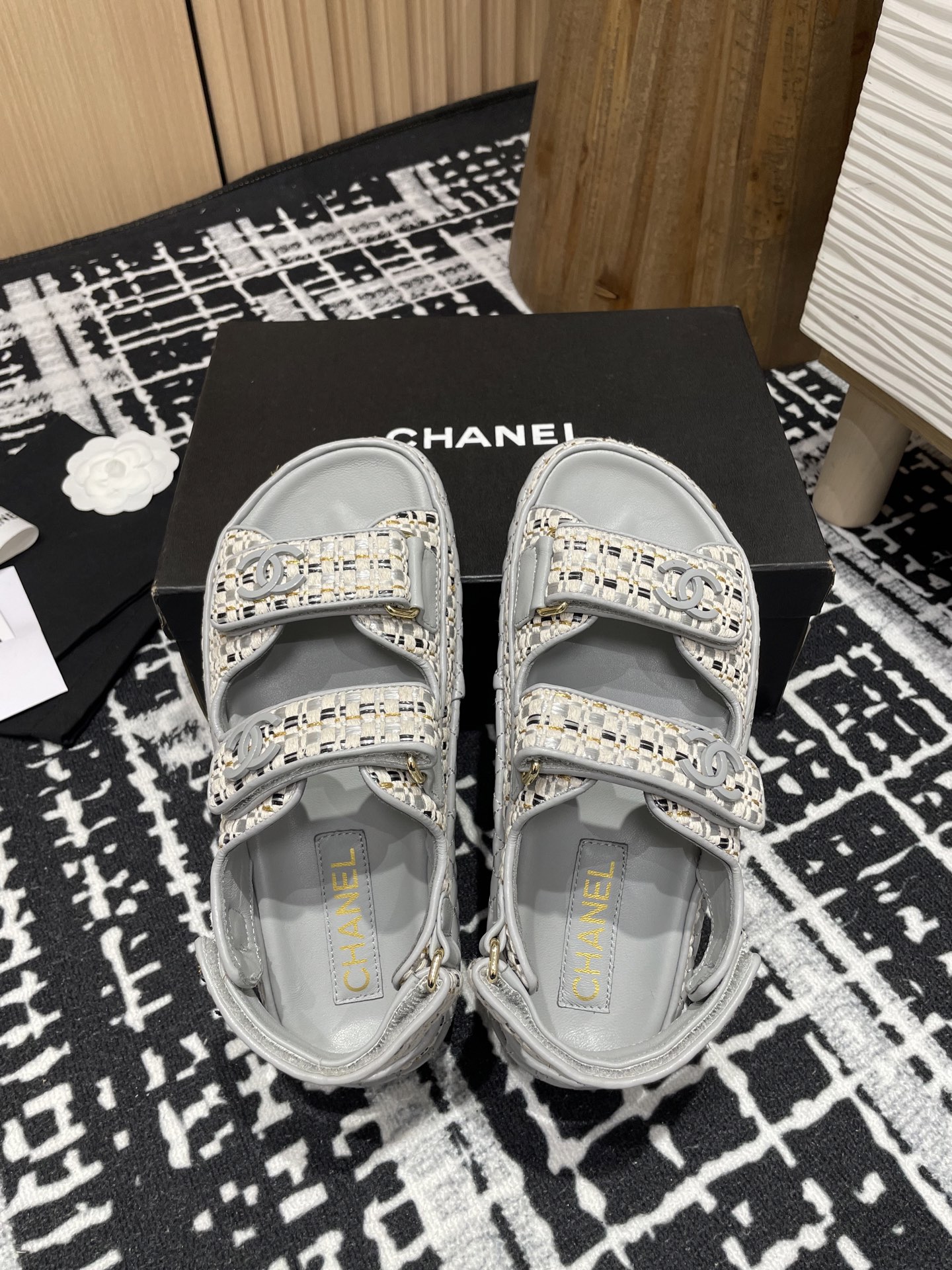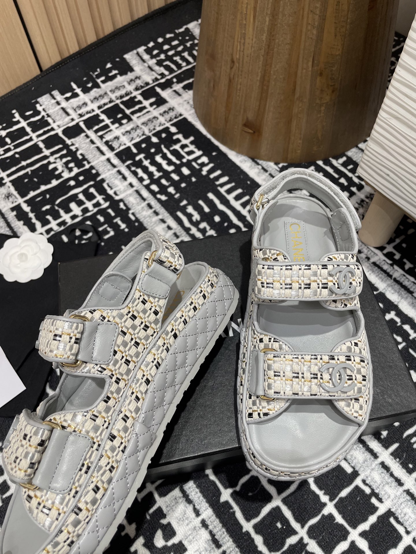 这款鞋子是AAAAA 1:1 质量 (非常棒). 使用了和原版一模一样的材料. 商标部分也保持了和香奈儿/Chanel一样. 图片拍摄是实物鞋子拍摄, 您所收到的实物保证和我们图片一模一样.