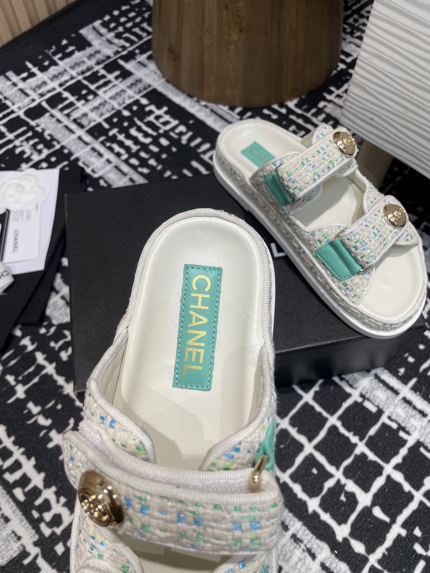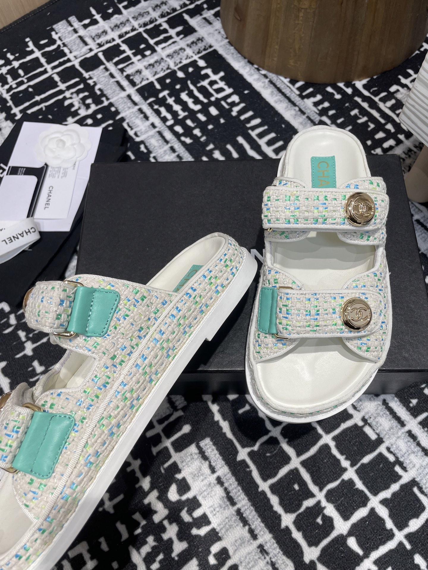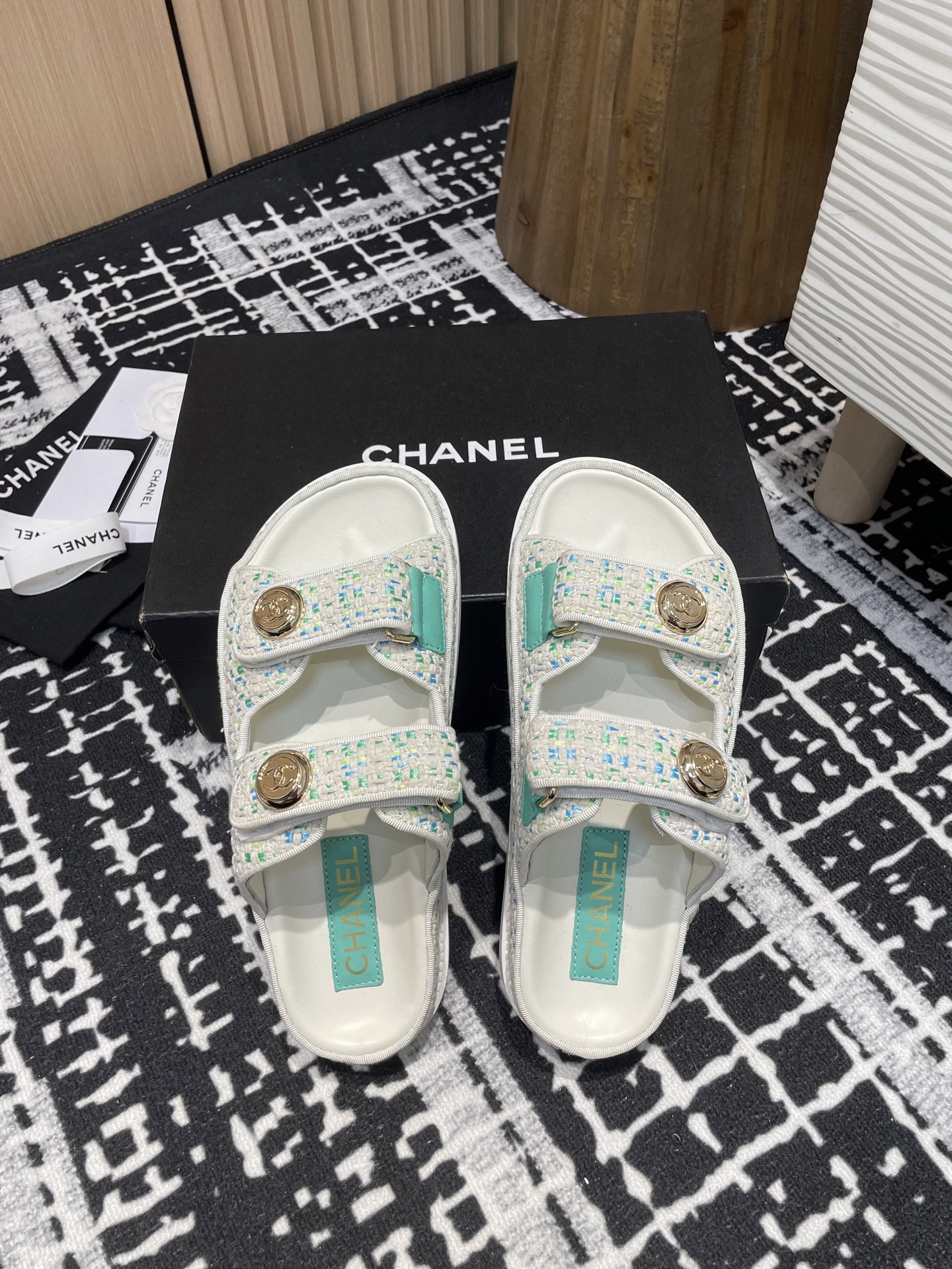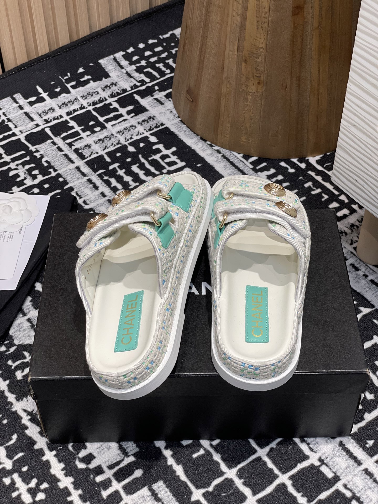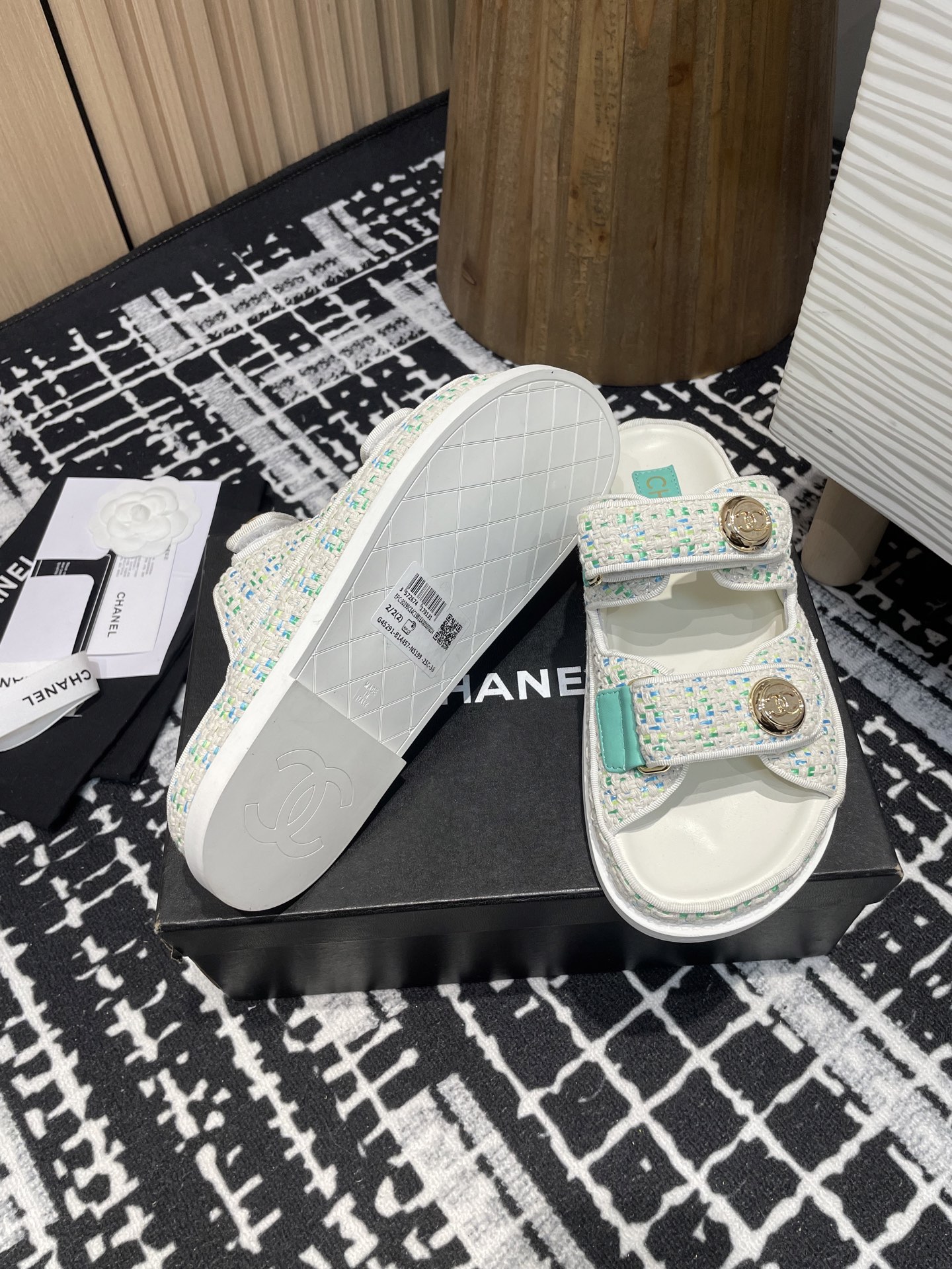 这款鞋子是AAAAA 1:1 质量 (非常棒). 使用了和原版一模一样的材料. 商标部分也保持了和香奈儿/Chanel一样. 图片拍摄是实物鞋子拍摄, 您所收到的实物保证和我们图片一模一样.