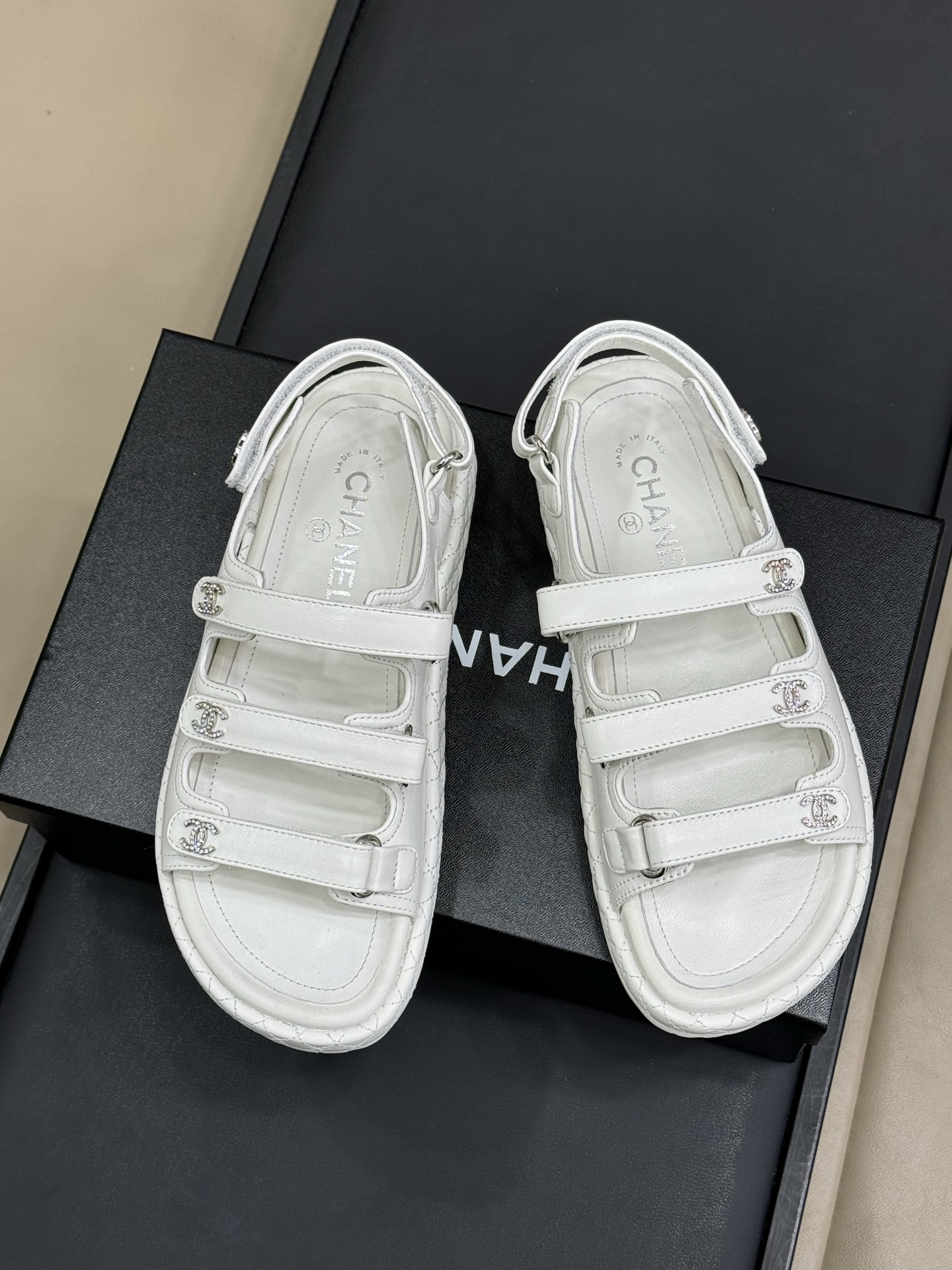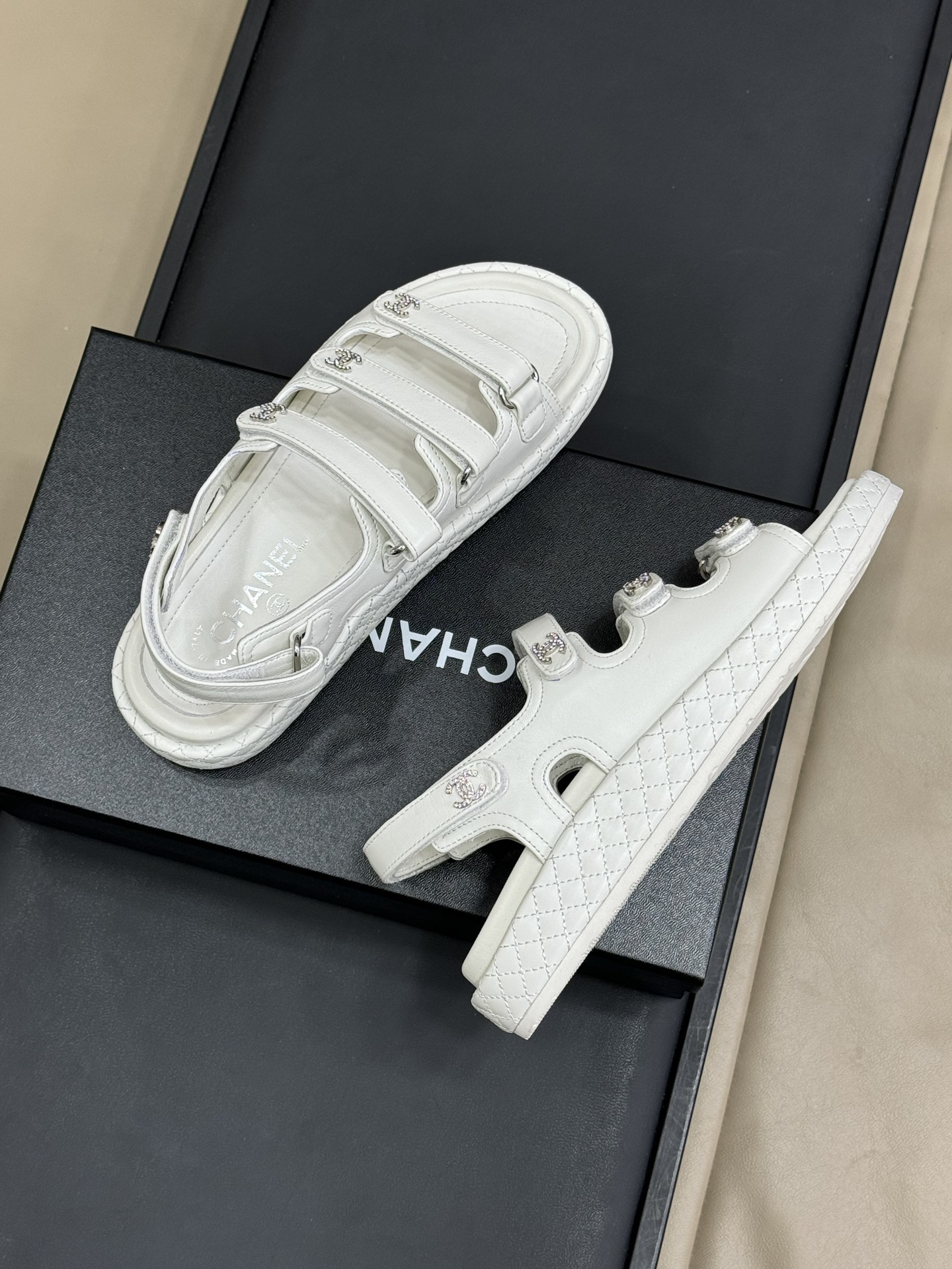 这款鞋子是AAAAA 1:1 质量 (非常棒). 使用了和原版一模一样的材料. 商标部分也保持了和香奈儿/Chanel一样. 图片拍摄是实物鞋子拍摄, 您所收到的实物保证和我们图片一模一样.