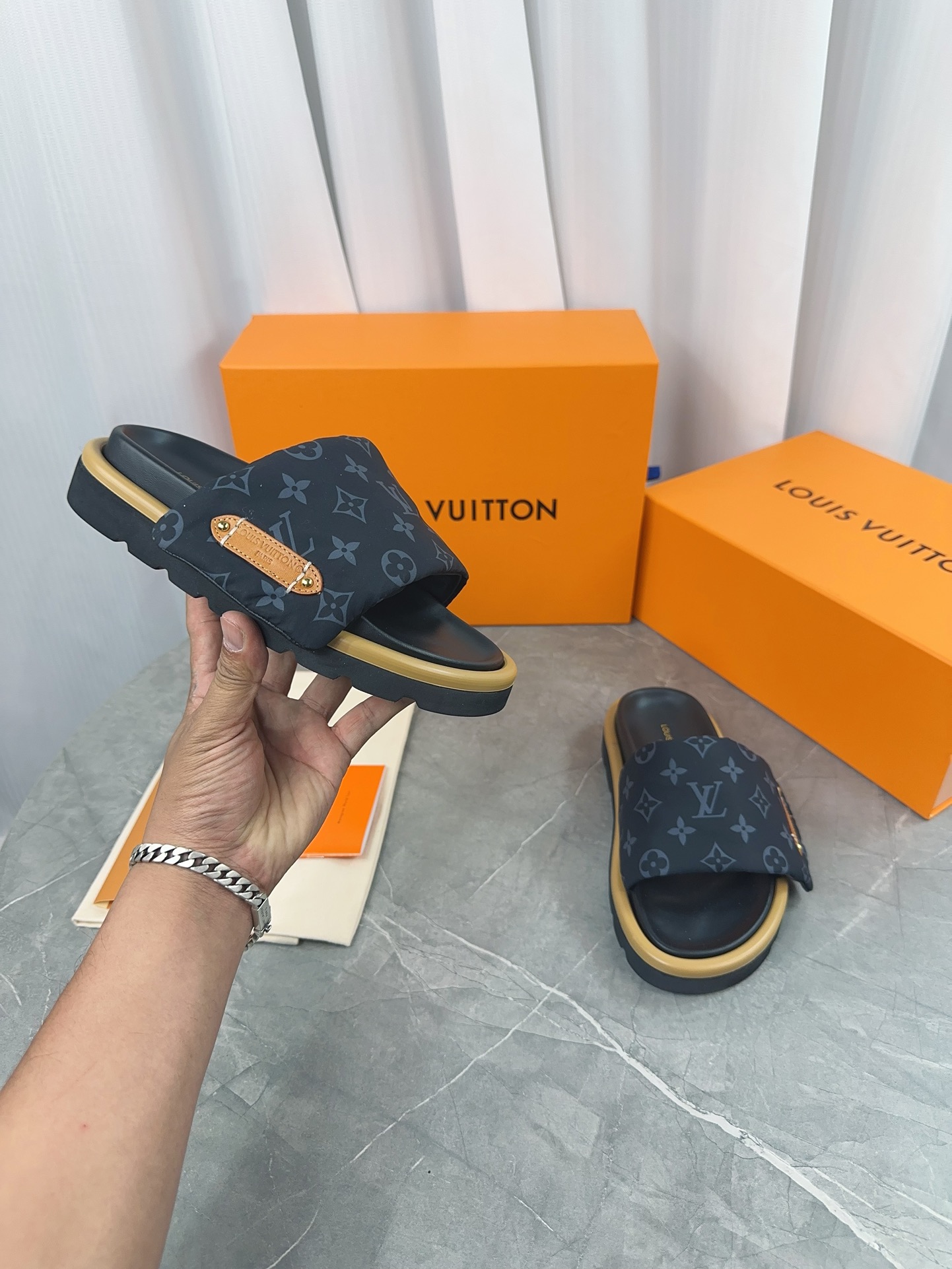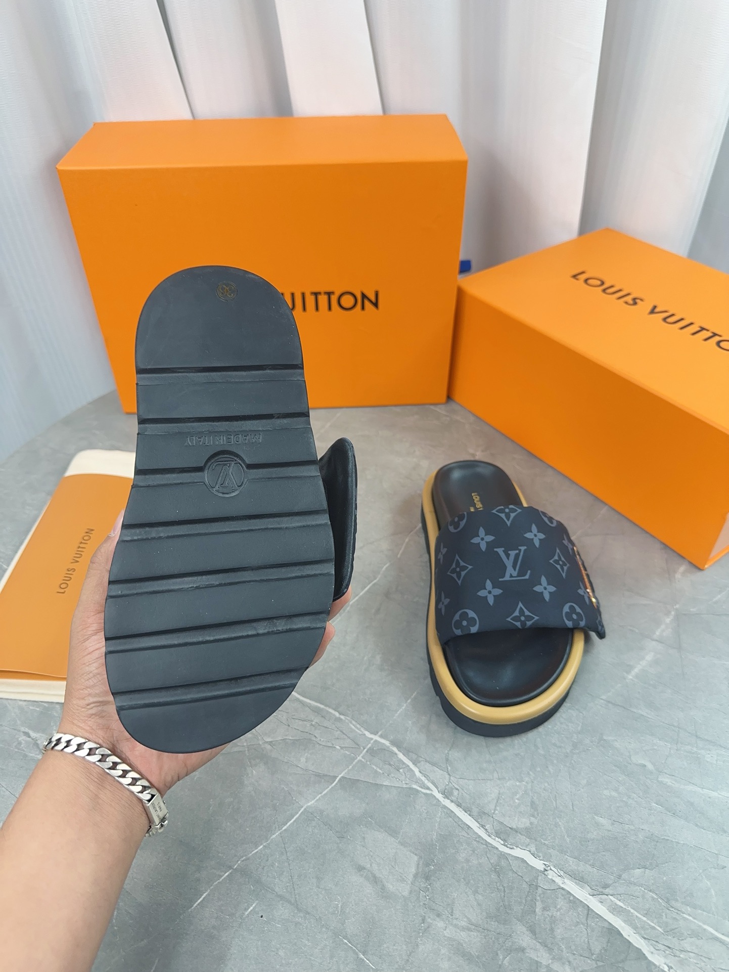 这款鞋子是AAAAA 1:1 质量 (非常棒). 使用了和原版一模一样的材料. 商标部分也保持了和路易威登/Louis Vuitton一样. 图片拍摄是实物鞋子拍摄, 您所收到的实物保证和我们图片一模一样.